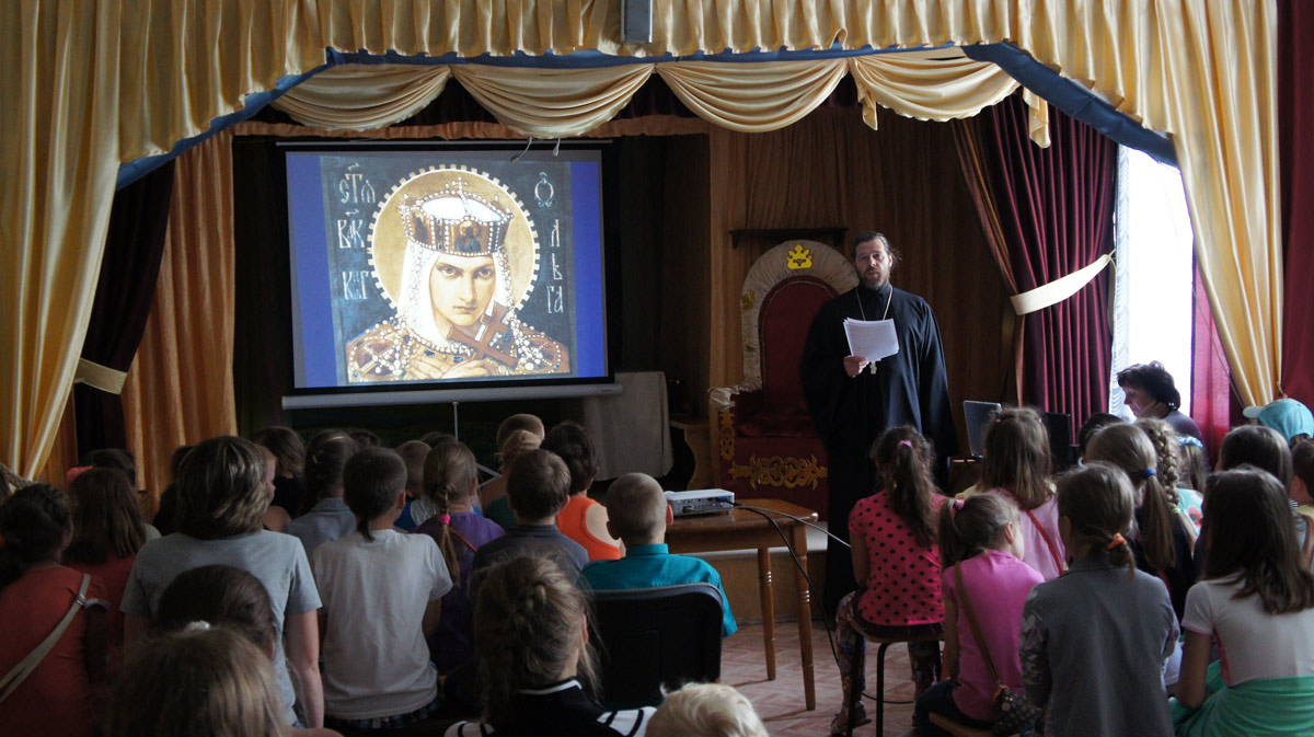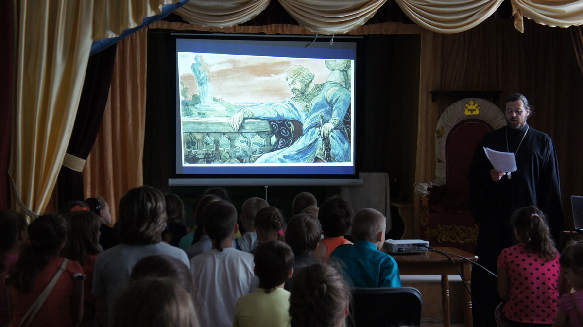 Детям была показан костюмированный спектакль под названием: «Как князь Владимир веру выбирал», организованный театральной студией «Образ» под управлением Букановой Лидии Ильиничны.