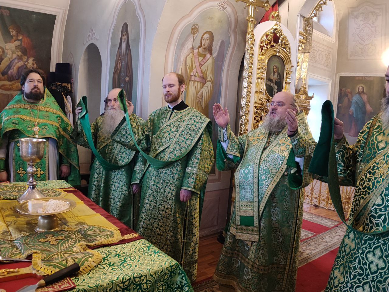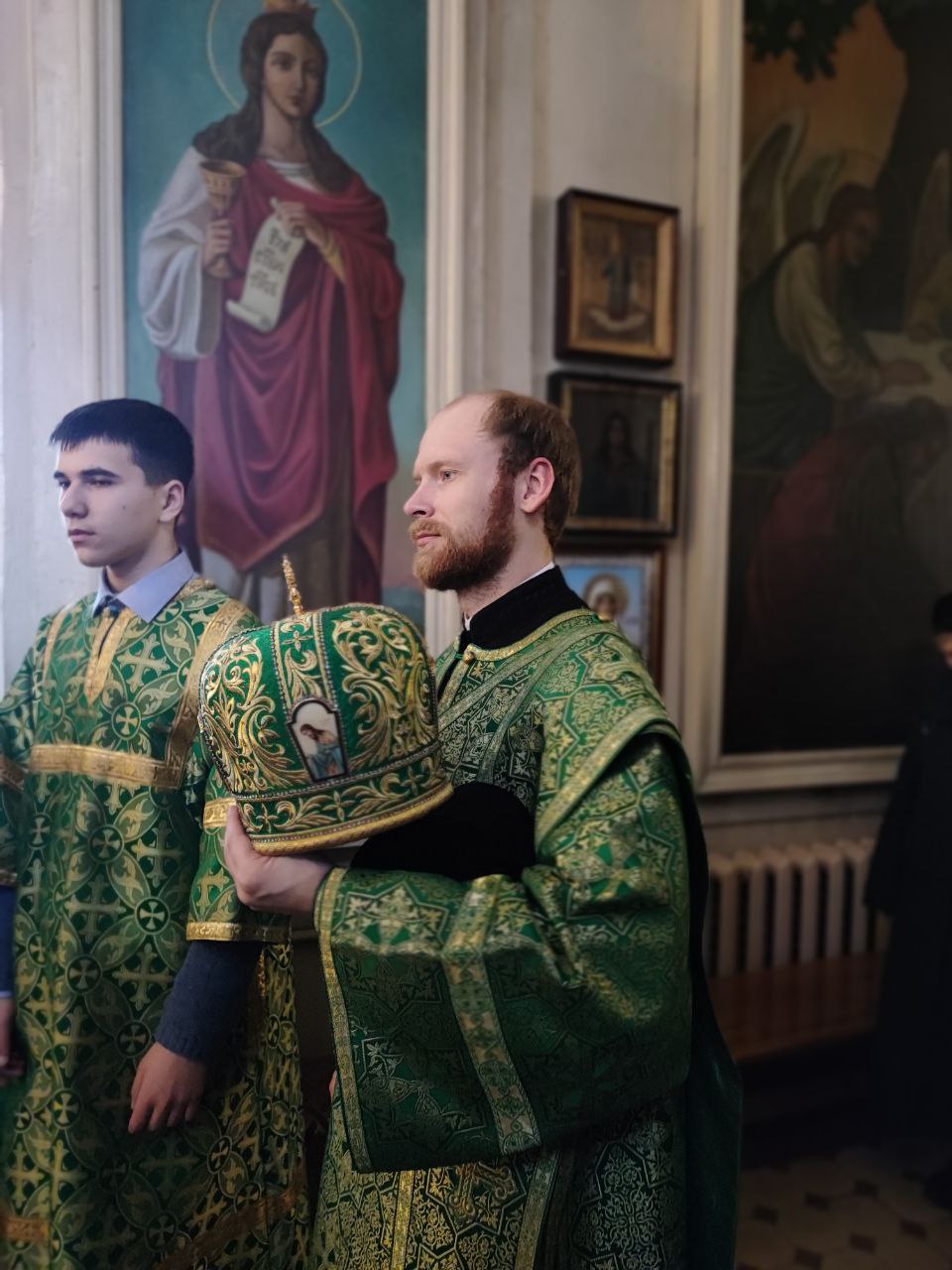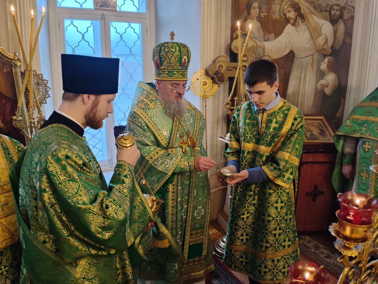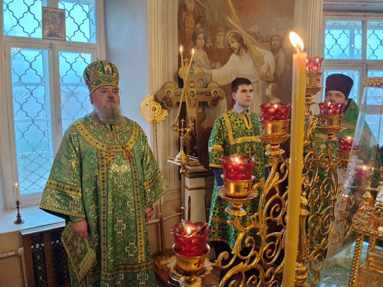 Преосвященному владыке сослужили: протоиерей Владимир Бахаев – секретарь епархии, благочинный Козельского округа с клириками благочиния.