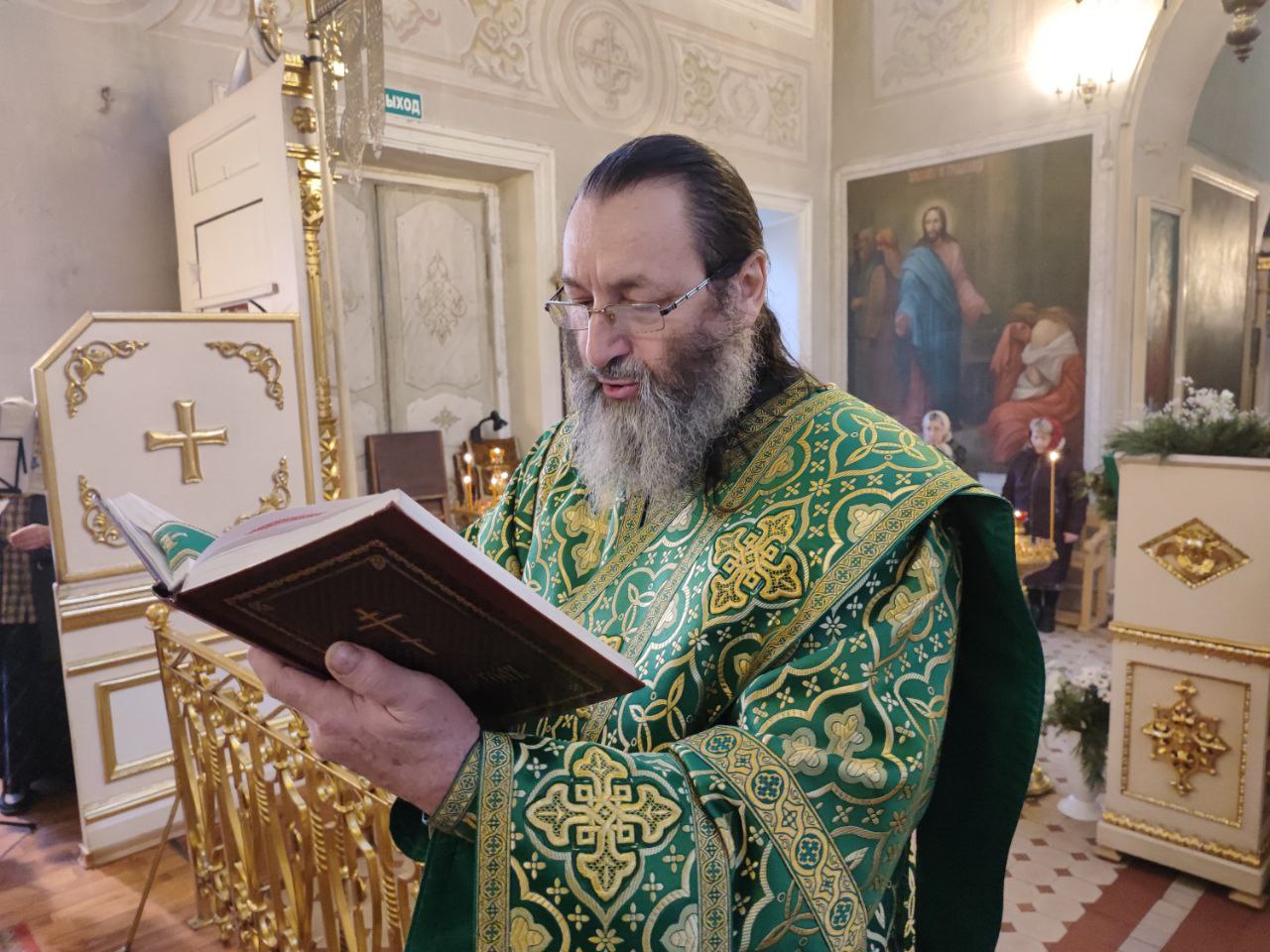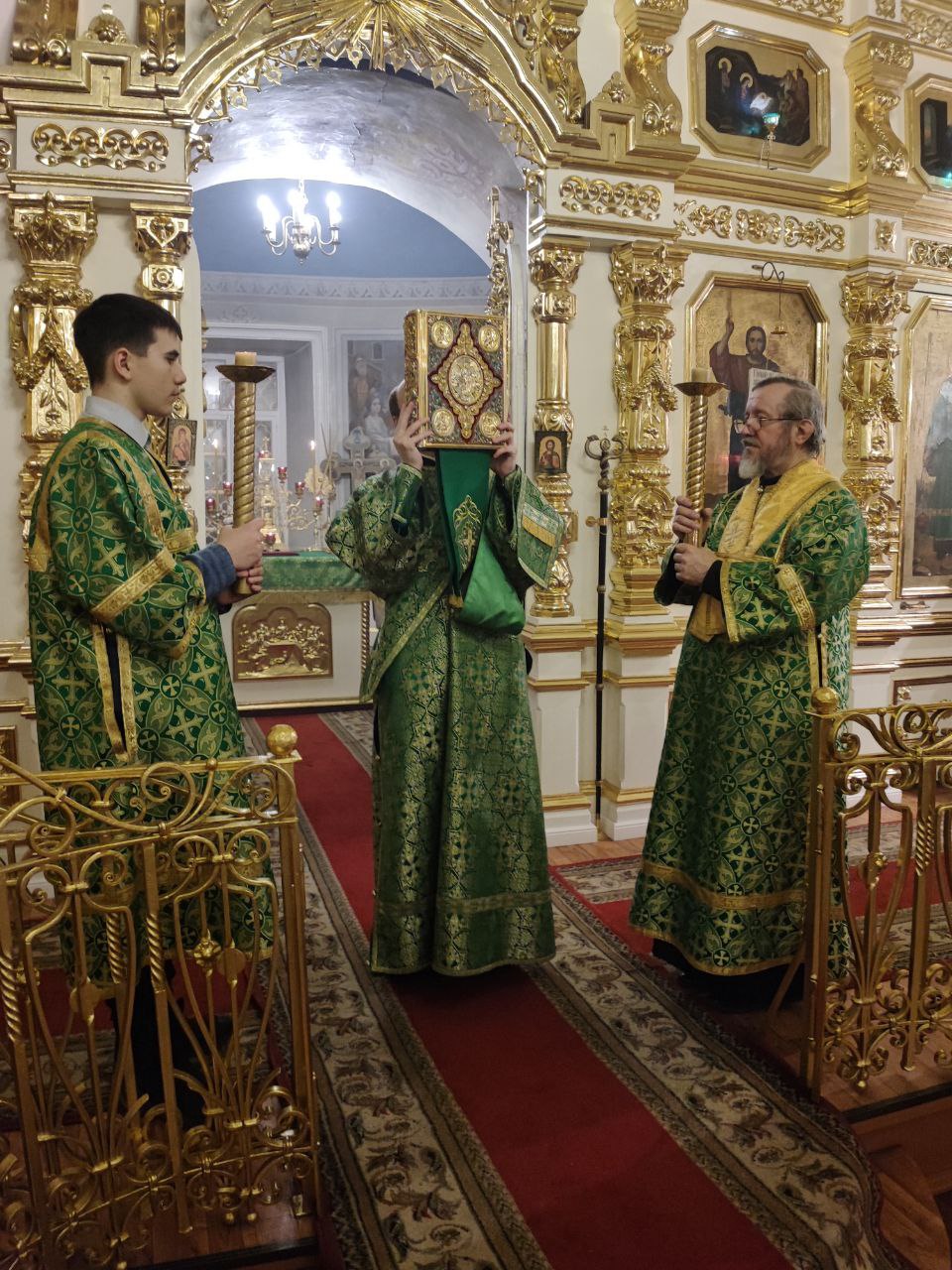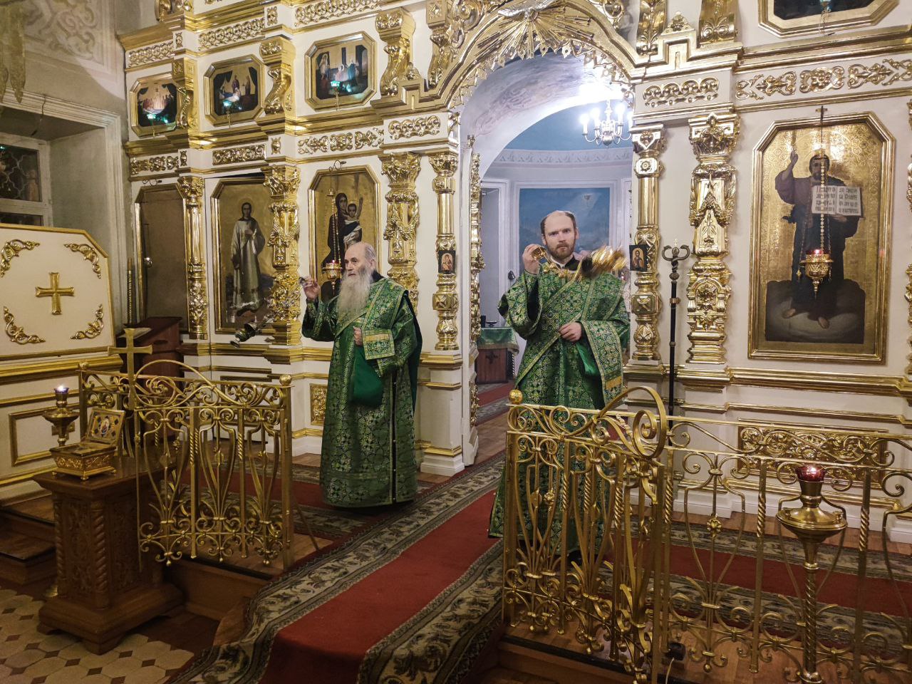 Преосвященному владыке сослужили: протоиерей Владимир Бахаев – секретарь епархии, благочинный Козельского округа с клириками благочиния.