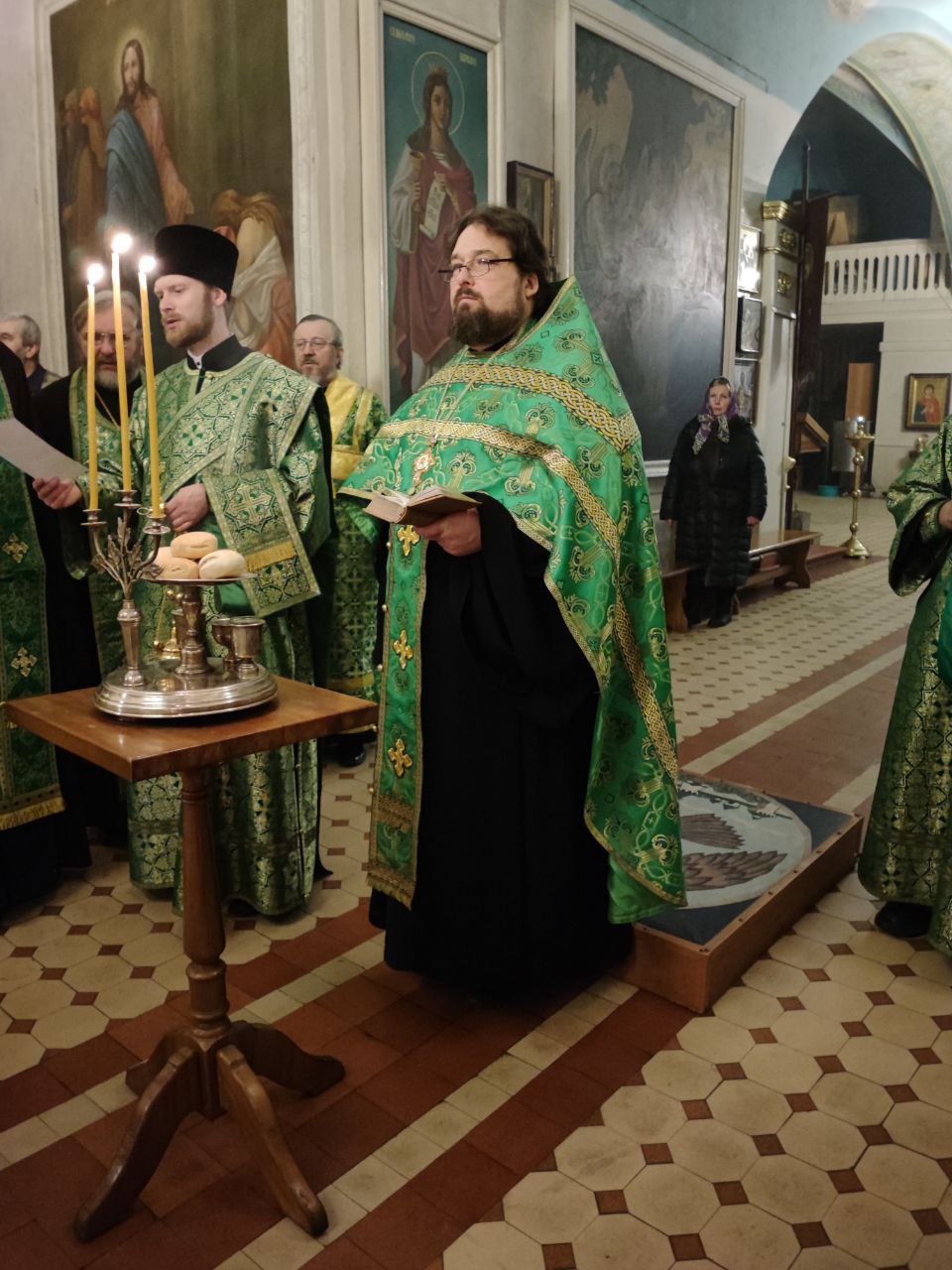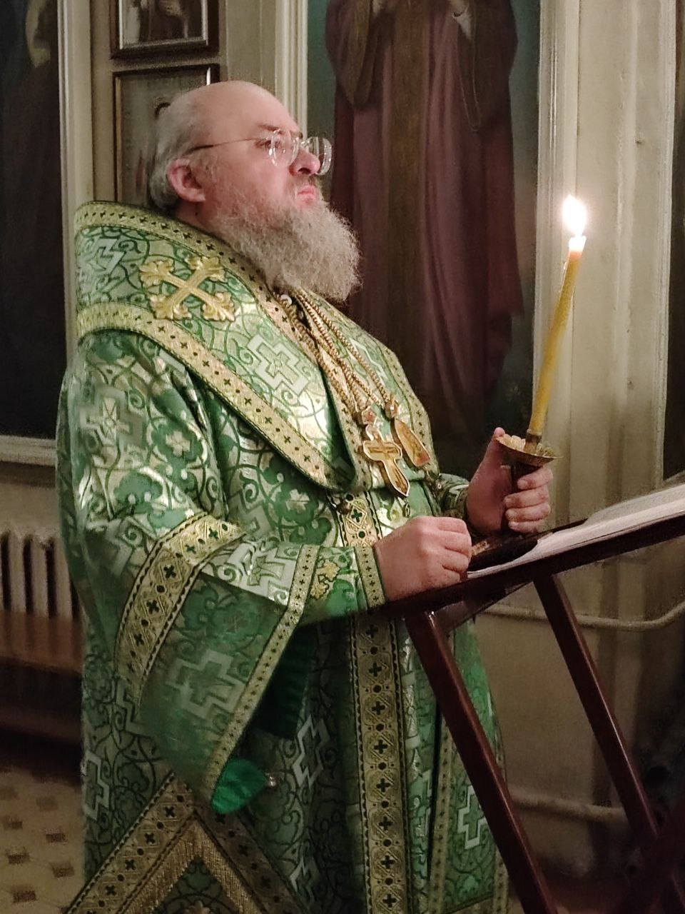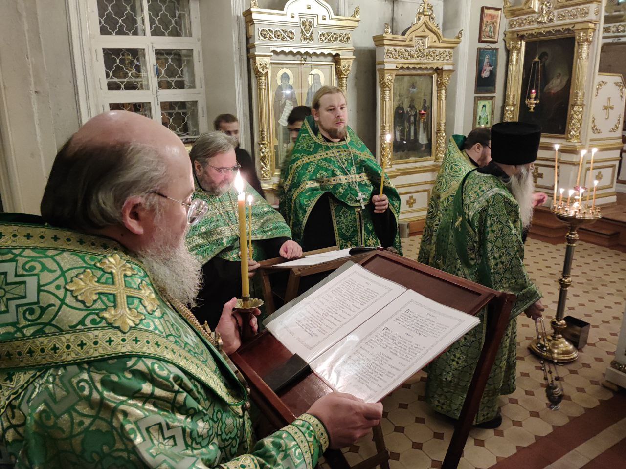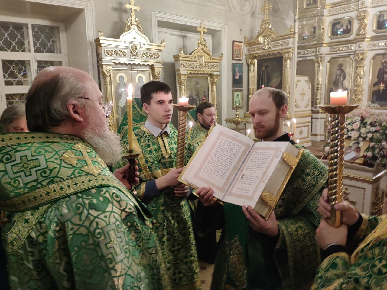 Преосвященному владыке сослужили: протоиерей Владимир Бахаев – секретарь епархии, благочинный Козельского округа с клириками благочиния.