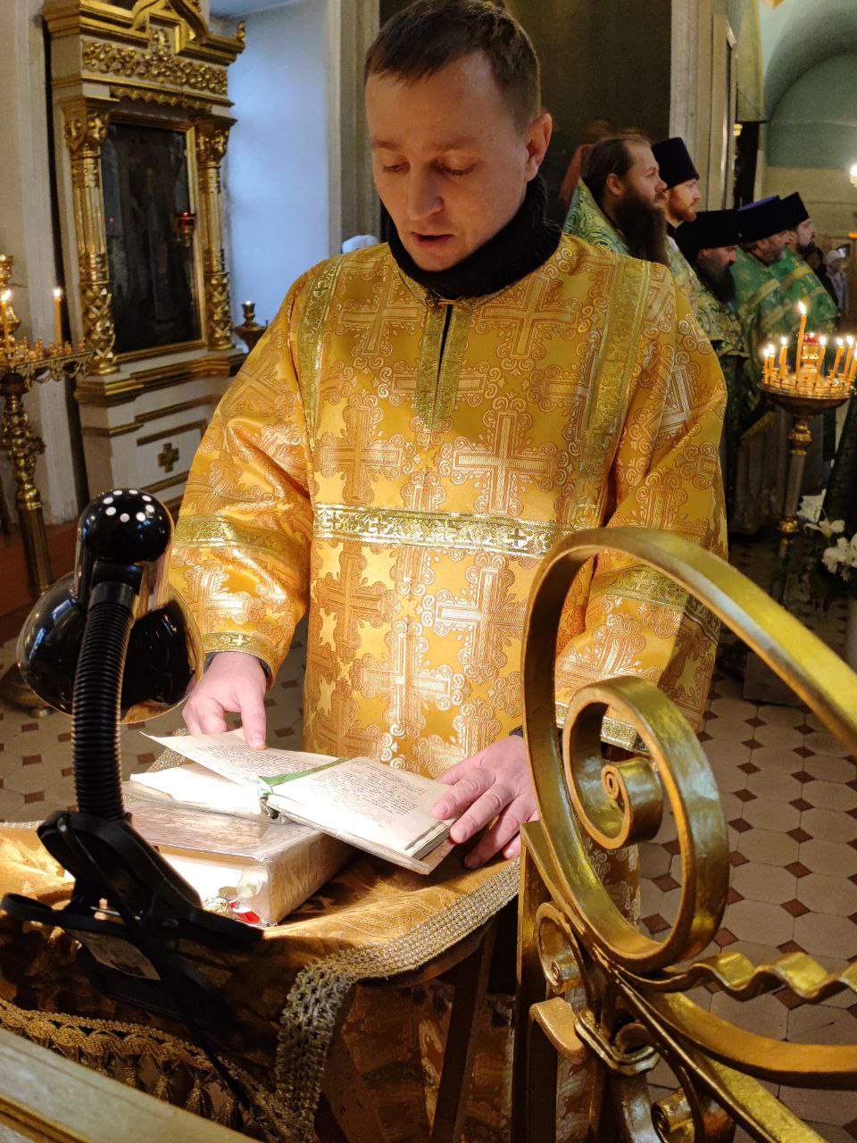 По отпусте литургии священнослужители совершили славление праздника Крещения Господня и преподобного Елеазара Анзерского, Козельского чудотворца (преподобный Елеазар родился и возрастал в богоспасаемом городе Козельске до своего удаления в Соловецкий монастырь).