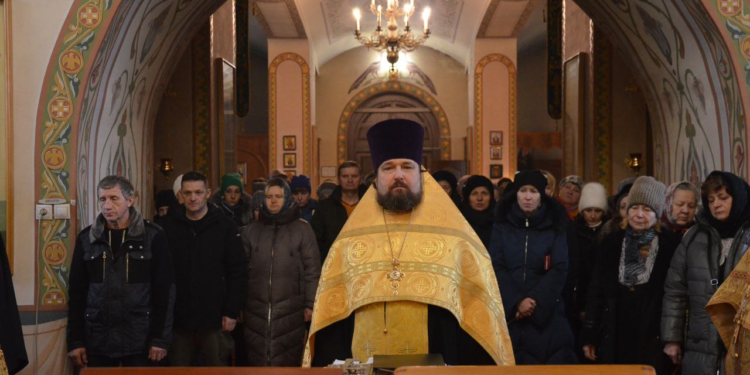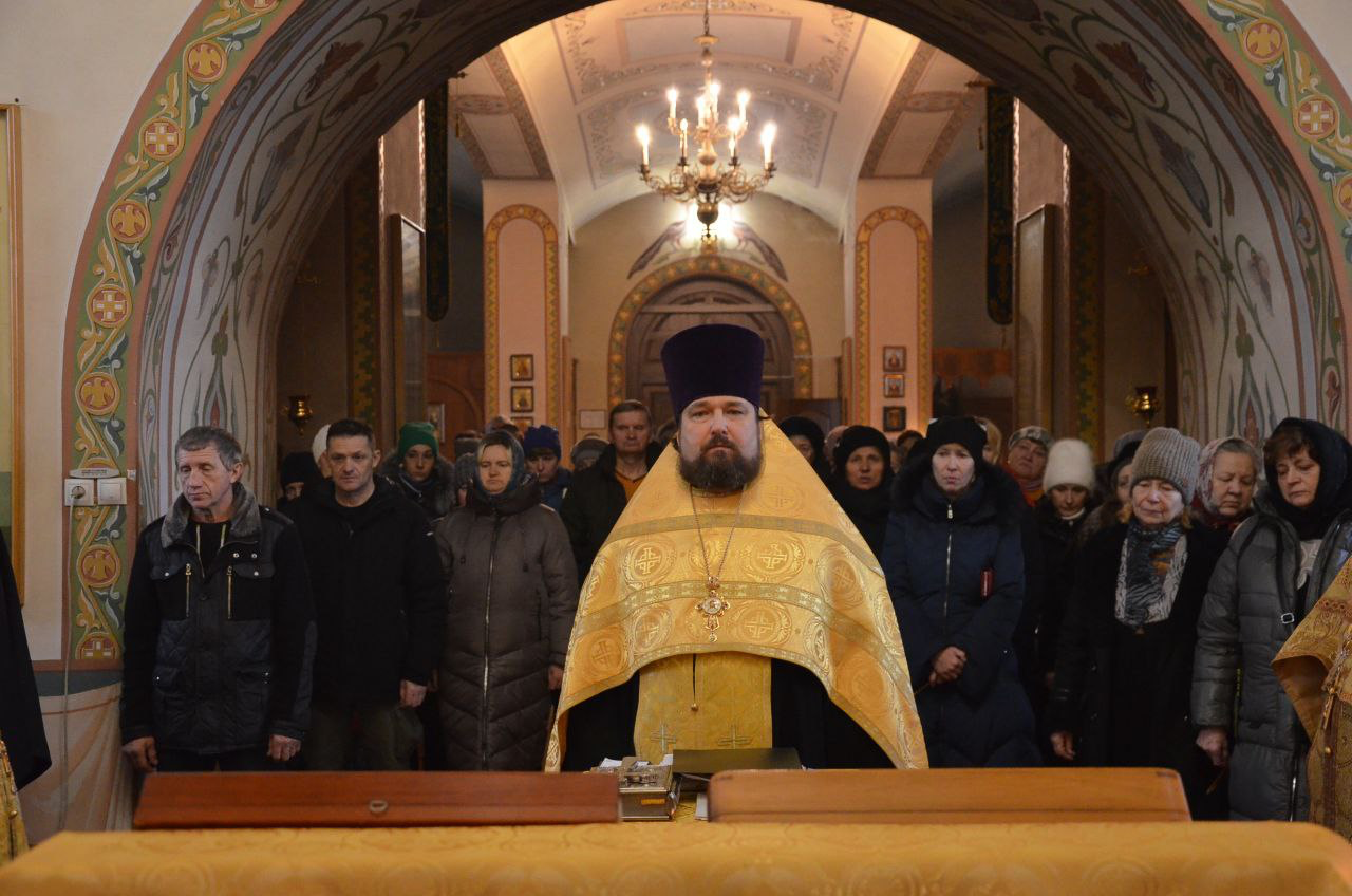 Служение молебна и литии возглавил протоиерей Владимир Бахаев – благочинный Козельского района, настоятель храма в честь преподобного Серафима Саровского города Сосенский. Отцу благочинному сослужили: иеромонах Тихон (Клинов) — клирик храма в честь святителя Николая архиепископа Мир Ликийских города Козельска, иерей Николай Кузнецов — настоятель храма в честь Воскресения Христова города Козельска, председатель Отдела по взаимодействию с Вооруженными силами и правоохранительными органами Козельской епархии и иерей Елисей Тимофеев — клирик кафедрального собора в честь Успения Пресвятой Богородицы, помощник благочинного по социальному служению.