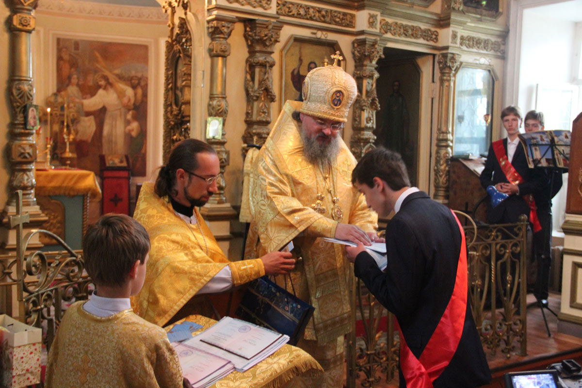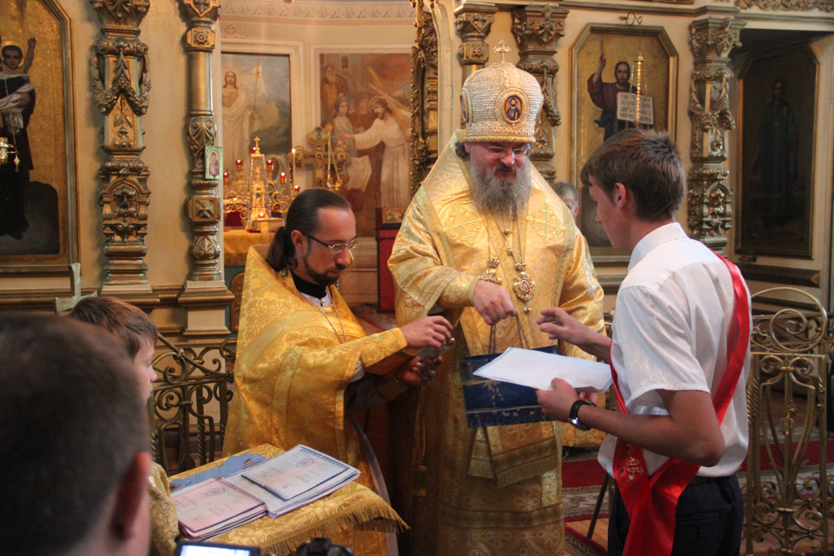 Этот выпускной, по новой традиции сложившейся при директоре иерее Антонии Лунине, начался с Божественной Литургии, которую возглавил епископ Козельский и Людиновский Никита, он же торжественно вручил выпускникам аттестаты. Посещение Оптиной Пустыни, чтобы услышать мудрые напутственные слова наместника архимандрита Венедикта – еще одна новая традиция.