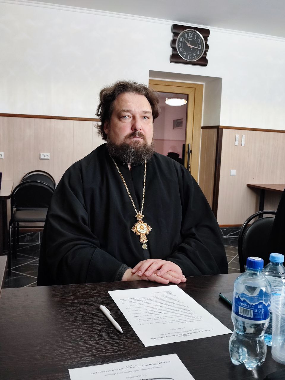 Секретарь епархиального Совета – протоиерей Владимир Бахаев, настоятель храма преподобного Серафима Саровского г. Сосенский, секретарь Козельской епархии, благочинный 1-го округа.