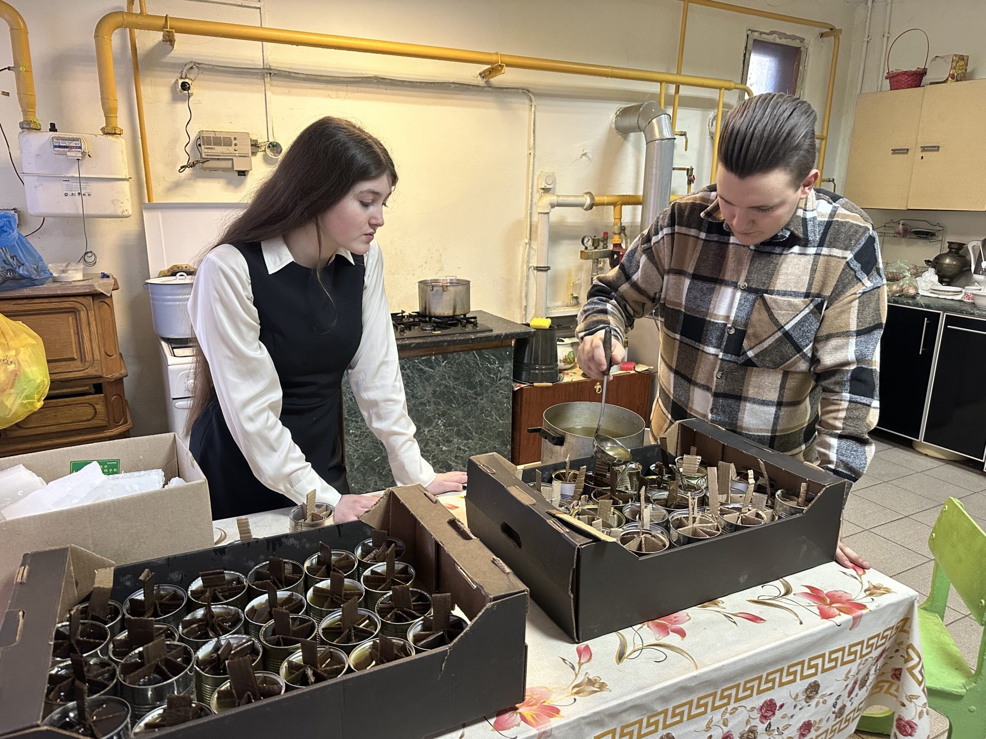 12 февраля Молодежный Совет при Людиновском Районном Собрании совместно с воскресной школой «Радонеж» при храме в честь преподобного Сергия Радонежского начали делать блиндажные свечи для военных, находящихся в зоне СВО. Такая свеча горит от четырех до восьми часов. Свечами можно обогреть палатку, согреть руки, высушить вещи и вскипятить воду в полевых условиях. Блиндажные свечи изготавливают из жестяных банок, картона, воска или парафина.