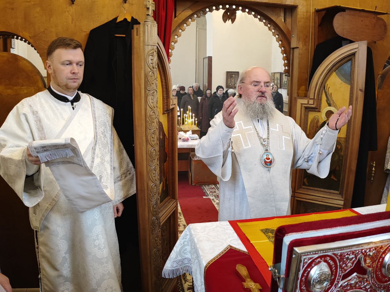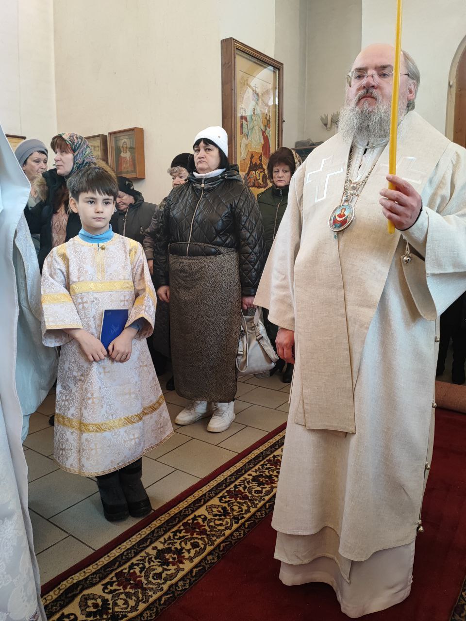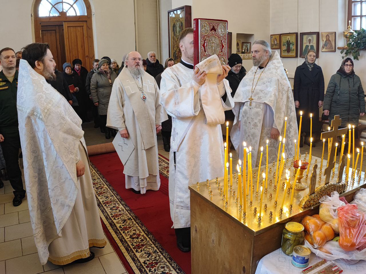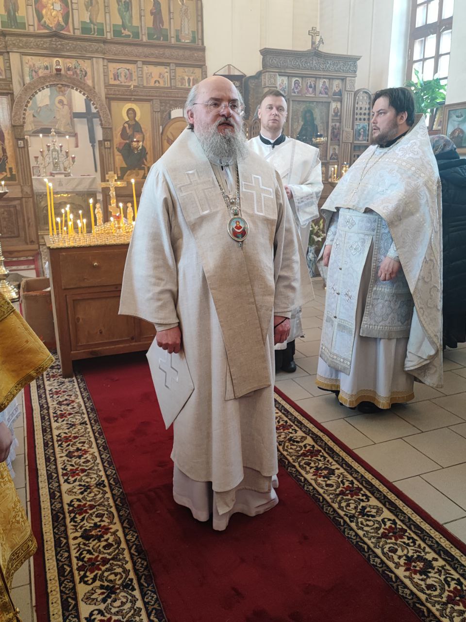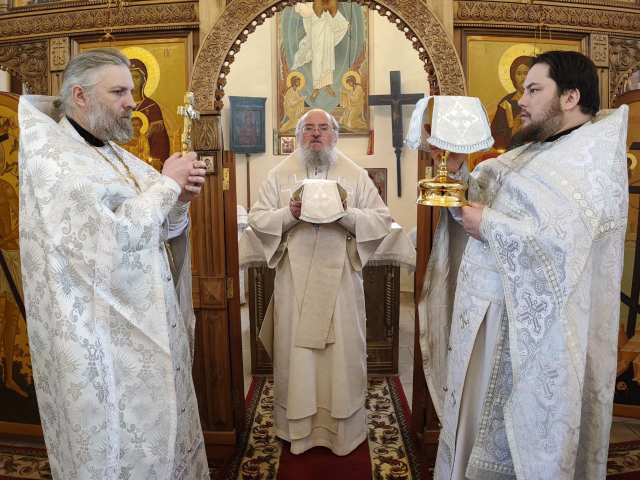 Архипастырю сослужили: протоиерей Антоний Хатунцев, иерей Николай Кузнецов – настоятель прихода и диакон Евгений Ковригин.