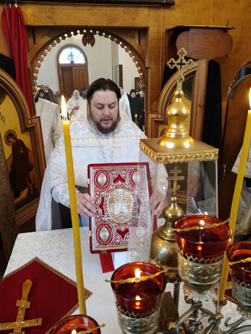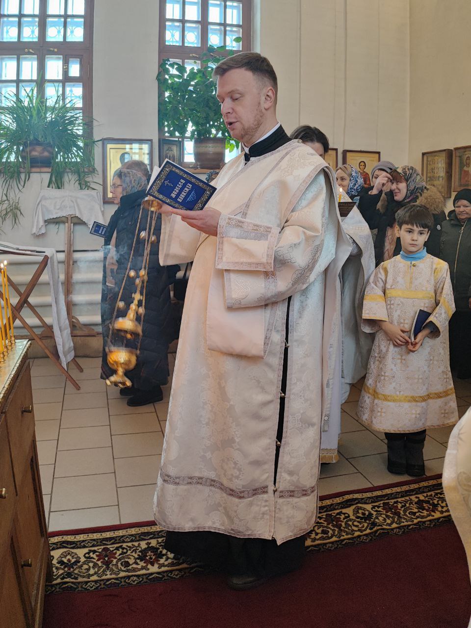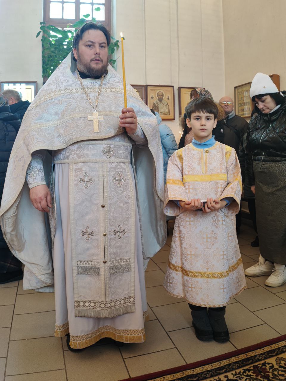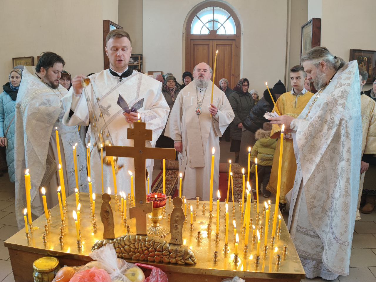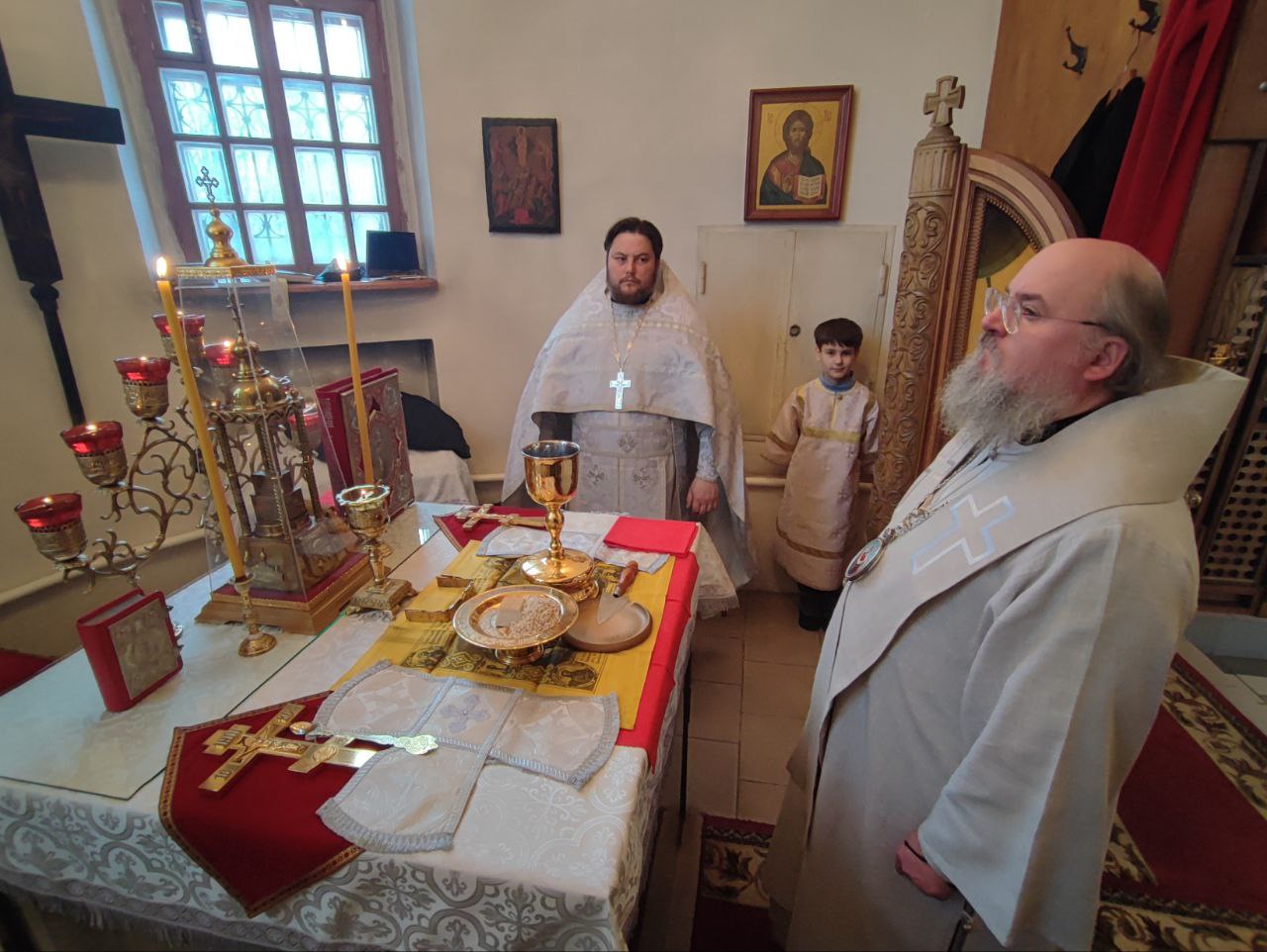 Архипастырю сослужили: протоиерей Антоний Хатунцев, иерей Николай Кузнецов – настоятель прихода и диакон Евгений Ковригин.