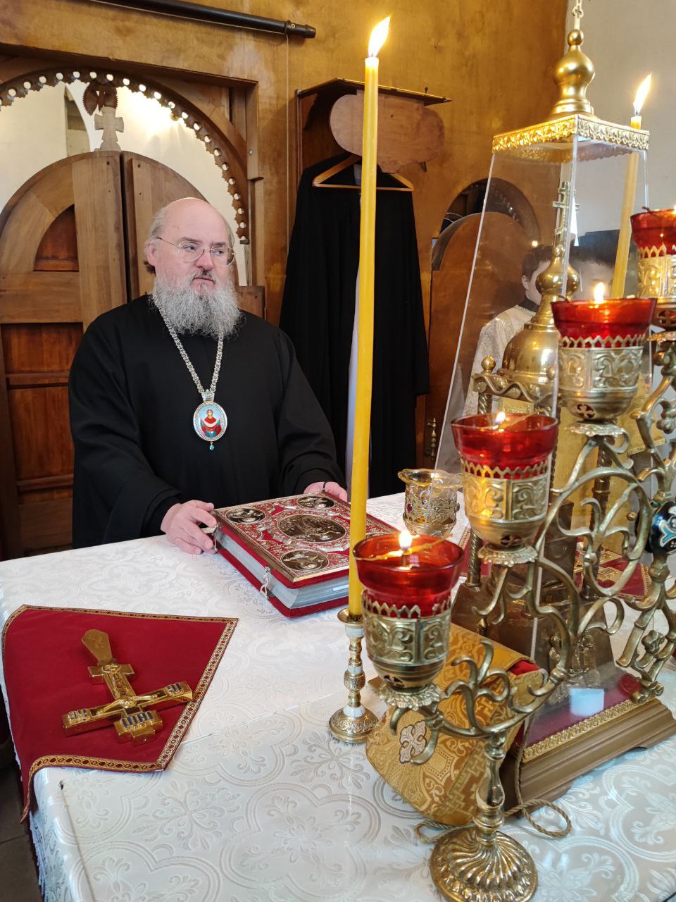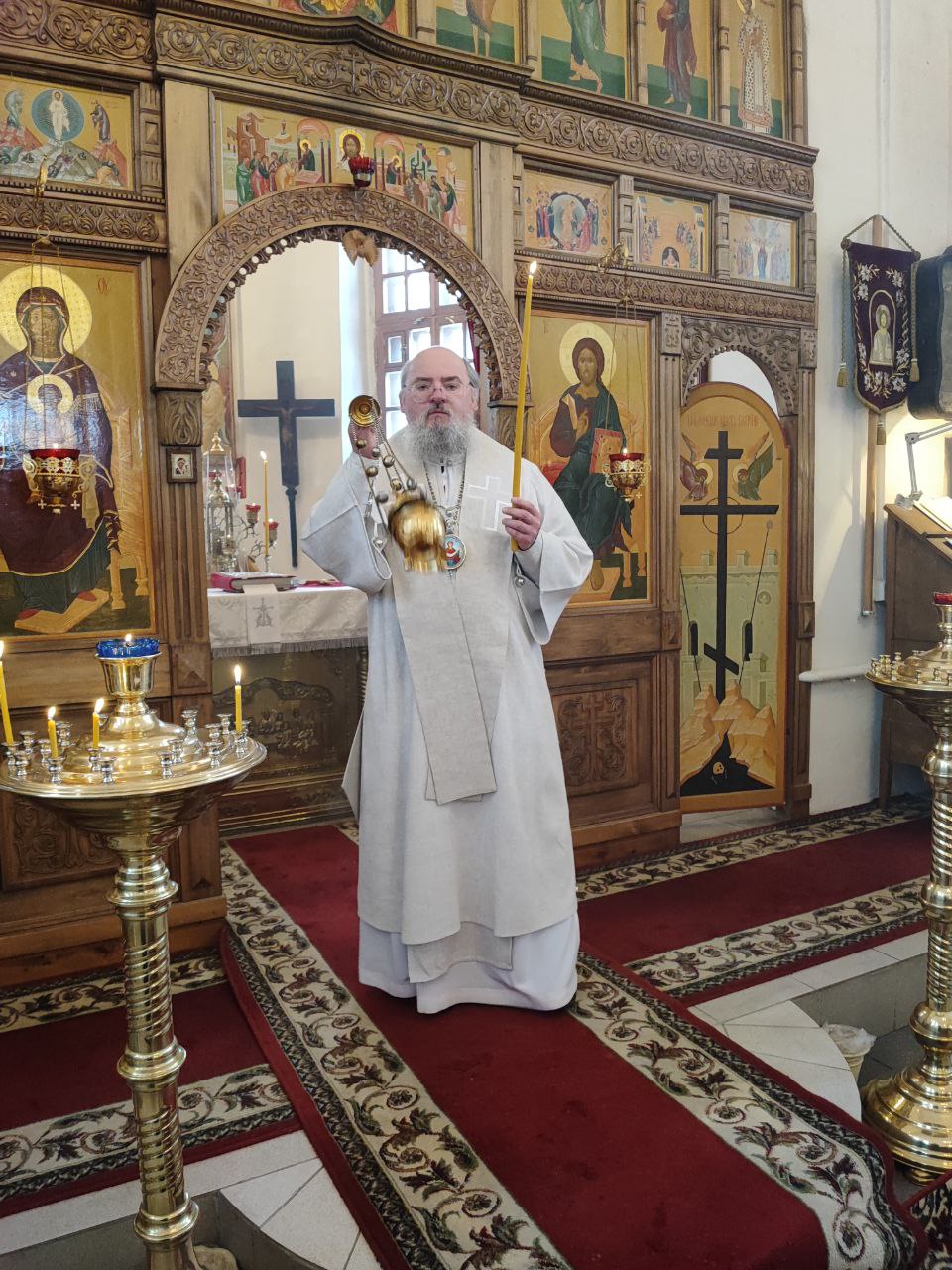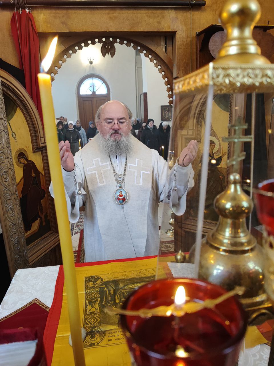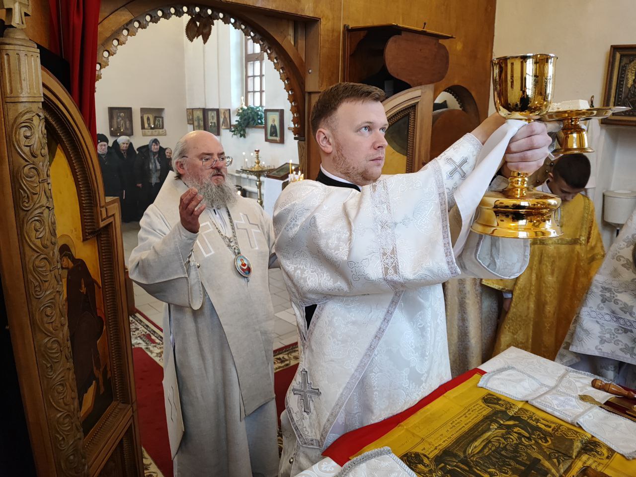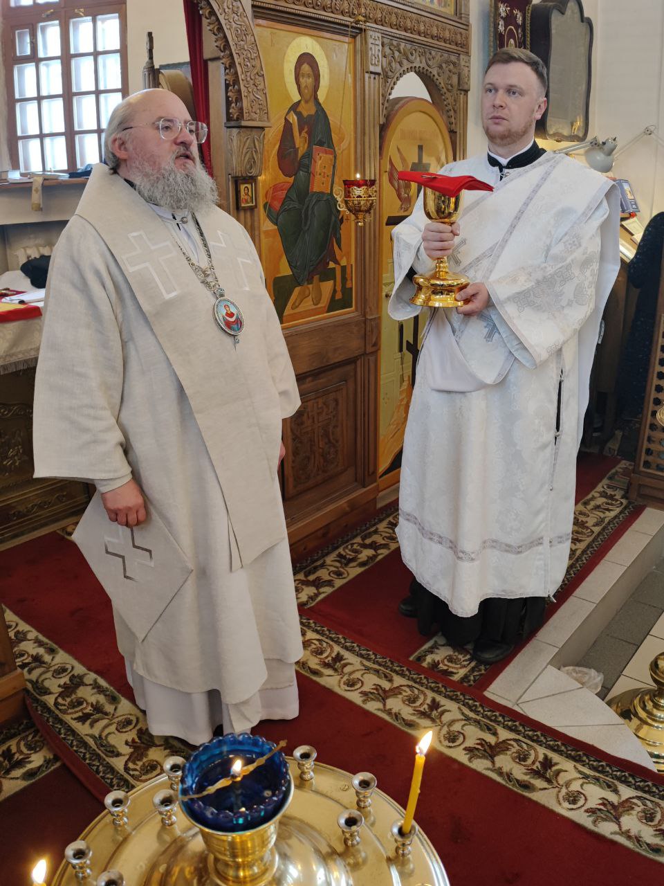 Архипастырю сослужили: протоиерей Антоний Хатунцев, иерей Николай Кузнецов – настоятель прихода и диакон Евгений Ковригин.