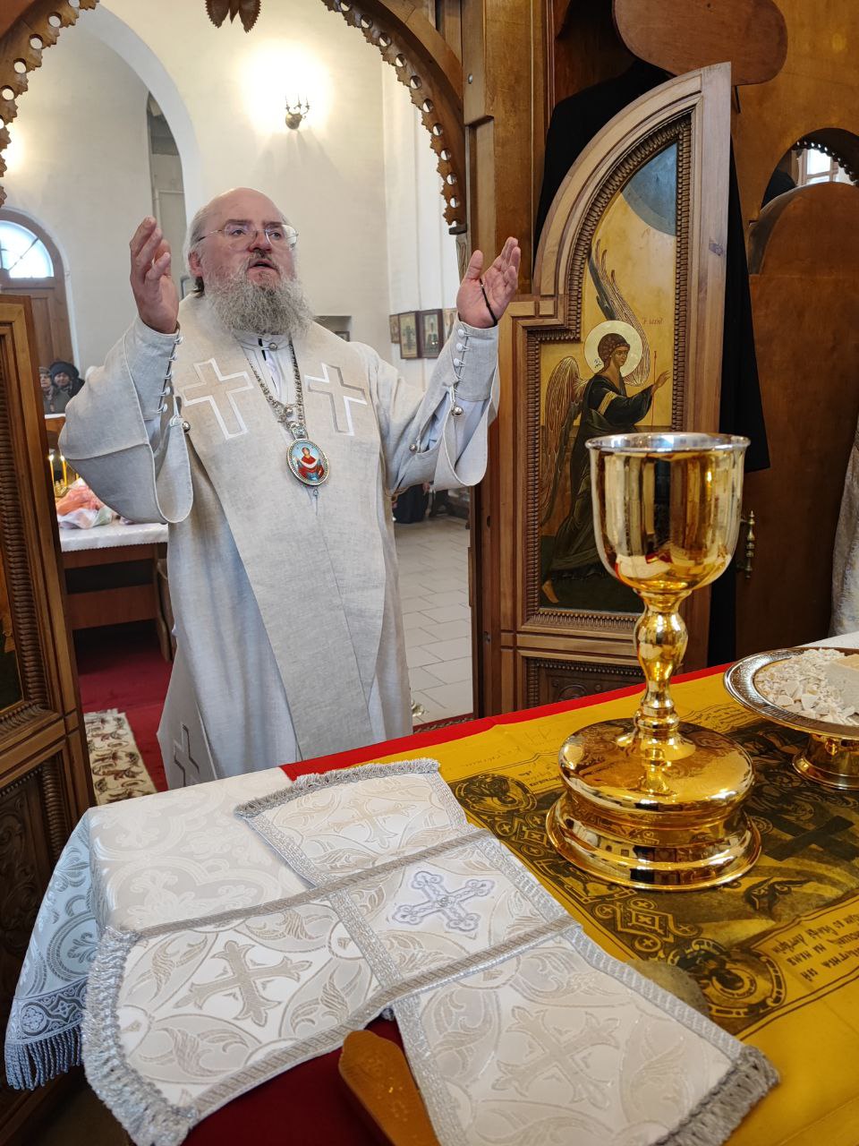 18 февраля. Мясопустная родительская суббота. Епископ Козельский и Людиновский Никита совершил Божественную литургию в храме Воскресения Христова на городском кладбище Козельска.