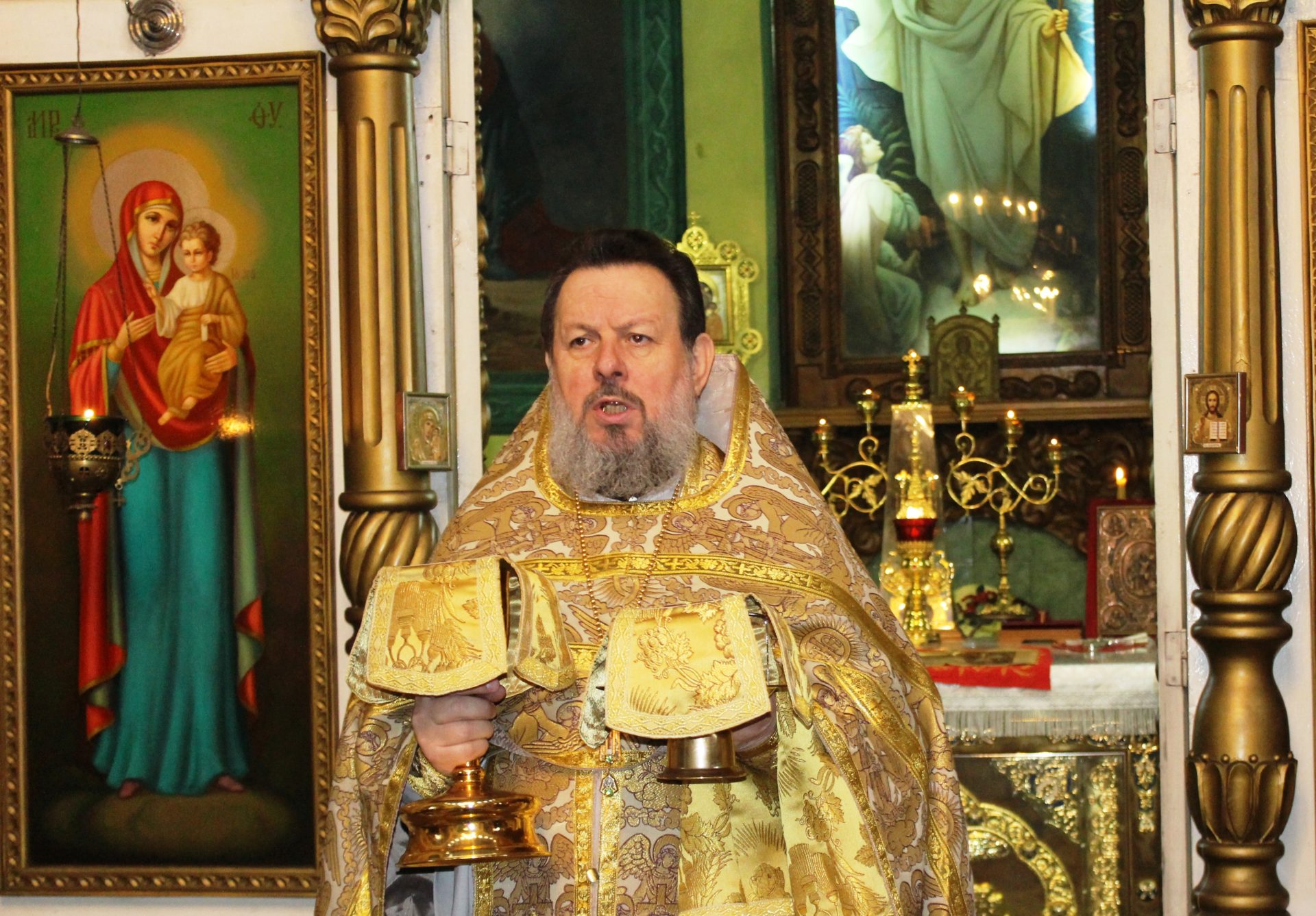 По окончании литургии отец Василий обратился ко всем прихожанам с проповедью .»Мы собираемся в прощеный день в святые храмы для того, чтобы испросить друг у друга прощения в наших согрешениях и нанесенных друг другу обидах. В Святом Евангелии сказано о том, как надо поститься. «Когда поститесь, не будьте унылы, как лицемеры, ибо они принимают на себя мрачные лица, чтобы показаться людям постящимися. Истинно говорю вам, – говорит Господь, – что они уже получают награду свою. А ты, когда постишься, помажь голову твою и умой лицо твое, чтобы явиться постящимся не пред людьми, но пред Отцом твоим, Который втайне. И Отец твой, видящий тайное, воздаст тебе явно». Вот такие слова есть в Святом Евангелии о том, как надо поститься. Сказано также в Святом Евангелии о молитве, о том, как надо молиться. «Когда молишься, войди в комнату твою и, затворив дверь твою, помолись Отцу твоему, Который втайне. И Отец твой, видящий тайное, воздаст тебе явно». Вот так и в нынешний день, собравшись в святой храм, мы, дорогие братья и сестры, от всего сердца, искренне простим друг другу прегрешения, забудем всякие обиды, забудем всякие поношения, которые часто бывают у нас в жизни.»