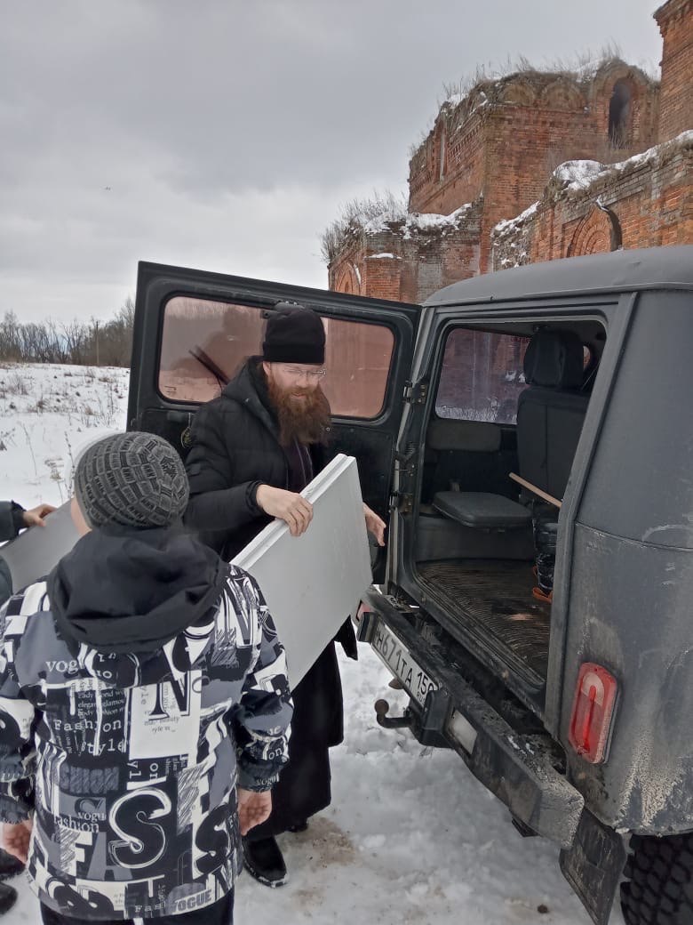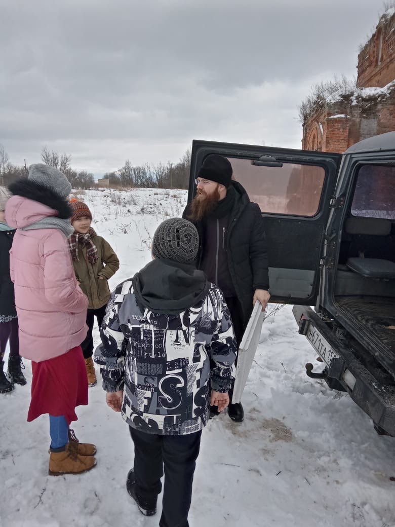 Поездка состоялась в рамках занятий по изучению истории Козельского уезда и в частности исторического отрезка, когда в годы безбожных гонений разрушались и закрывались храмы. Ребята расчистили снег у храма, подмели и убрали внутри помещения. У костра были предложены блины и чай, а так же состоялась беседа с чтением исторических выписок из клировых ведомостей о храме.