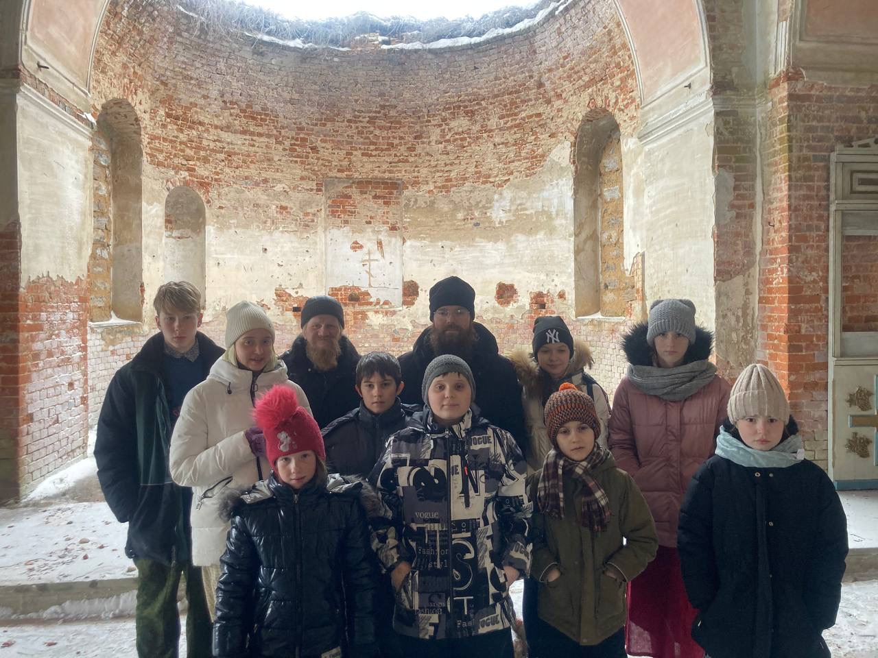 Посещение разрушенного храма воспитанниками Воскресной школы села Нижние Прыски