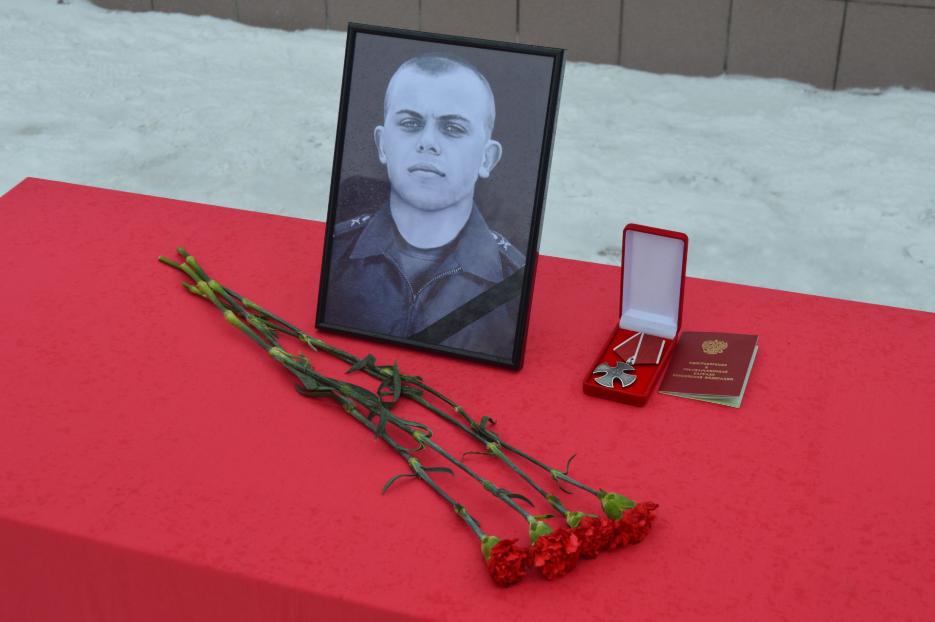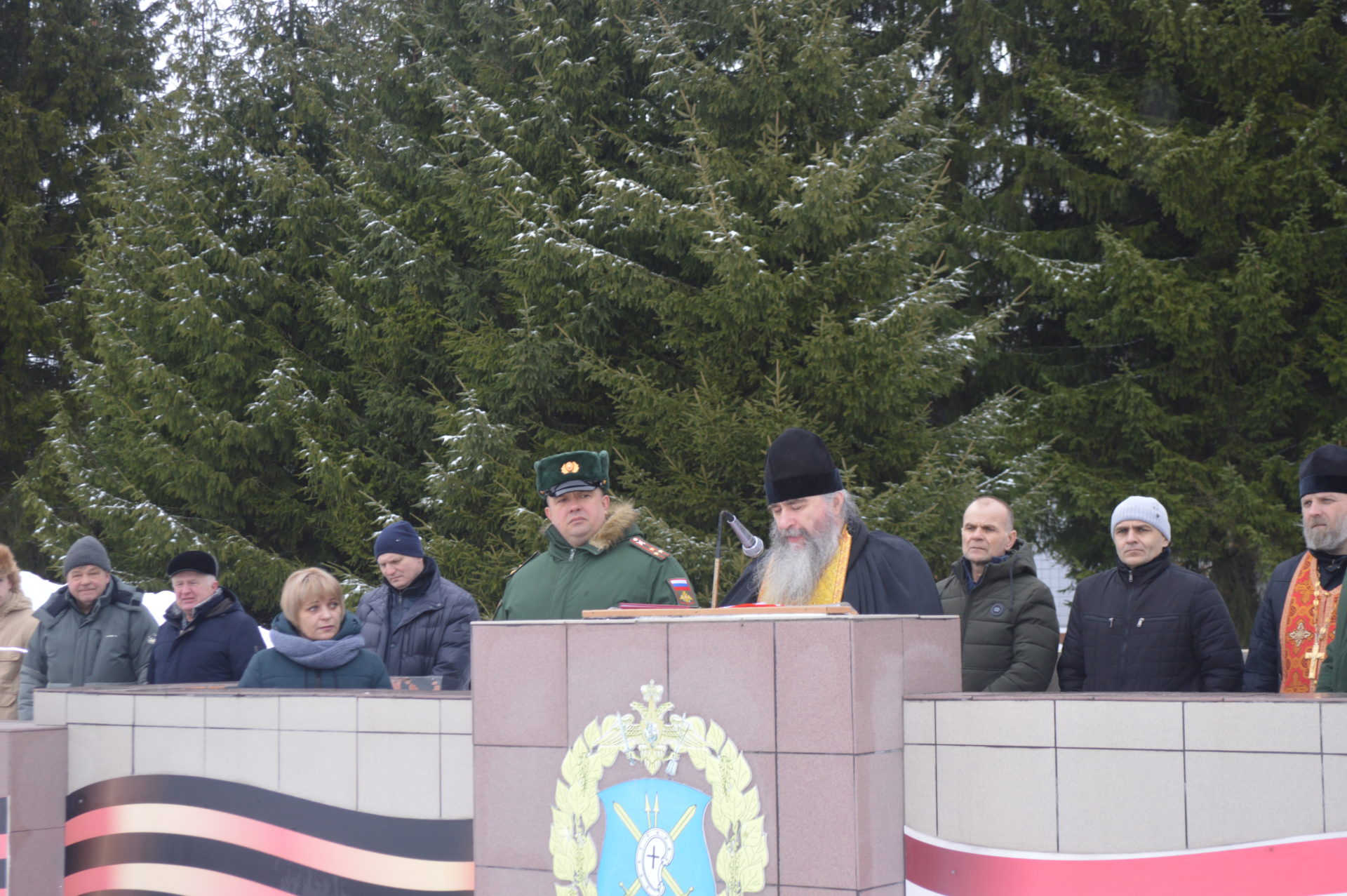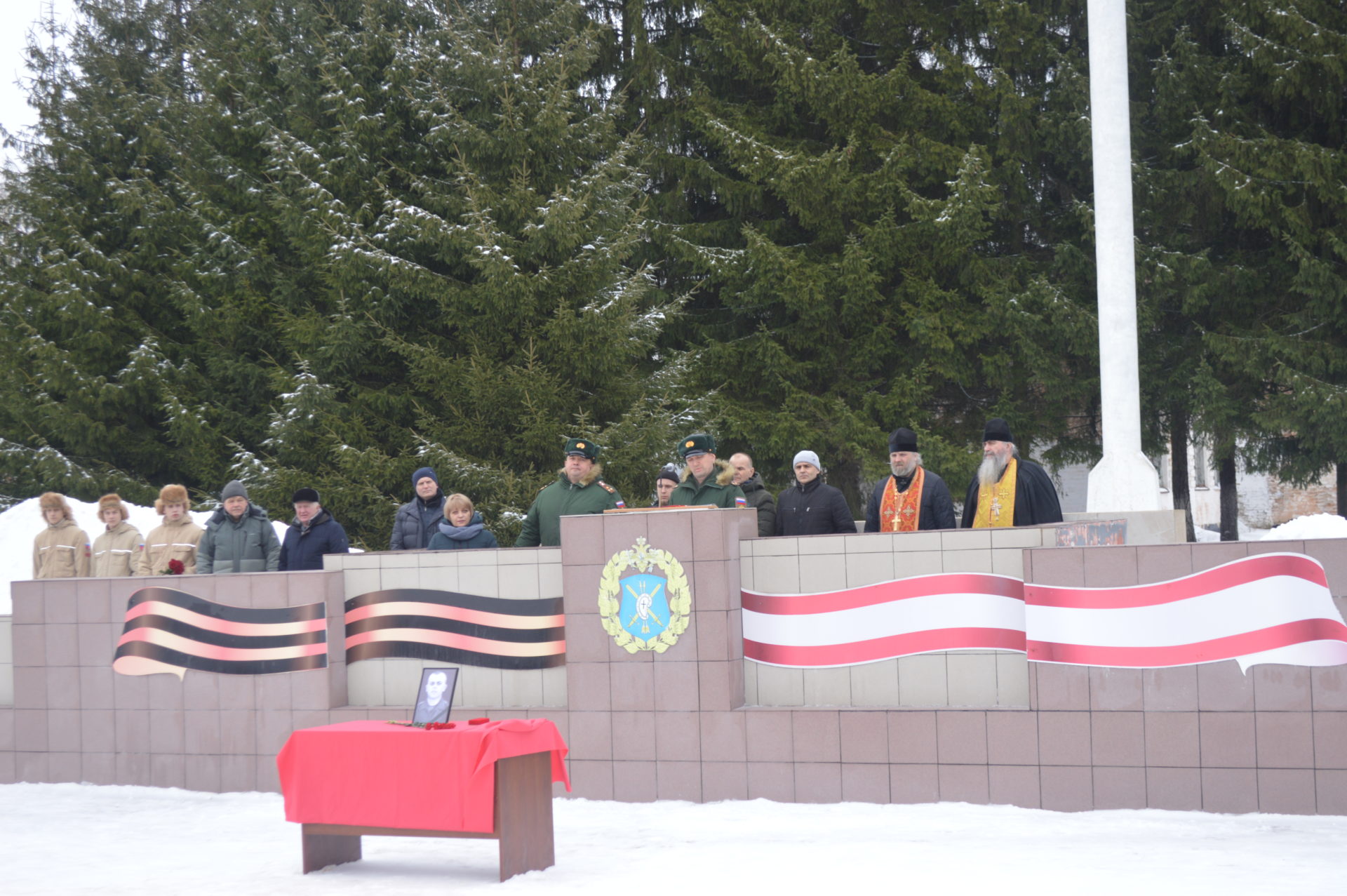 На митинге посвященному этому событию выступили: командир дивизии Соколов Алексей Владимирович, мама героя, представители Администрации города Козельска, Юнармии, насельник Оптиной Пустыни иеромонах Силуан (Межинский) и руководитель епархиального Отдела Козельской епархии по взаимодействию с Вооруженными Силами иерей Николай Кузнецов. На митинге присутствовали родные и близкие воина Алексея. Память погибшего почтили минутой молчания.