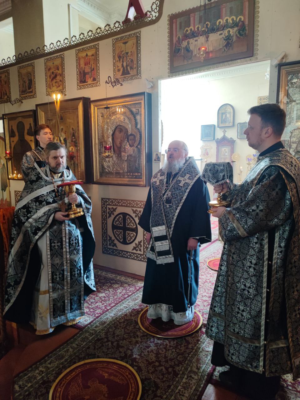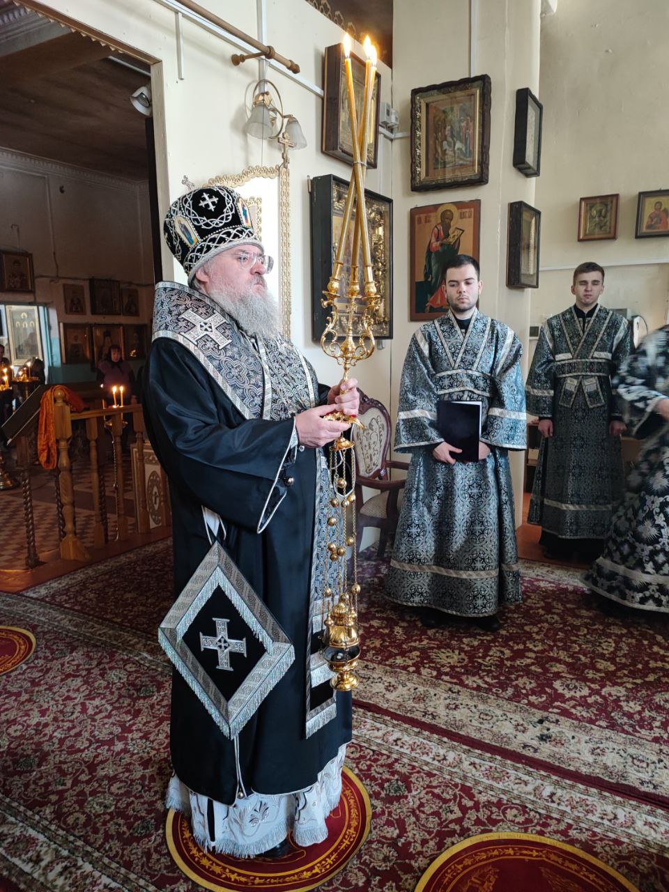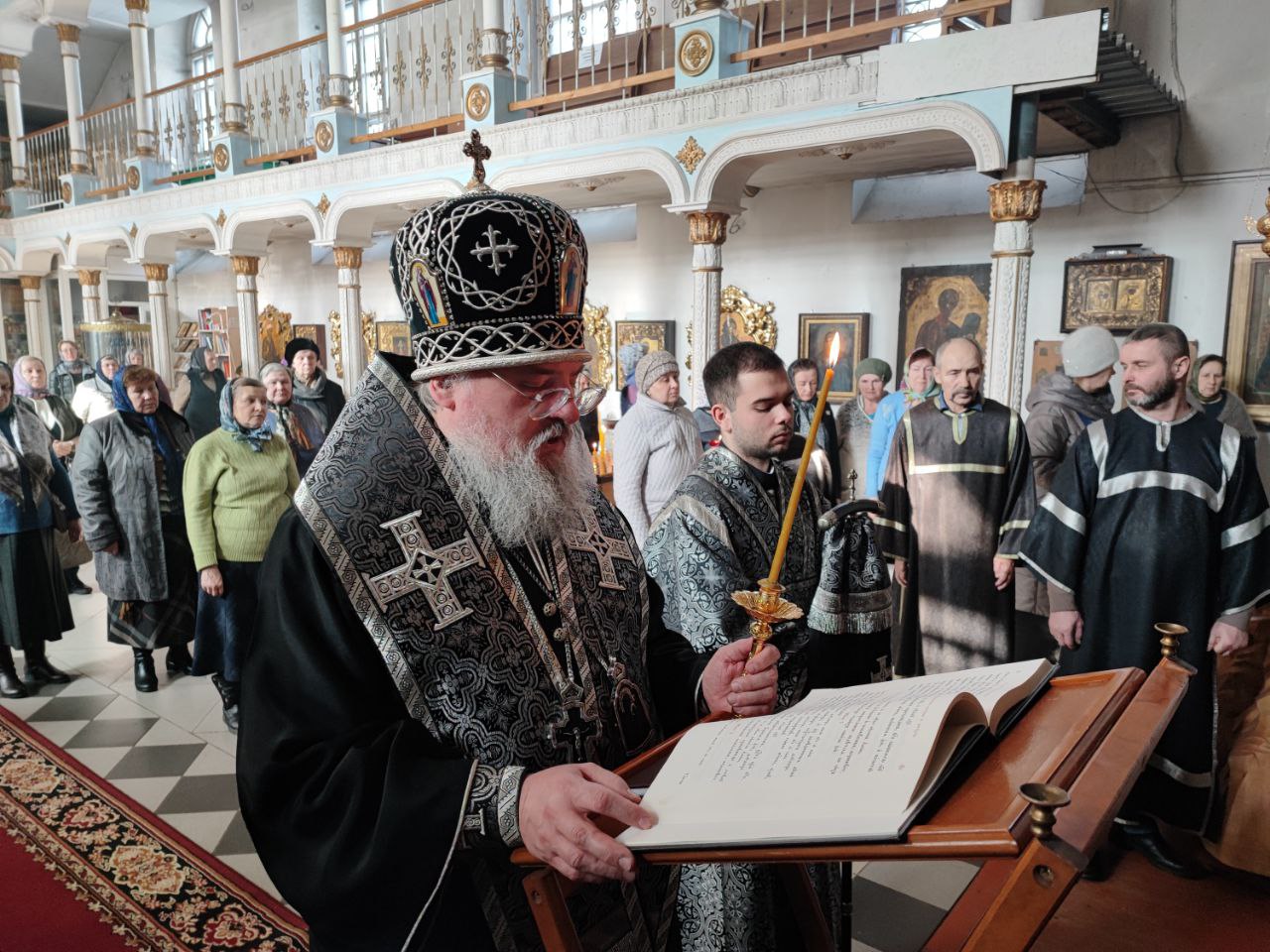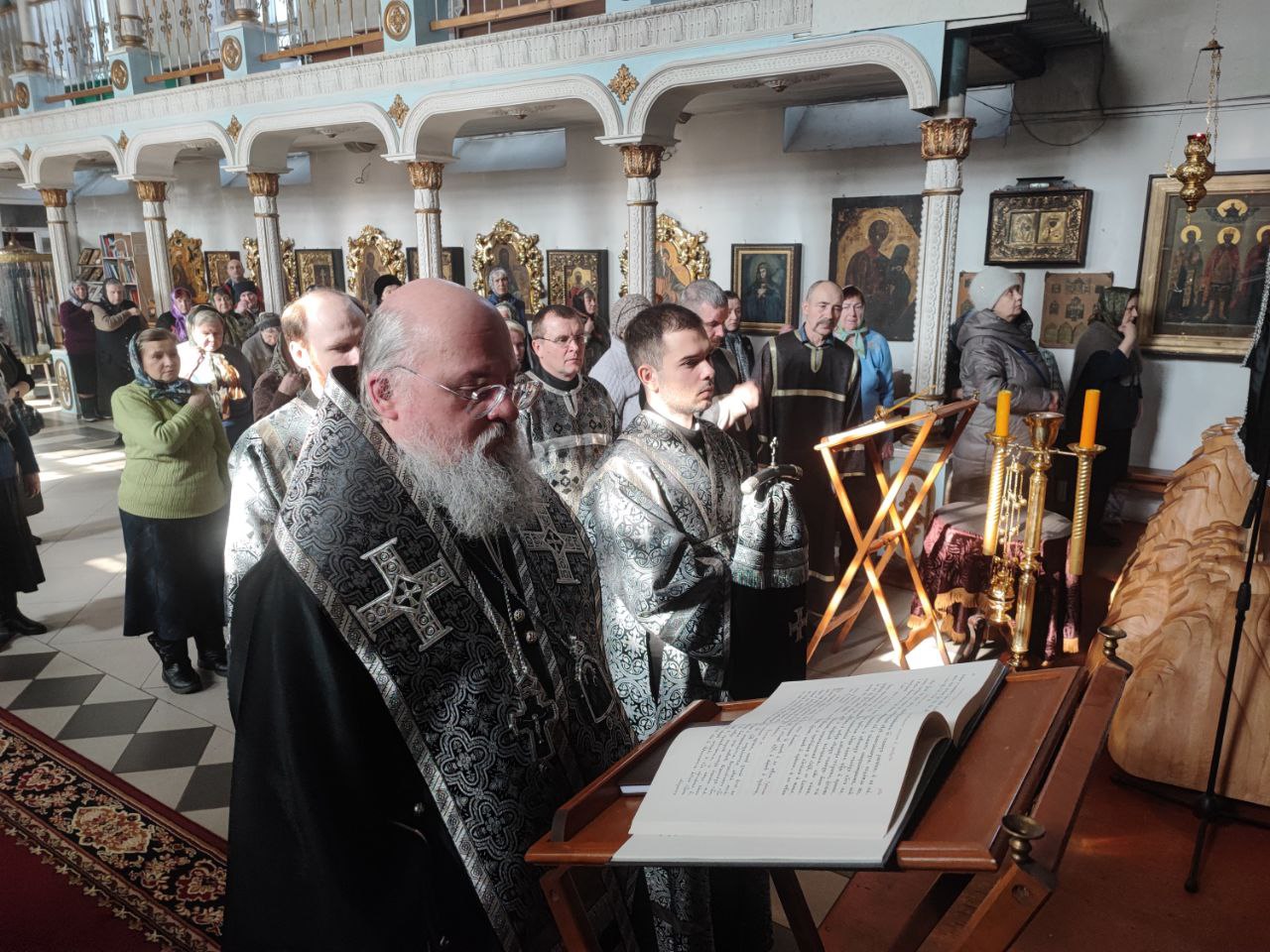 В пятницу первой седмицы Великого поста епископ Никита литургию Преждеосвященных Даров в Казанском соборе города Людиново