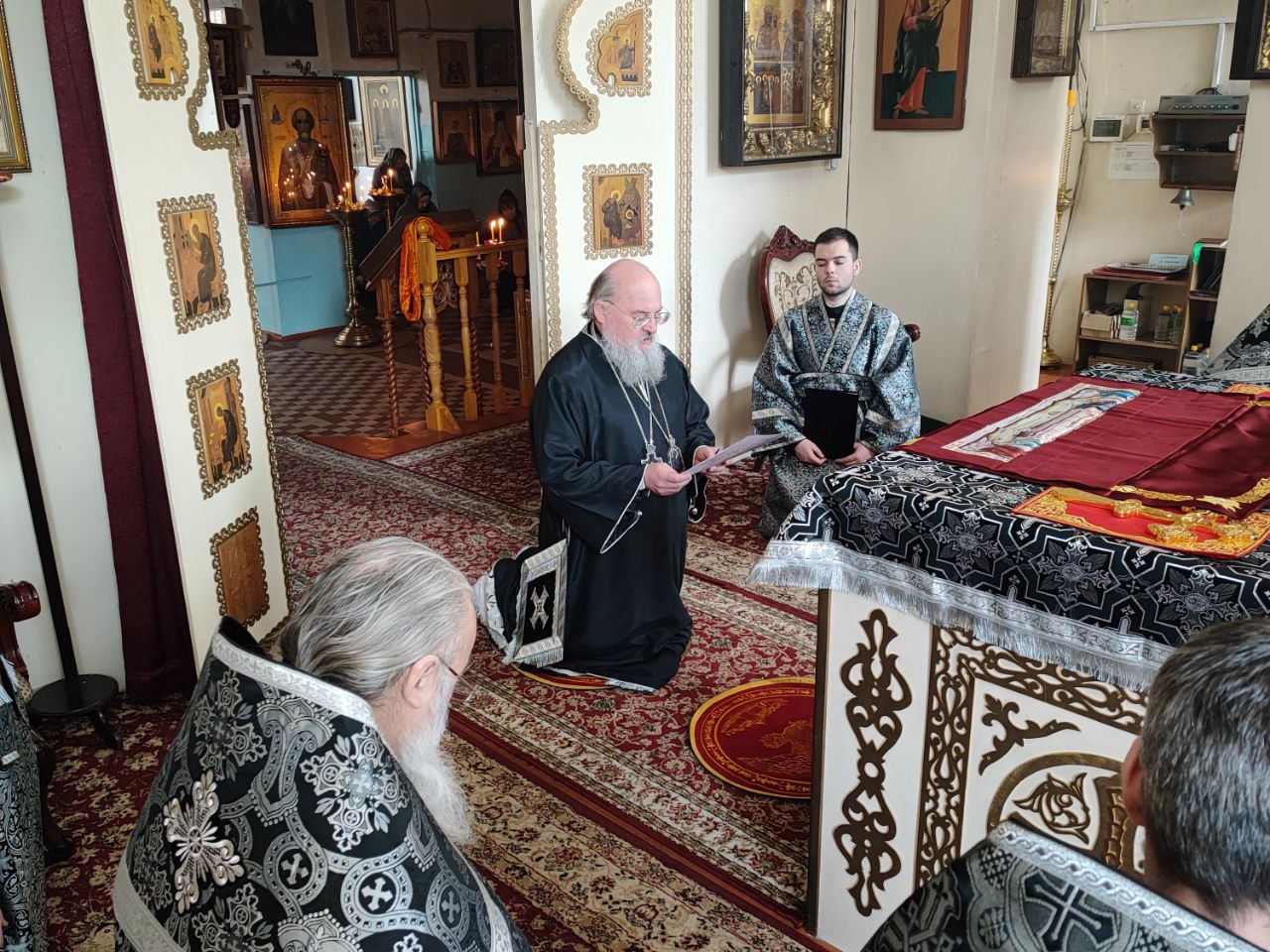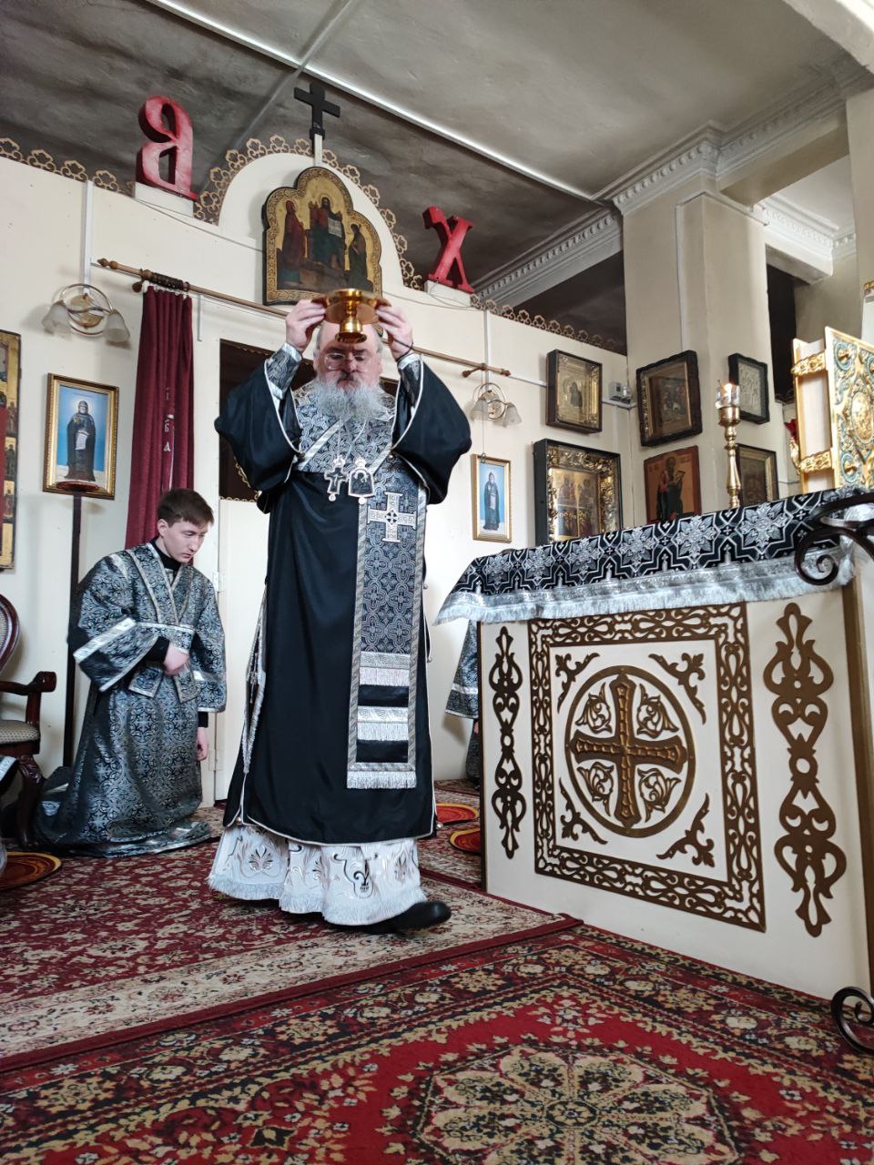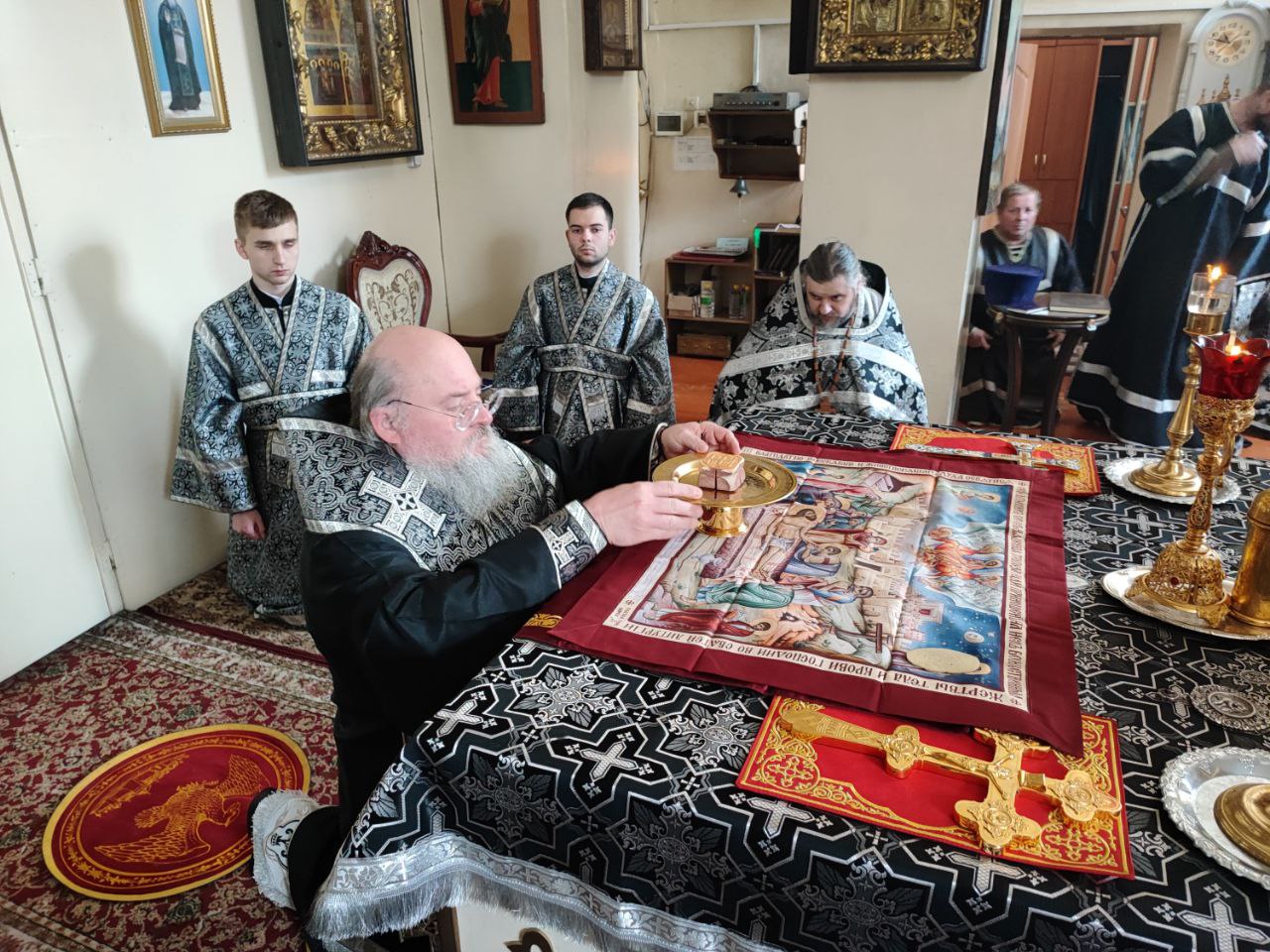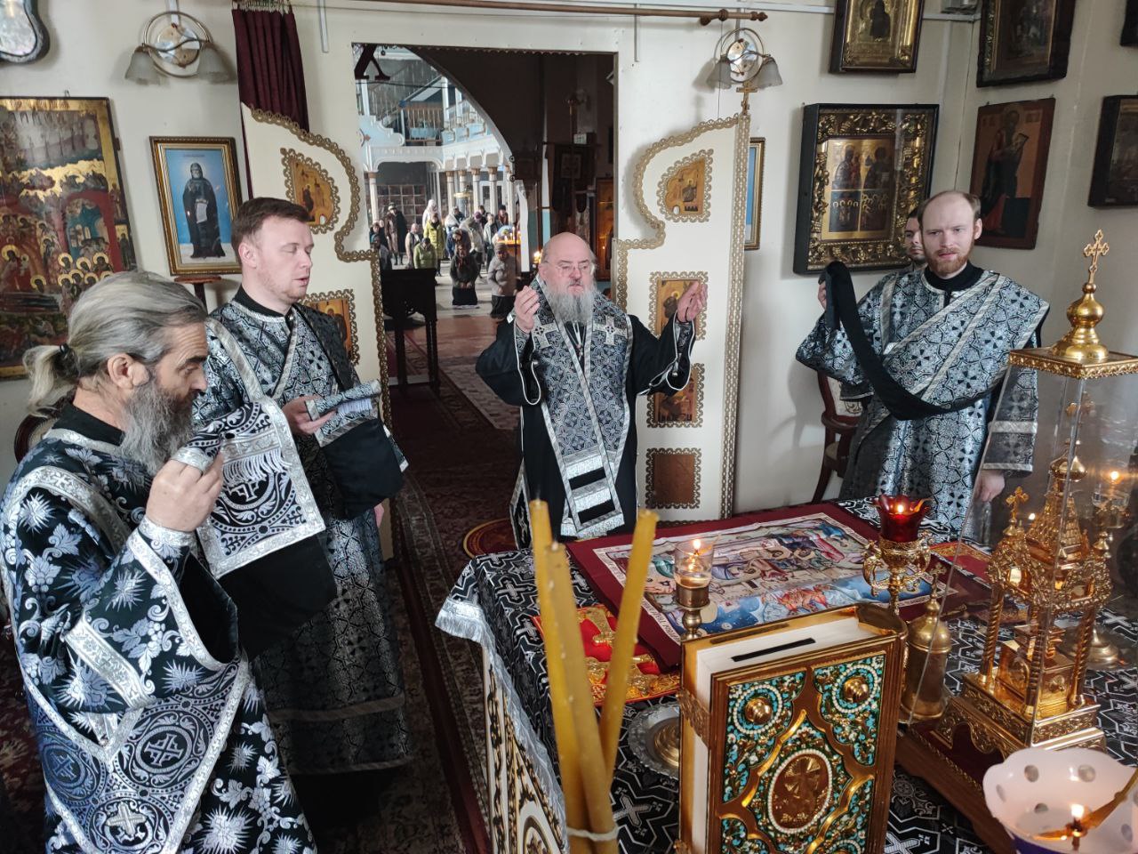 В пятницу первой седмицы Великого поста епископ Никита литургию Преждеосвященных Даров в Казанском соборе города Людиново