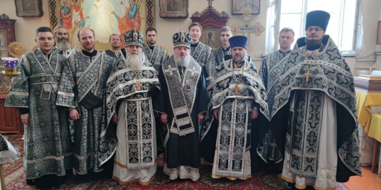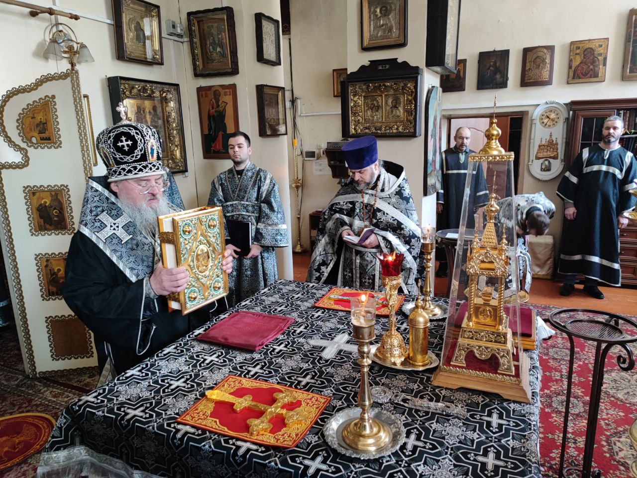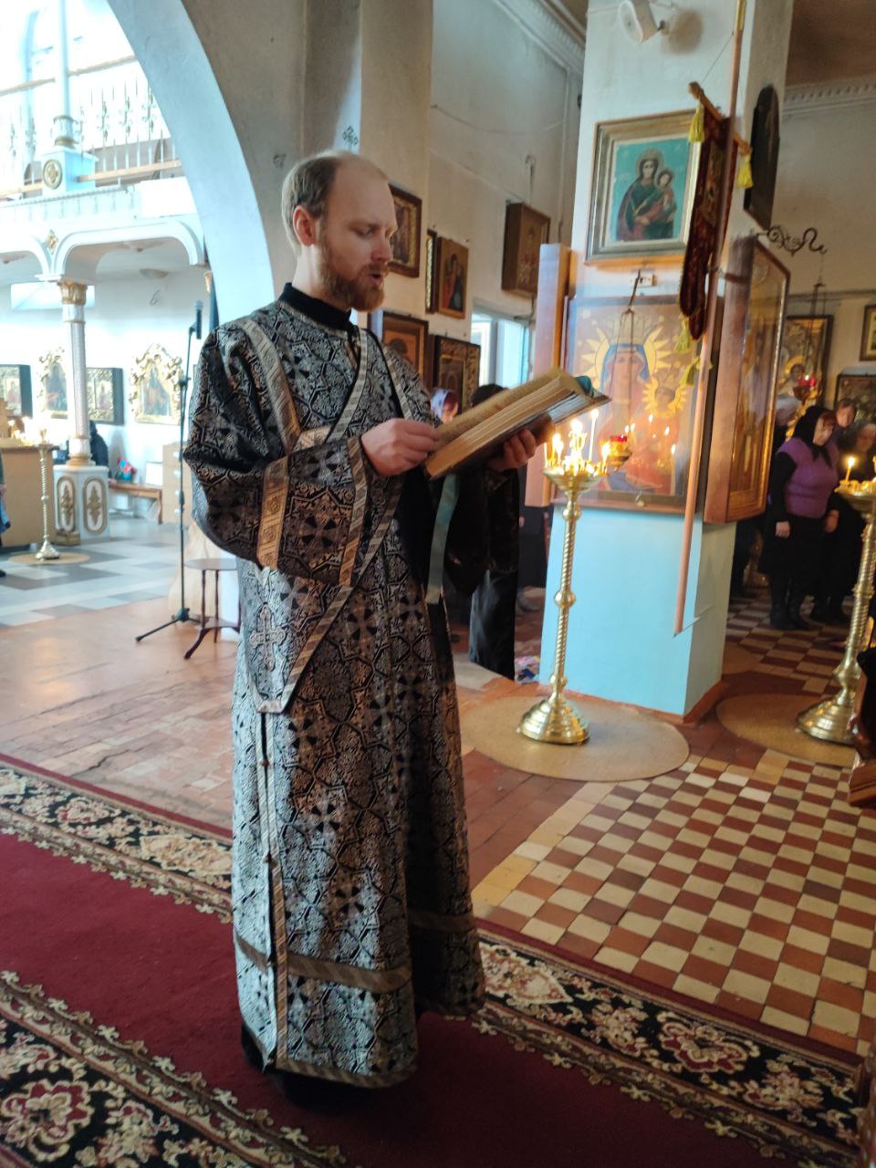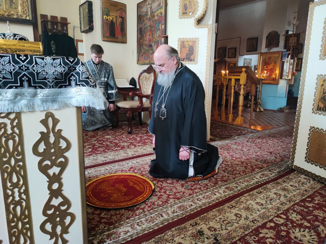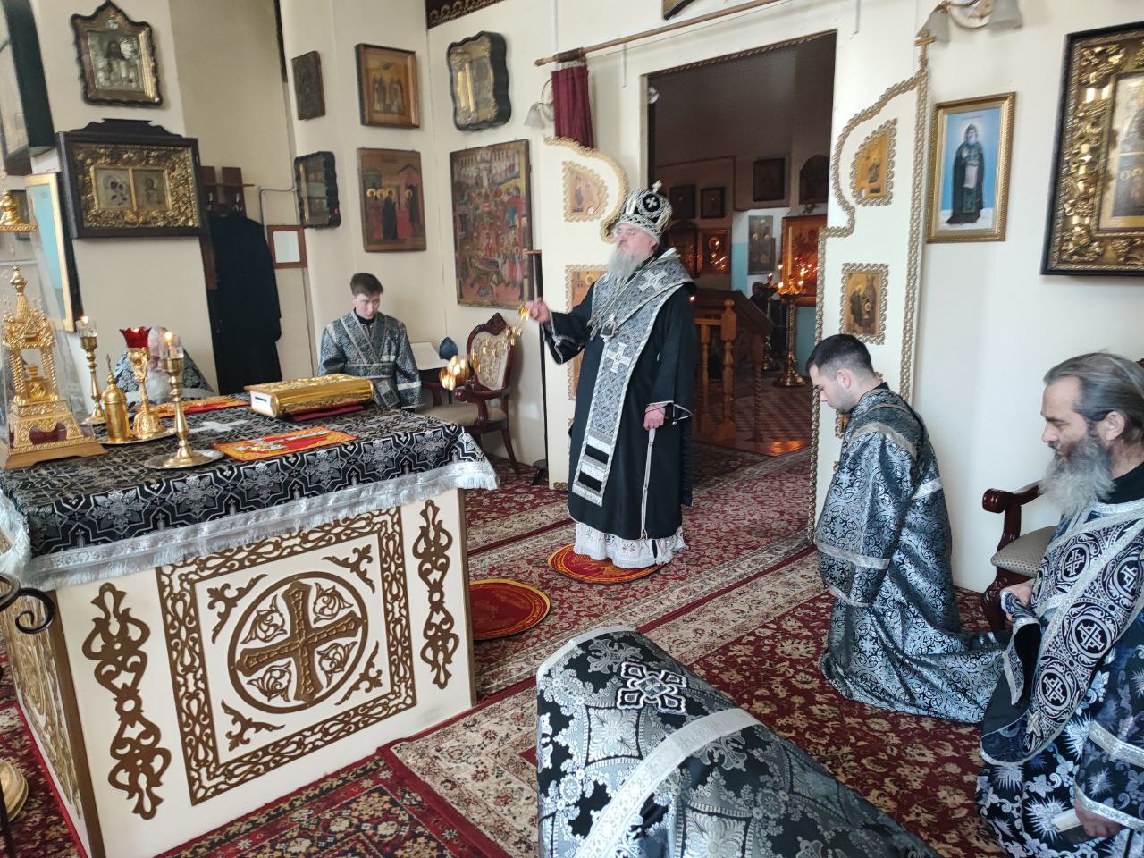 В пятницу первой седмицы Великого поста епископ Никита литургию Преждеосвященных Даров в Казанском соборе города Людиново