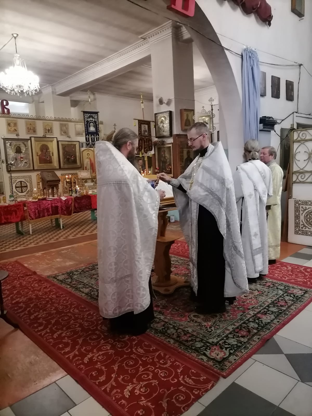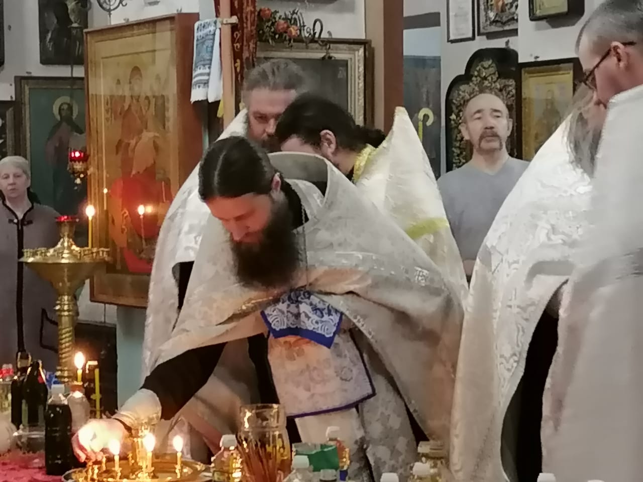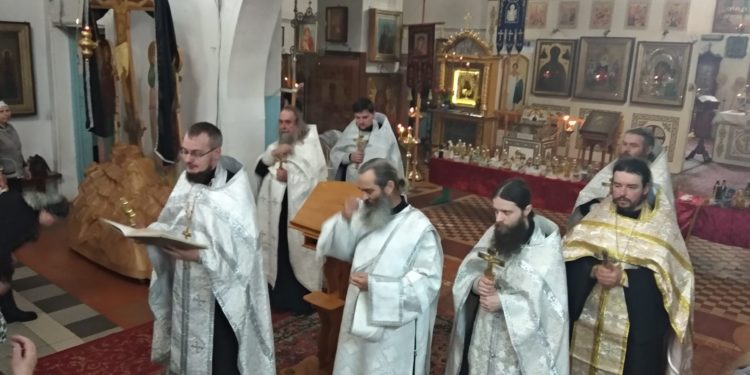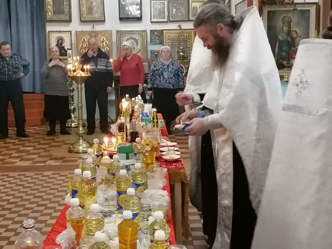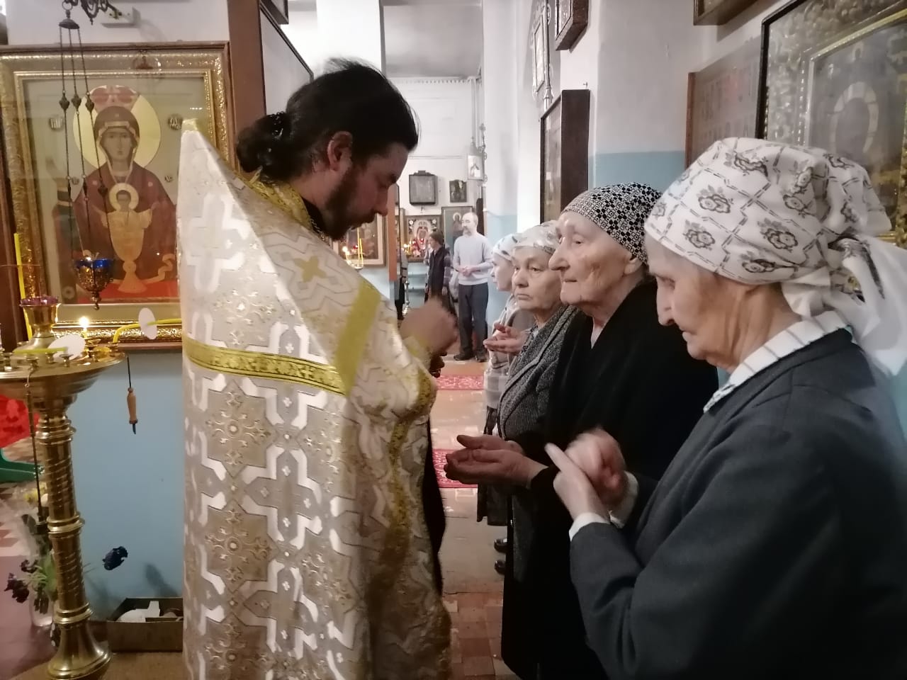 16 марта 2023 года в Казанском соборе города Людиново клирик собора иерей Алексий Сначёв в сослужении благочинного Жиздринского округа, настоятеля Покровского храма города Жиздры иерея Алексия Ефименкова, настоятеля храм в честь святых мучеников Флора и Лавра в селе Зикеево Жиздринского района иеромонаха Сергия (Тимофеева), настоятеля храма в честь преподобного Сергия Радонежского в селе Улемец Жиздринского района иерея Николая Безручкина, настоятеля храма святых апостолов Петра и Павла в селе Овсорок Жиздринского района иерея Алексия Скрипкина, клирика храма в честь святого праведного Лазаря города Людиново иерея Иоанна Майорова и диакона Казанского собора Людинова Андрея Соколова совершили таинство Соборования.