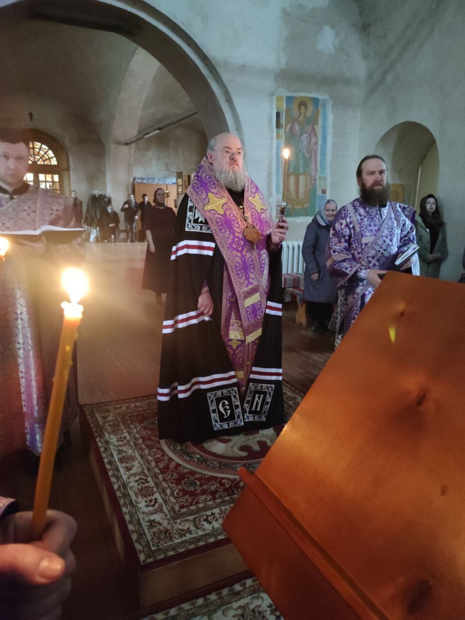29 марта епископ Козельский и Людиновский Никита совершил утреню с чтением великого покаянного канона преподобного Андрея Критского в Успенском кафедральном соборе города Козельска.