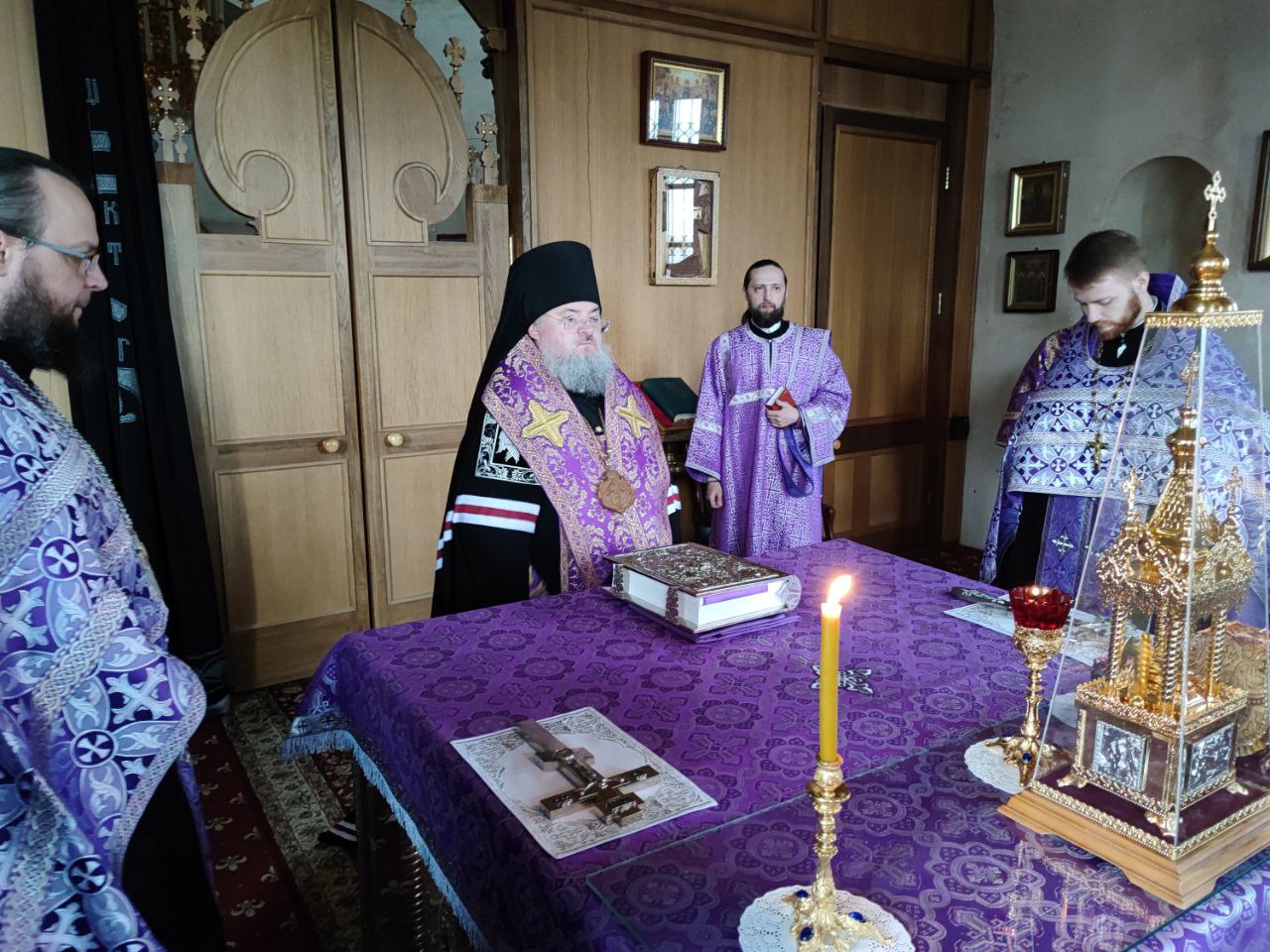 Архипастырю сослужили: иеромонах Паисий (Курмаз) – настоятель храма, иерей Елисей Тимофеев, иерей Евгений Чуркин, диакон Евгений Ковригин, диакон Дмитрий Лутков и диакон Дионисий Капустин.