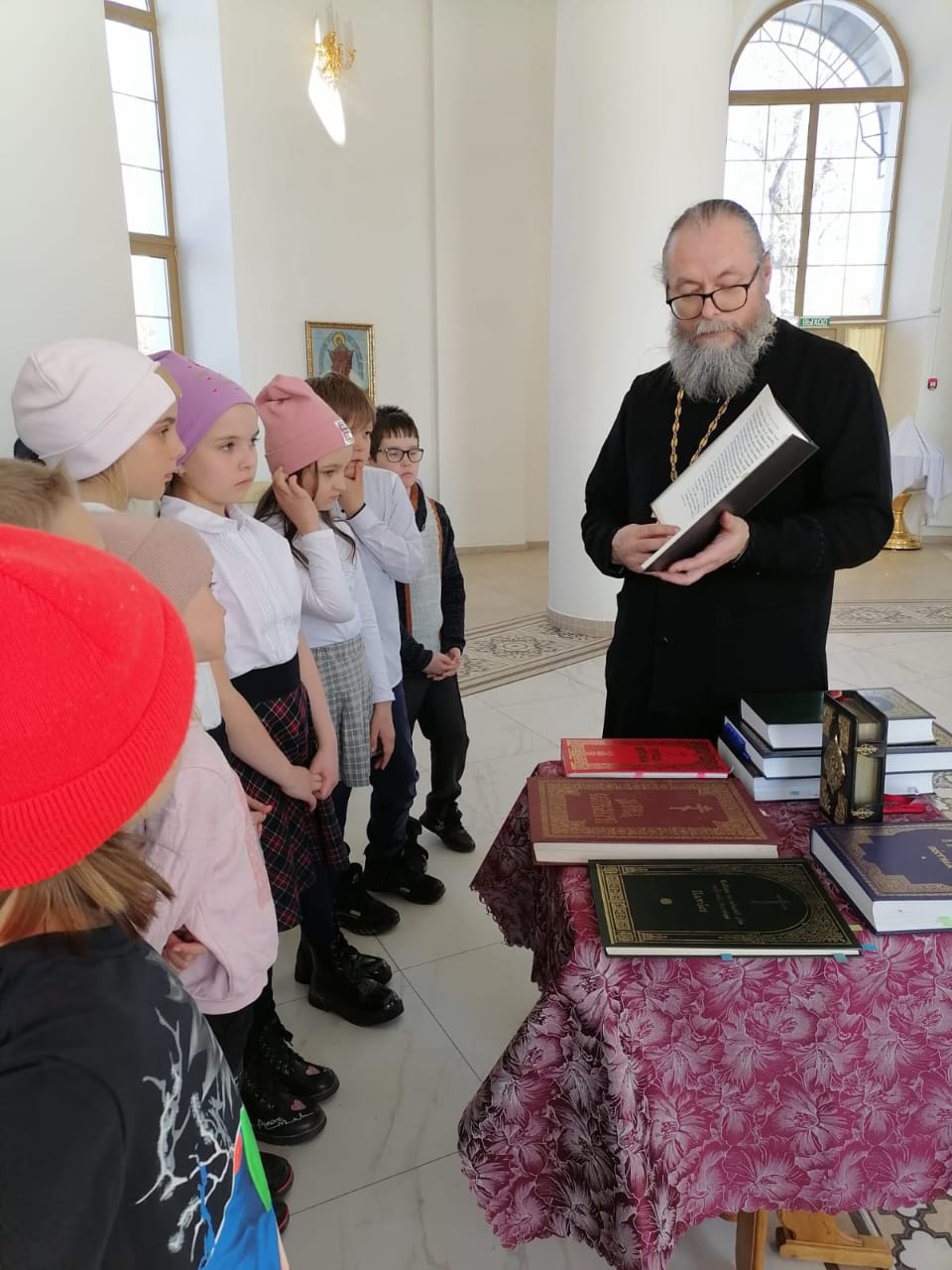 В рамках празднования Дня православной книги в образовательных учреждениях Думиничского района были организованы православные книжные выставки. Ребята познакомились с книгами, представленными на выставке, узнали из них много нового и интересного для себя. Сделали вывод, что православные книги – это те книги, которые настраивают человека на спасение души и показывают пути духовного совершенствования, которые учат милосердию, состраданию, любви к Богу и ближним. В отделе образования администрации МР «Думиничский район» учителя методического объединения учителей к ОРКСЭ совместно с настоятелем храма Космы и Дамиана протоиереем Иоанном Староста организовали выставку «День православной книги» для всех учителей района. Кроме того учащиеся Чернышенской и Хотьковской школ посетили свои храмы, где знакомились с православной книгой и церковнославянским языком.