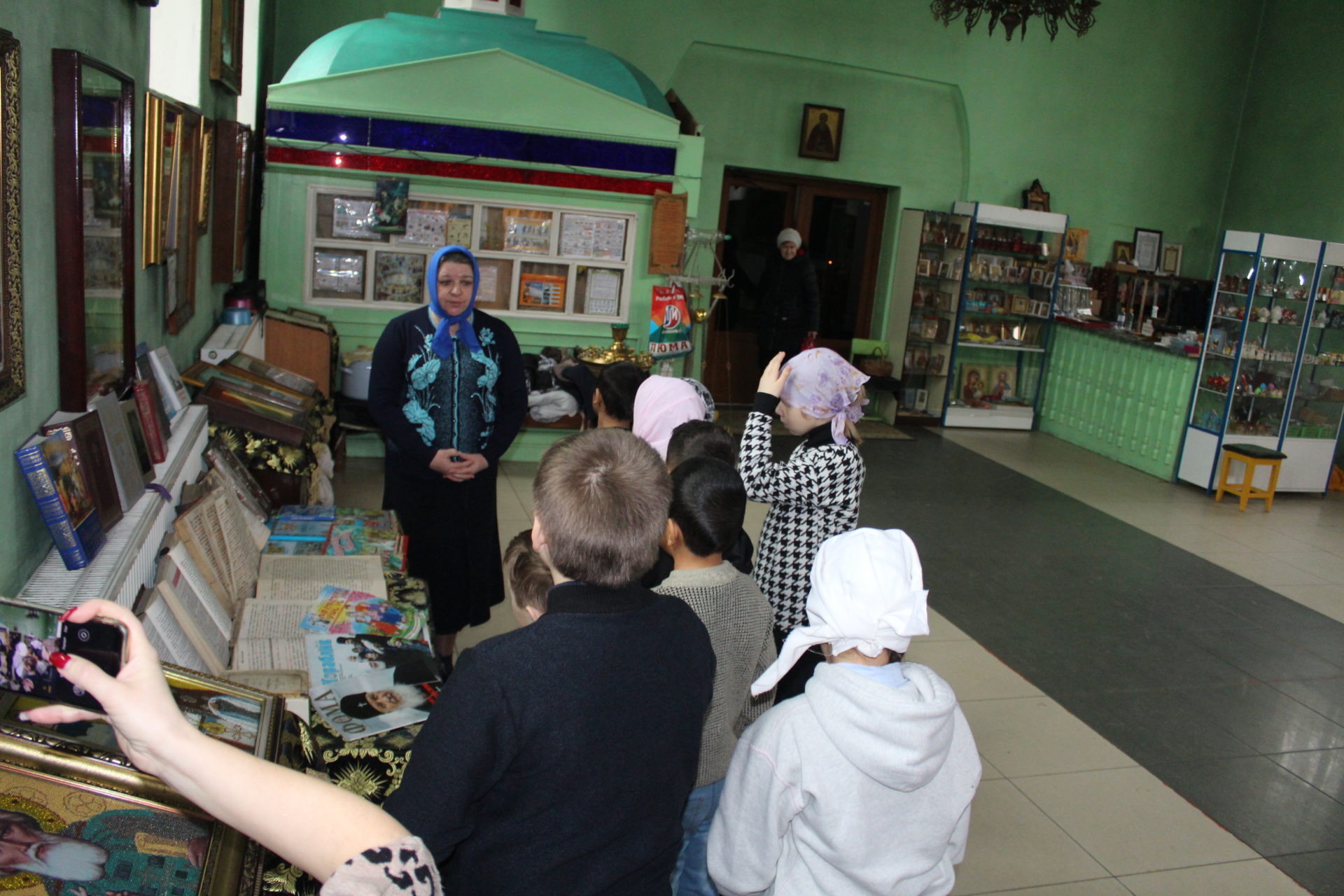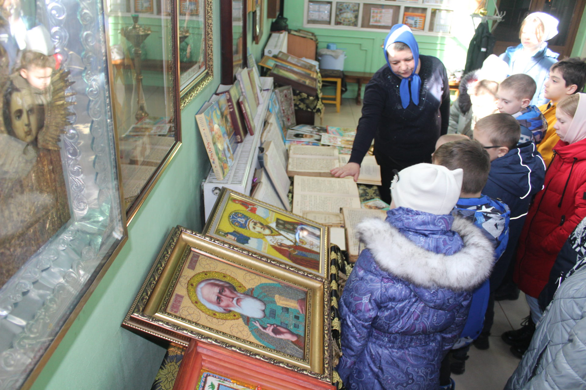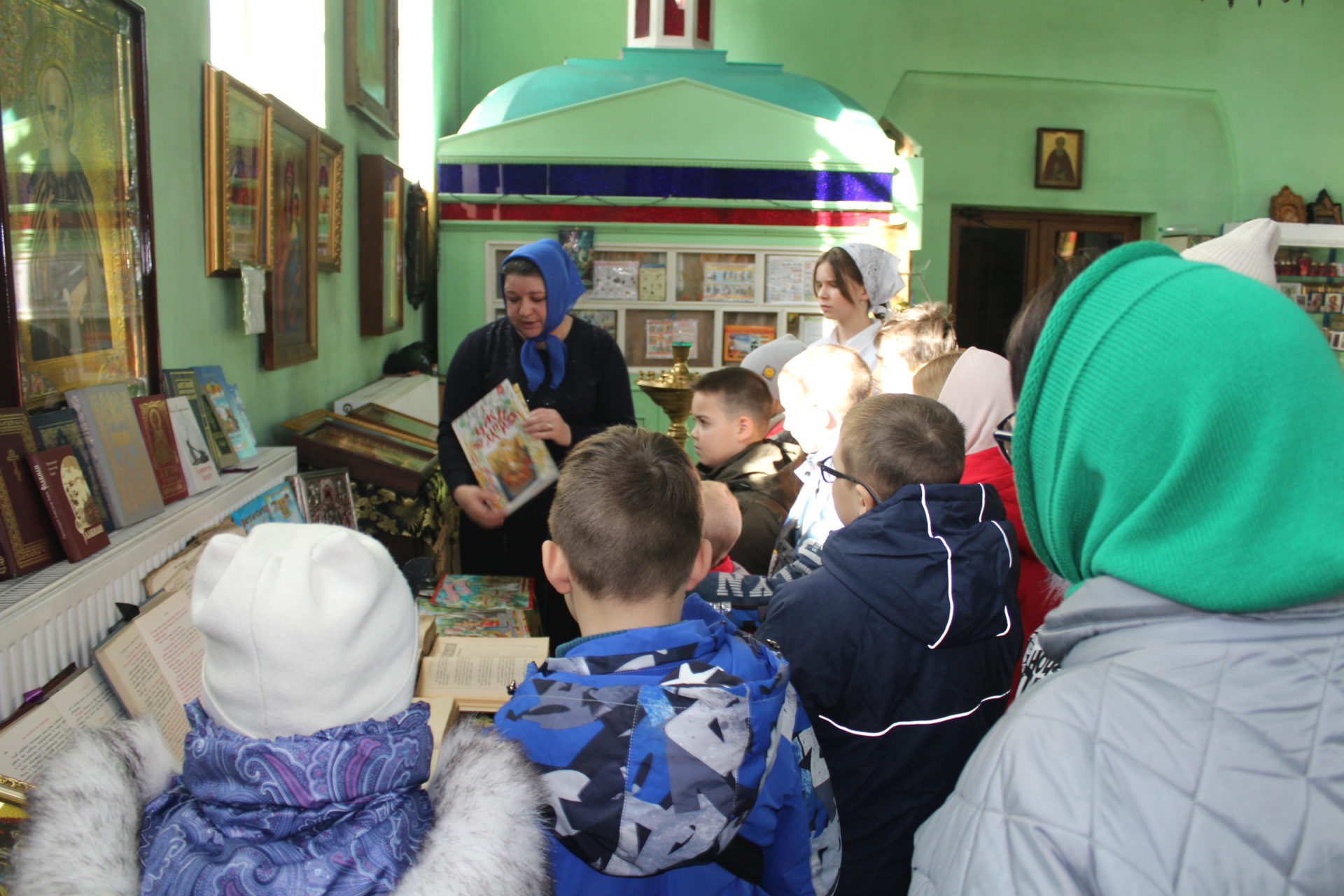 Для учащихся начальных классов  » МКОУ «Игнатовская основная школа  имени  И. Ф. Акимочкина» , учащихся 3 классов » МКОУ «Средняя школа № 10 им. И.Я. Чугунова», учащихся  7 классов » МКОУ Средняя Общеобразовательная школа № 4 «,были проведены экскурсии в храме. Детям было рассказано о том, когда Священным Синодом было установлено празднование Дня православной книги, и какому событию он был приурочен. Об истории книги, о первых книгопечатниках. Первые книги были рукописными, богато украшенными и очень дорогими. Затем рассказ перешел о первопечатнике Иване Федорове, первая точно датированная печатная книга на русском языке увидела свет 14 марта 1564 года. Она называлась “Деяния и Послания Апостолов”, хотя чаще говорят просто “Апостол”. Ребята познакомились с такими книгами, как Евангелие, Минея, Псалтырь, Требник, Служебник, Молитвослов, книгами из современной православной литературы. Ребята познакомились с такими книгами, как Евангелие, Минея, Псалтырь, Требник, Служебник, Молитвослов, книгами из современной православной литературы. Православные детские журналы, календари, православная Азбука, православный Букварь. Православная книга играет большую роль в формировании нашей духовности, о Богослужебных книгах, о книгах современных авторов. Православная книга играет большую роль в формировании нашей духовности, о Богослужебных книгах, о книгах современных авторов. Детям было предложено прочитать несколько предложений на славянском языке. Так же Татьяна Ивановна Клячина рассказала ребятам как устроен храм, как устроен иконостас. Затем рассказала учащимся о Недели Крестопоклонной, учащиеся приложились к Кресту, поставили свечи.