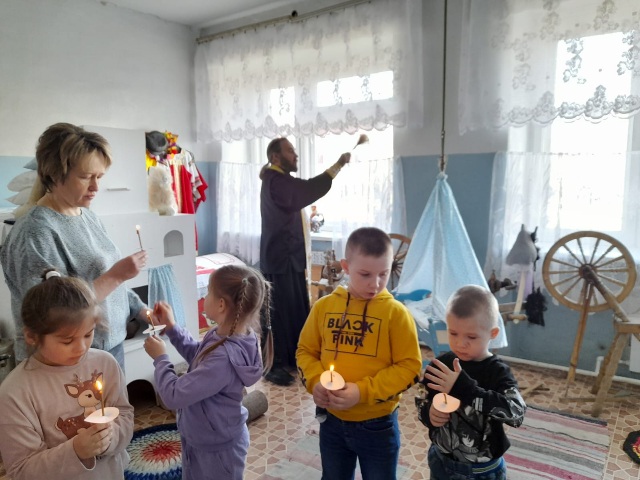 7 апреля, в праздник Благовещения Пресвятой Богородицы протоиерей Максим Садовников, настоятель храма Воскресения Христова в селе Ульяново посетил Детский Сад «Солнышко». В детском учреждении подготовили тематическую комнату: «Русская изба». В этой комнате ребятам будут рассказывать о русских традициях, учить добру и нравственности. Священник освятил комнату, помолившись с детками об их общем доме — «детском саде». На мероприятии присутствовали воспитатель группы Людмила Сергеевна Антошина, старший воспитатель Ирина Ивановна Потапова и заведующая «Детским Садом» Мария Владимировна Бабаянц.
