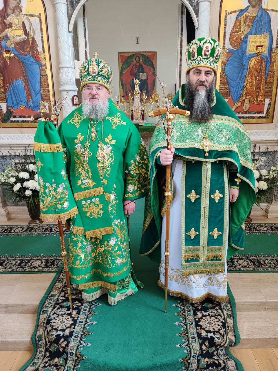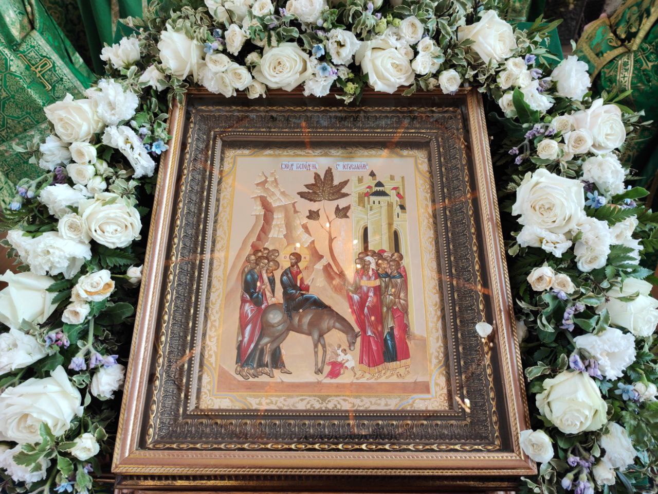 По окончании литургии в центре храма архипастырь возглавил чин славления празднику и окропил вербы верующих святой водой. Затем епископ Никита обратился к богомольцам со словом проповеди.