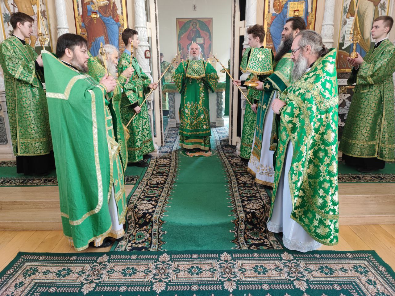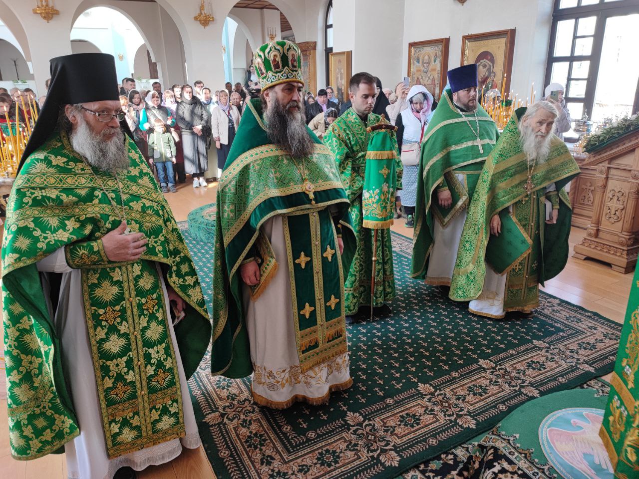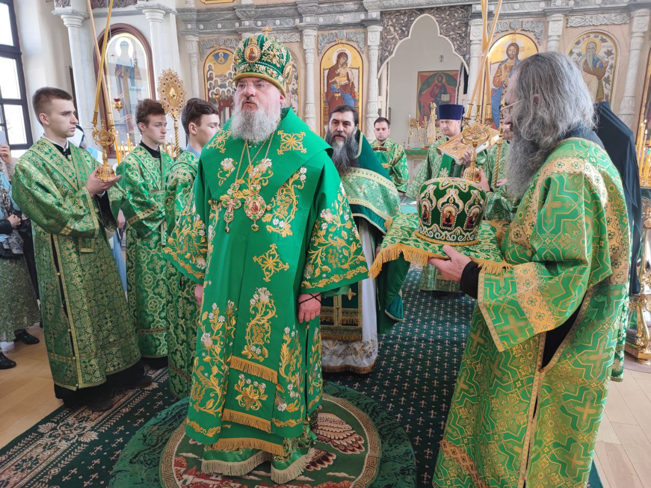 За богослужением Преосвященнейшему владыке сослужили: наместник монастыря игумен Михаил (Семенов), схиархимандрит Илий (Ноздрин), протоиерей Антоний Хатунцев, иеросхимонах Кукша (Никитин), иеромонах Ефрем (Ястребов), диакон Евгений Ковригин, схииеродиакон Захария (Павленко), иеродиакон Лука (Старостин) и диакон Георгий Грачев.