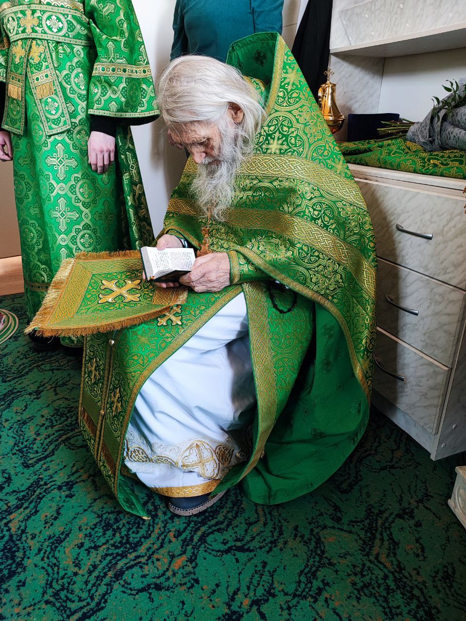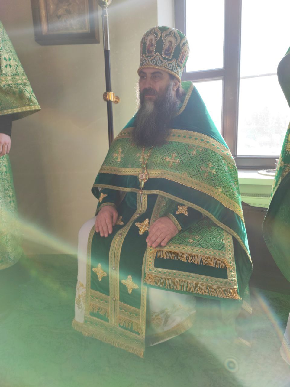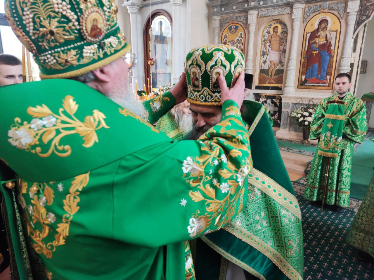 За богослужением Преосвященнейшему владыке сослужили: наместник монастыря игумен Михаил (Семенов), схиархимандрит Илий (Ноздрин), протоиерей Антоний Хатунцев, иеросхимонах Кукша (Никитин), иеромонах Ефрем (Ястребов), диакон Евгений Ковригин, схииеродиакон Захария (Павленко), иеродиакон Лука (Старостин) и диакон Георгий Грачев.