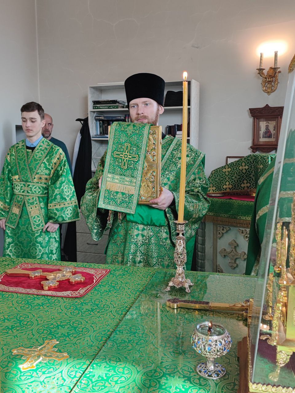За богослужением были вознесены молитвы о Святой Руси. По благословению Патриарха Кирилла эти сугубые молитвы совершается во всех храмах Русской Православной Церкви.