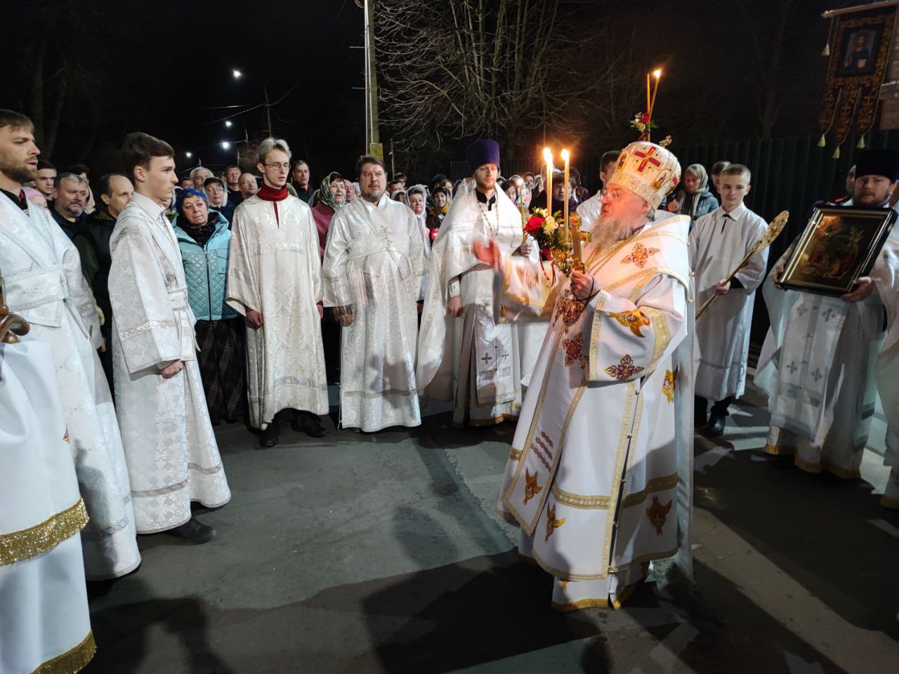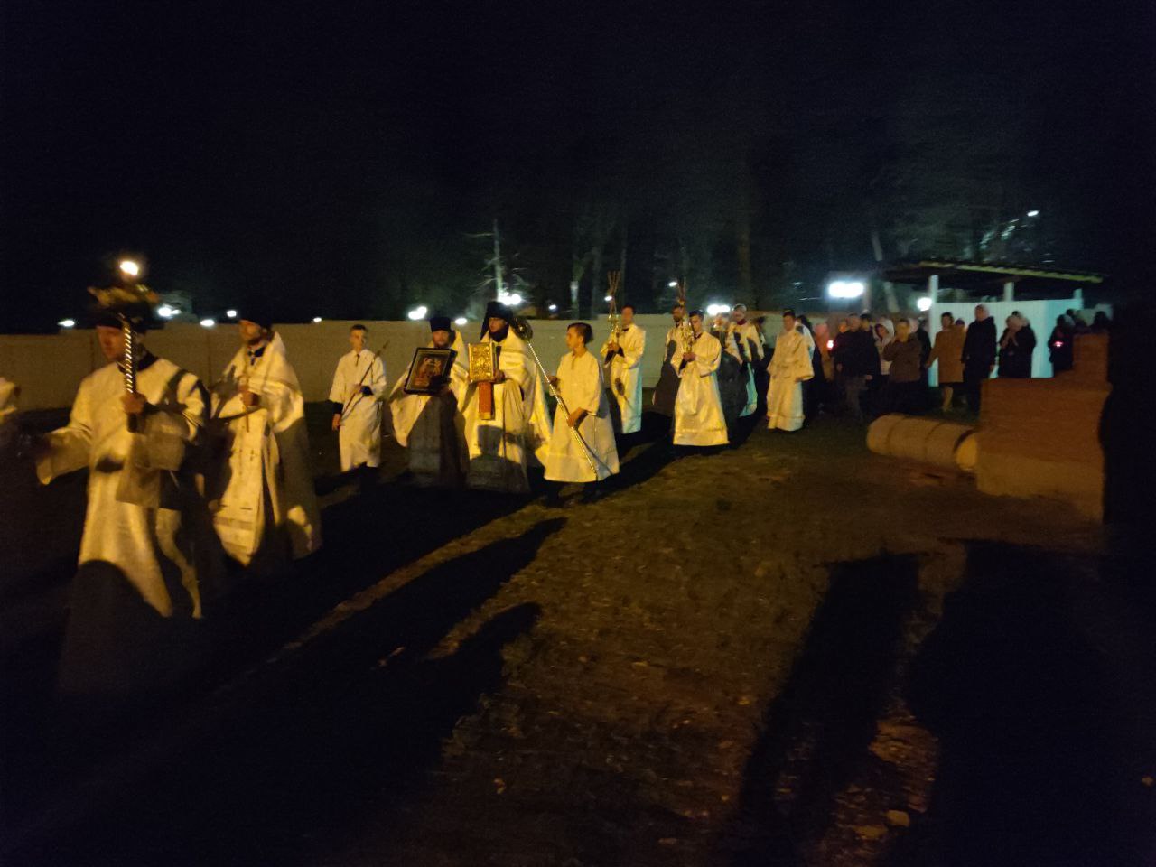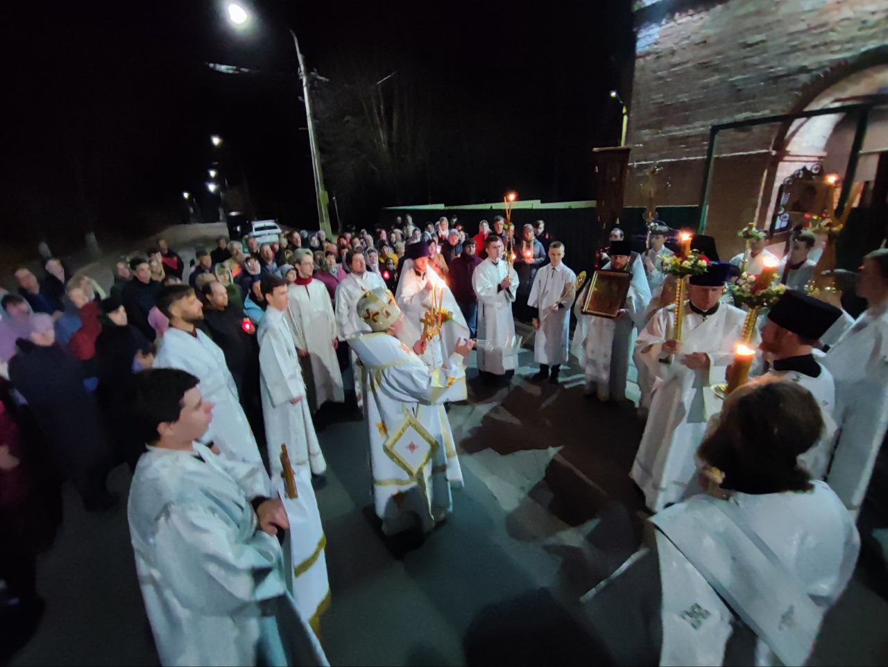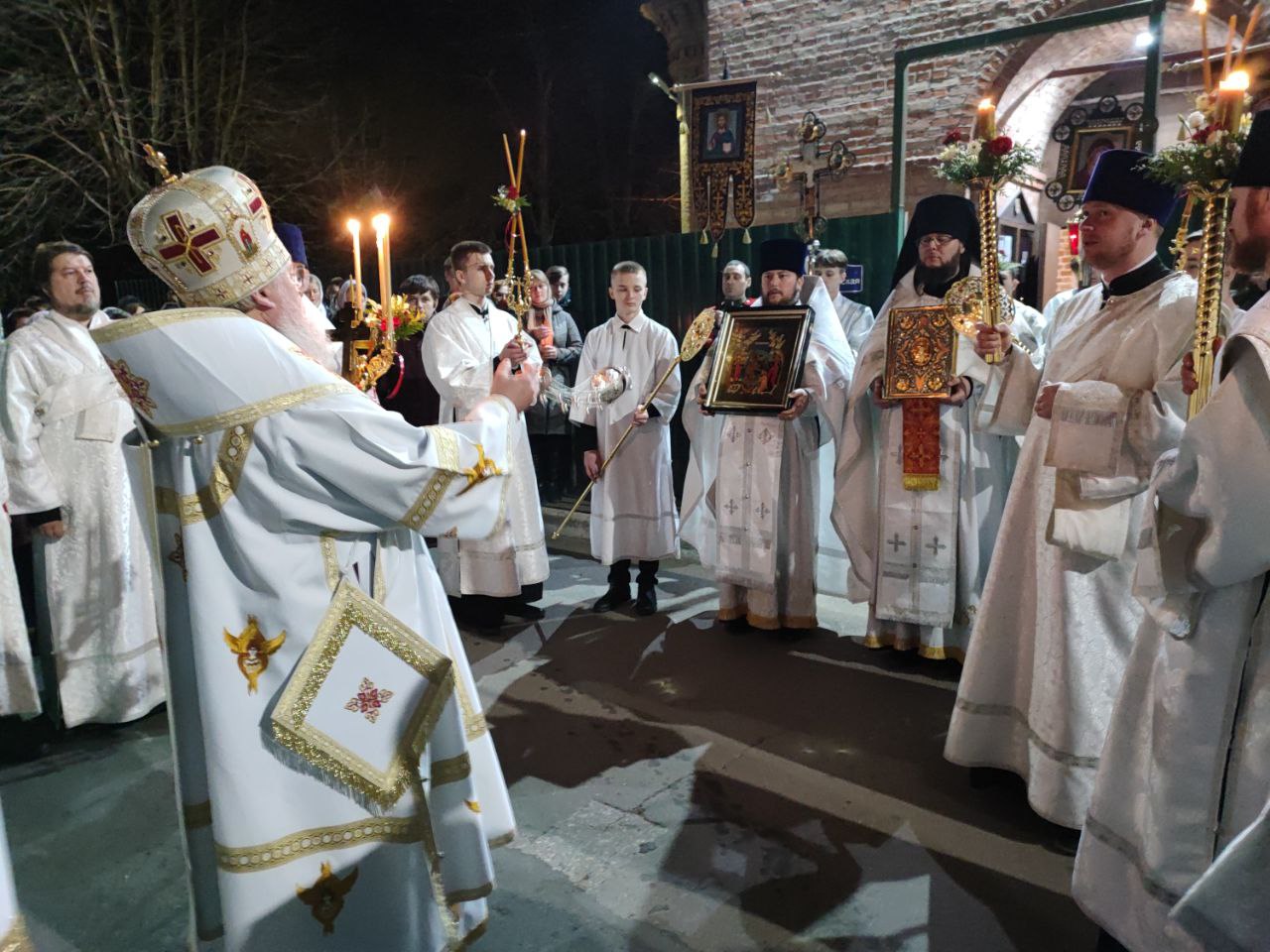 До начала богослужения были прочитаны Деяния святых апостолов, а затем протоиерей Антоний Хатунцев совершил пасхальную полунощницу на которой занес святую Плащаницу Спасителя в алтарь.
