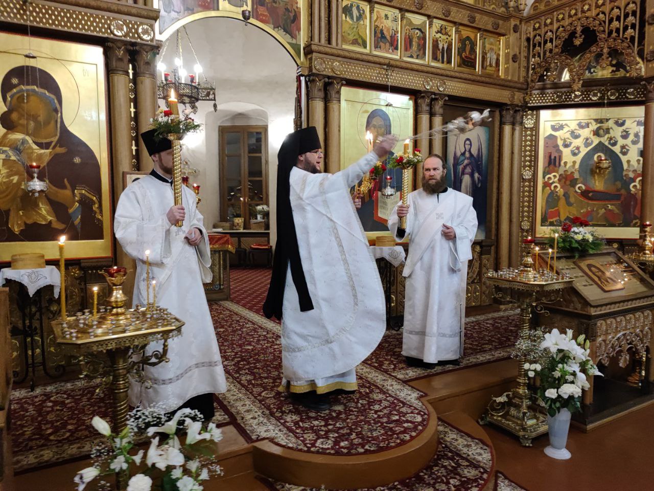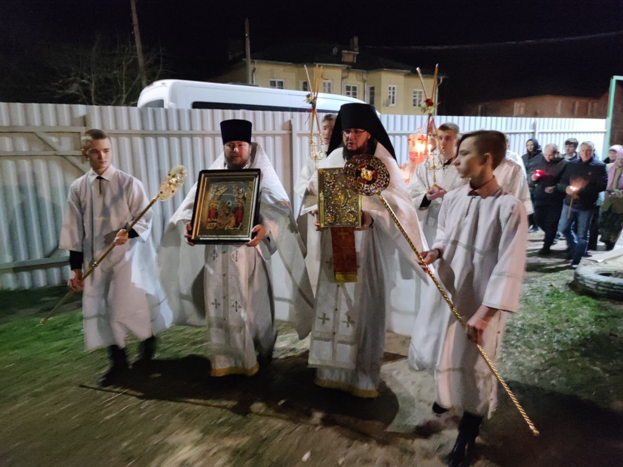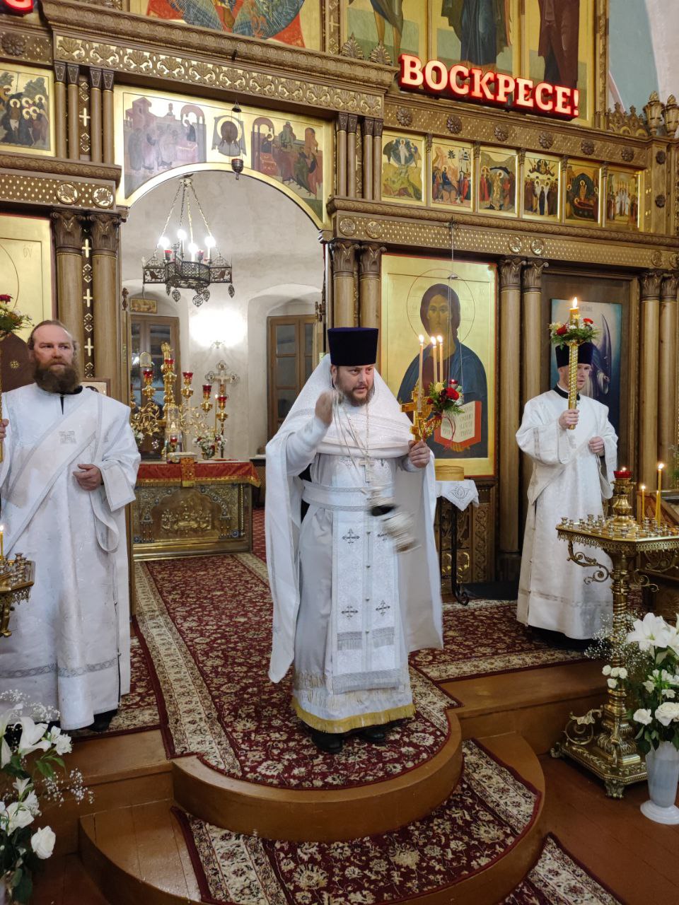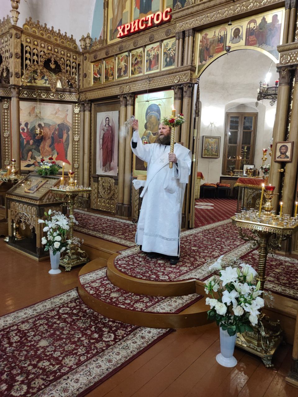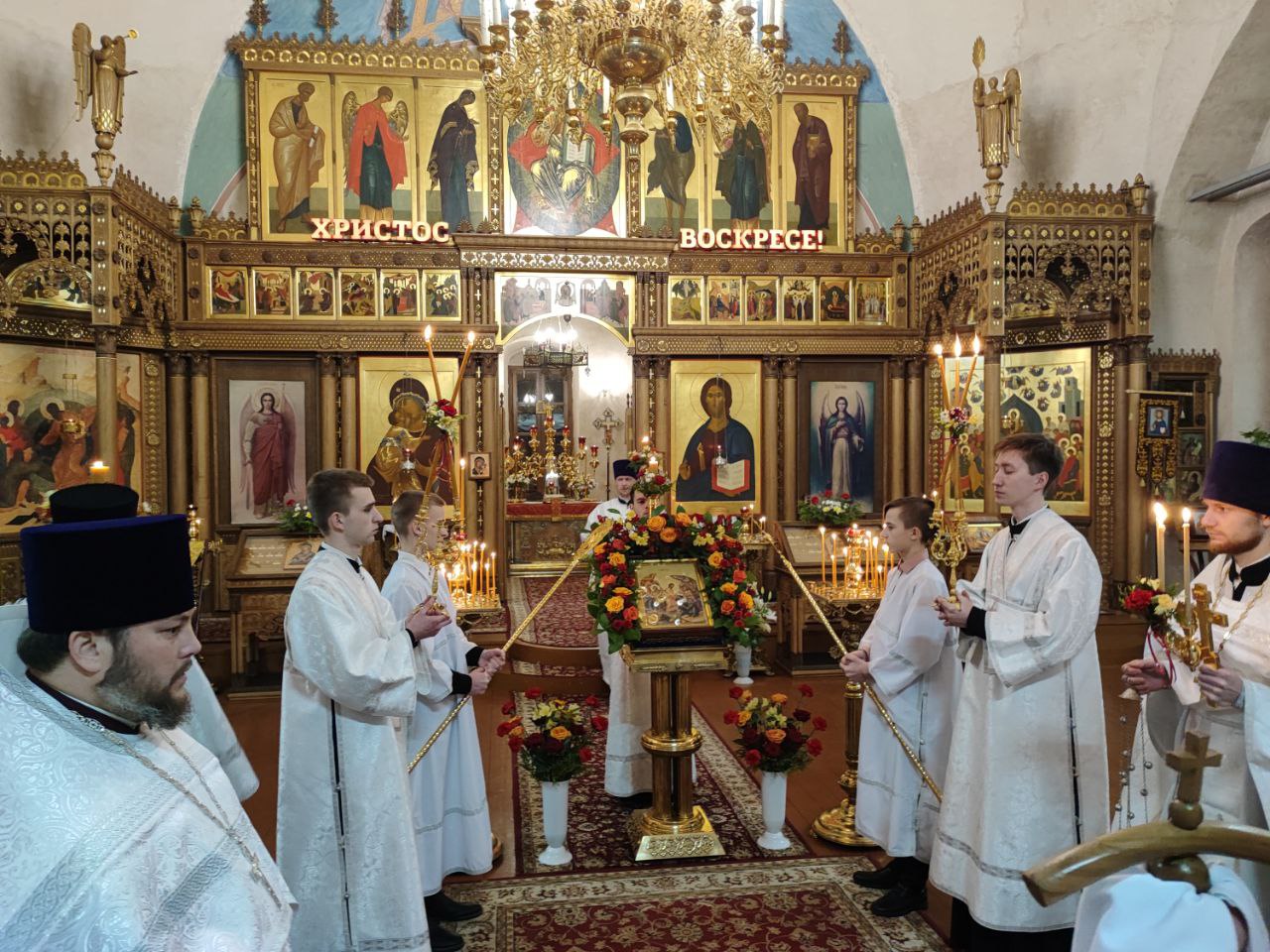 До начала богослужения были прочитаны Деяния святых апостолов, а затем протоиерей Антоний Хатунцев совершил пасхальную полунощницу на которой занес святую Плащаницу Спасителя в алтарь.