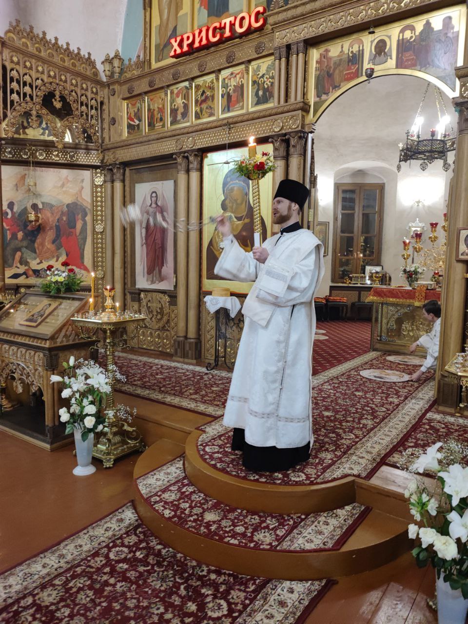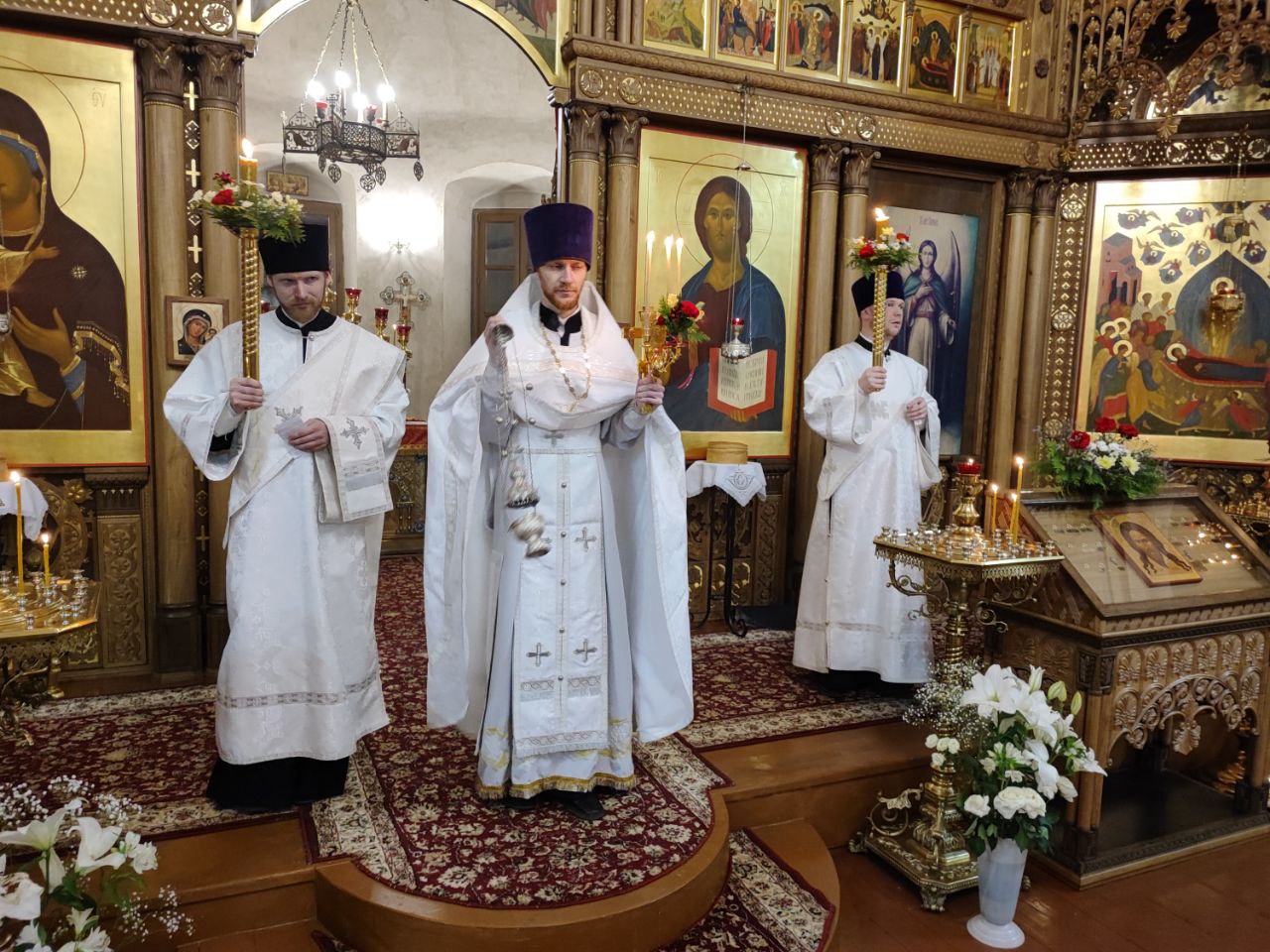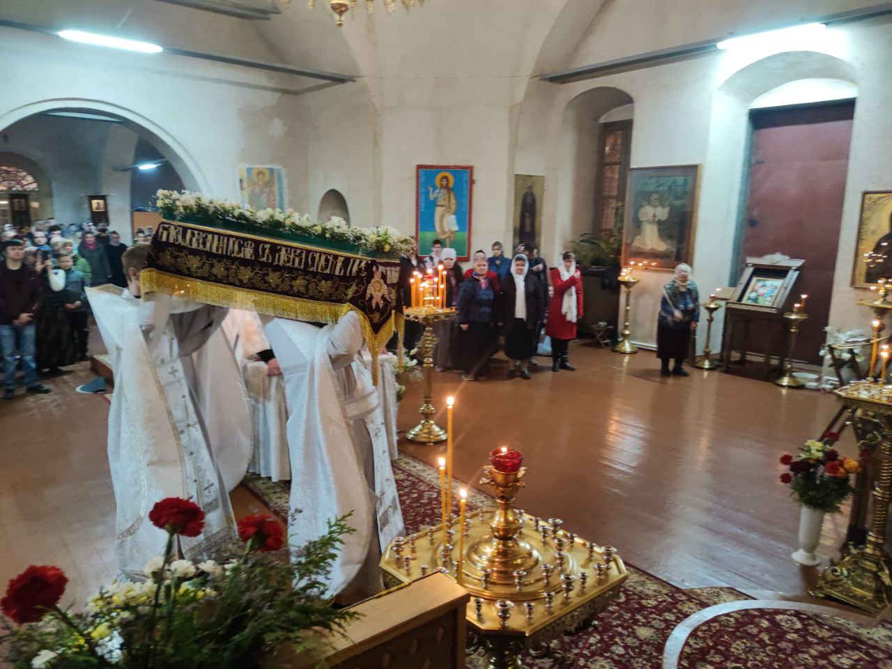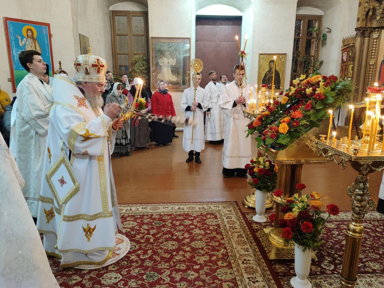 До начала богослужения были прочитаны Деяния святых апостолов, а затем протоиерей Антоний Хатунцев совершил пасхальную полунощницу на которой занес святую Плащаницу Спасителя в алтарь.