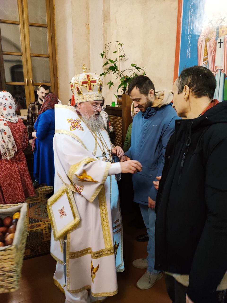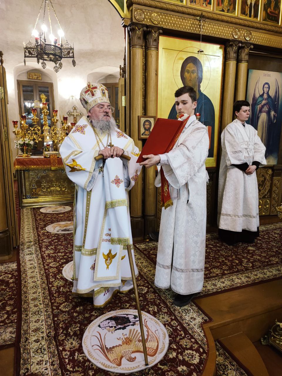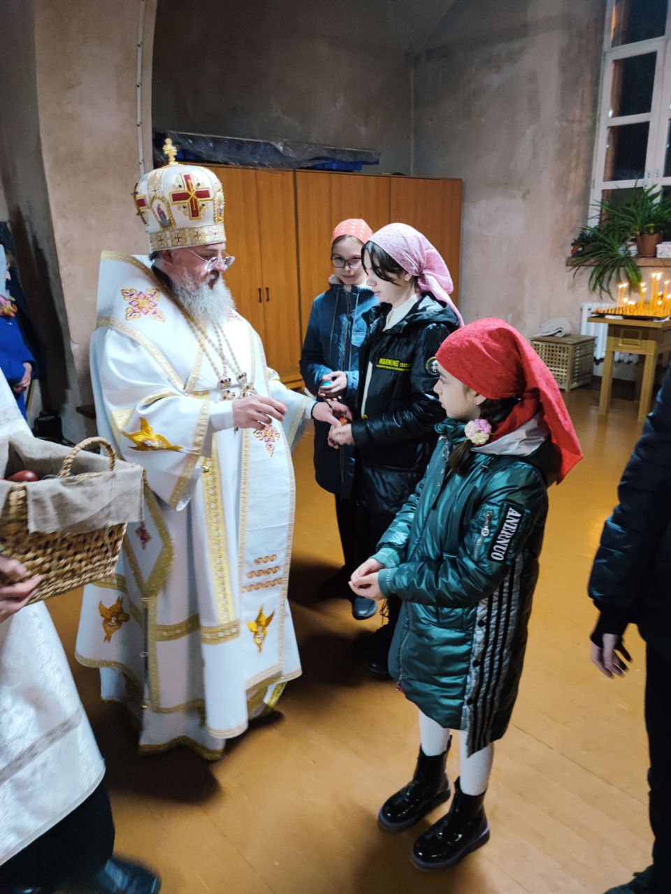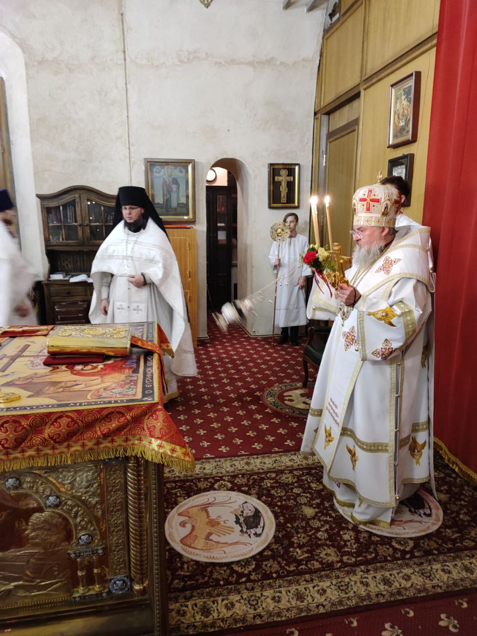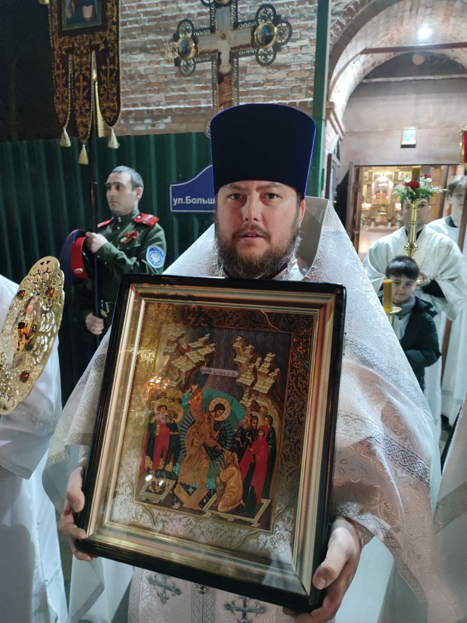 До начала богослужения были прочитаны Деяния святых апостолов, а затем протоиерей Антоний Хатунцев совершил пасхальную полунощницу на которой занес святую Плащаницу Спасителя в алтарь.