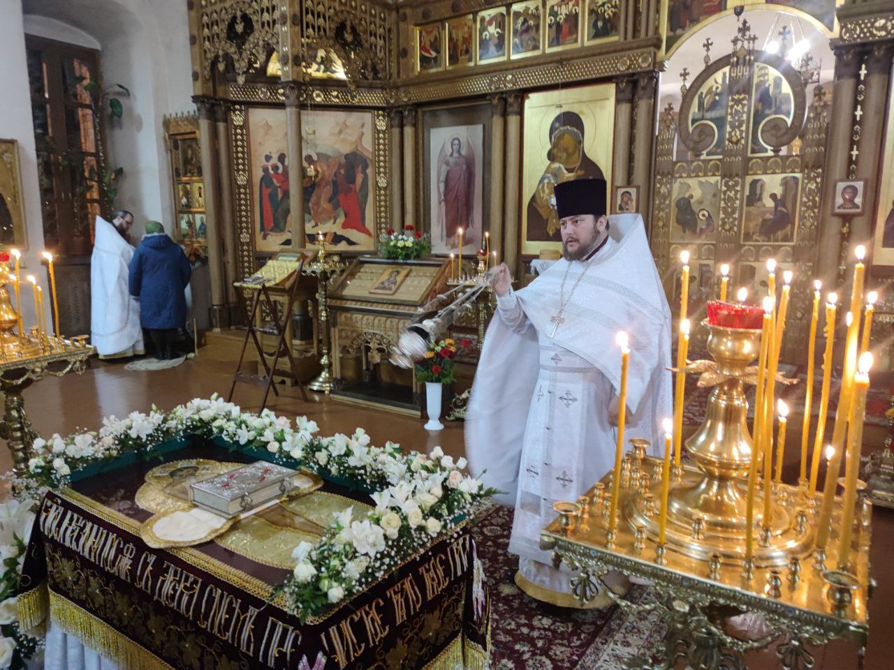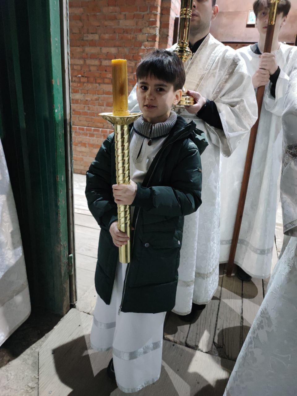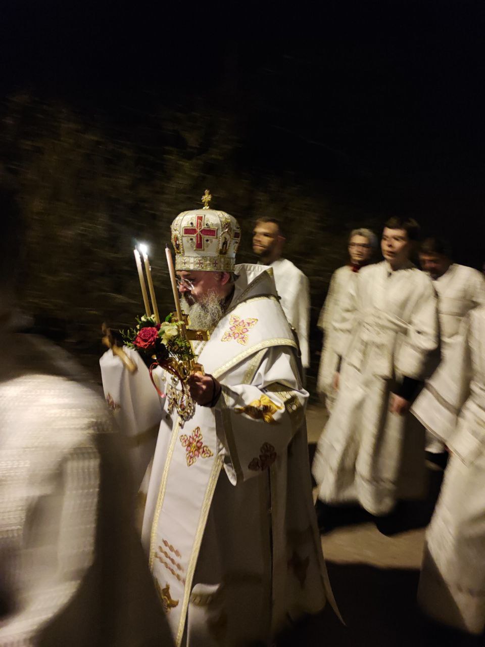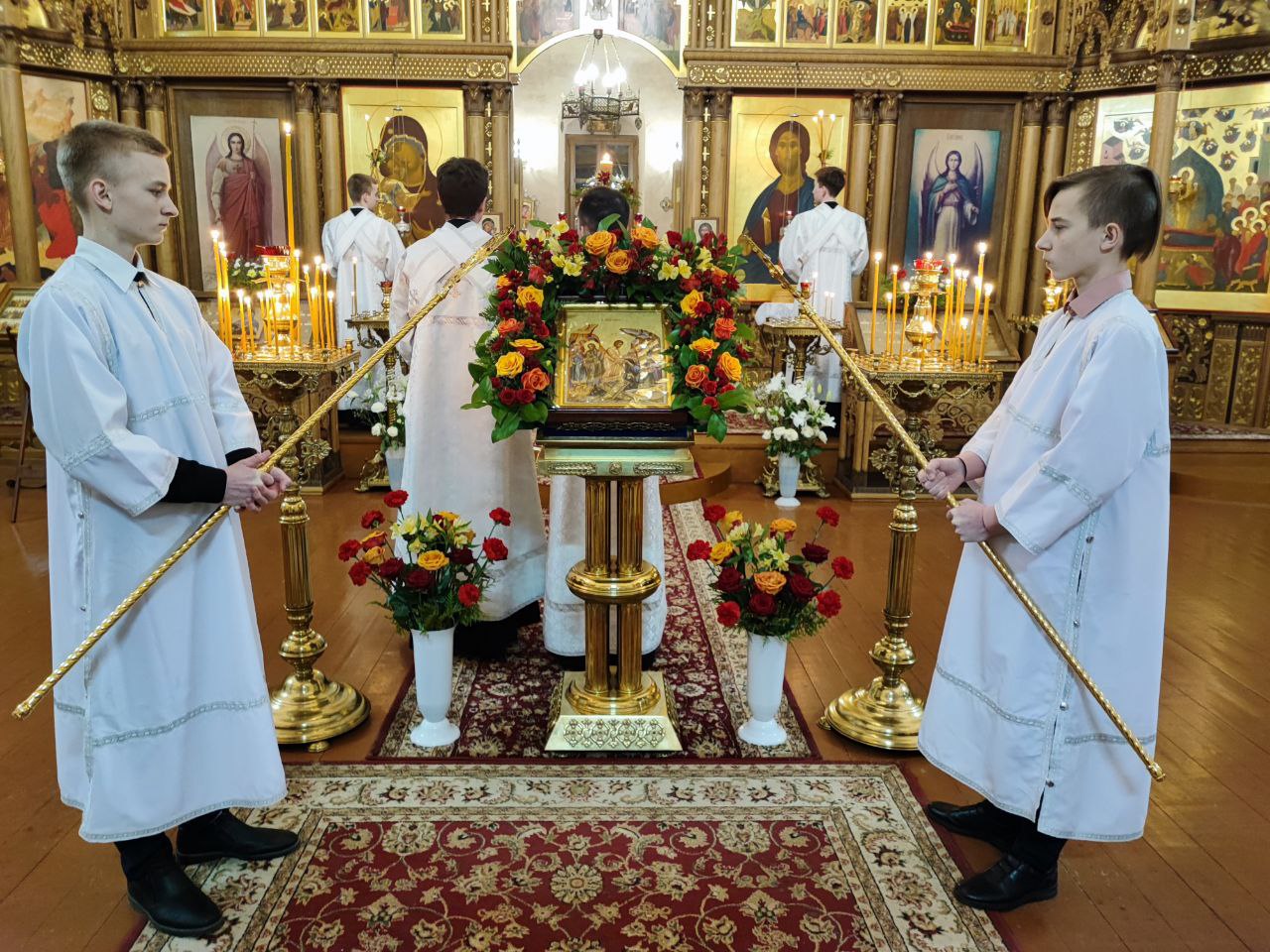 До начала богослужения были прочитаны Деяния святых апостолов, а затем протоиерей Антоний Хатунцев совершил пасхальную полунощницу на которой занес святую Плащаницу Спасителя в алтарь.