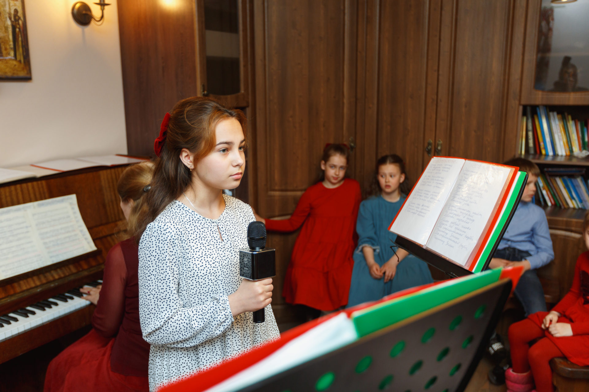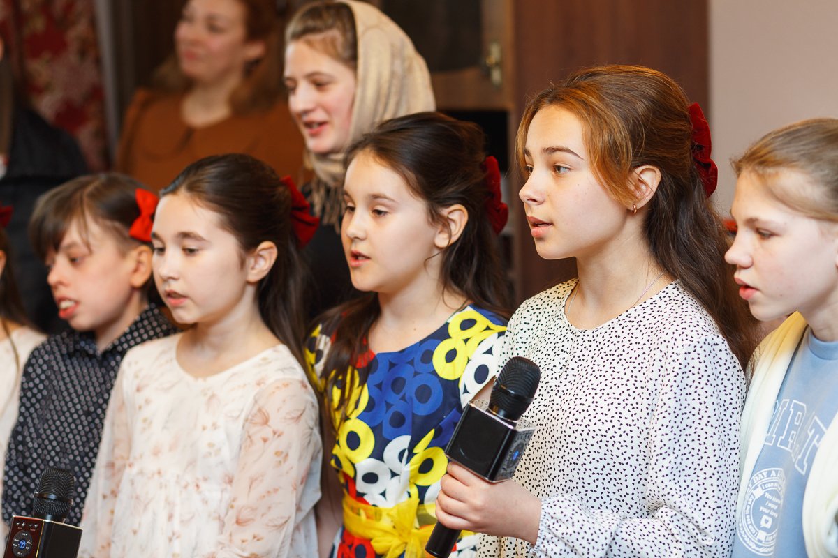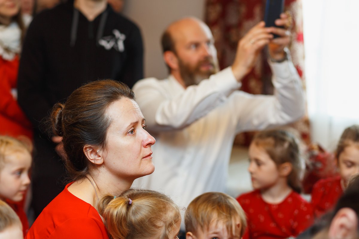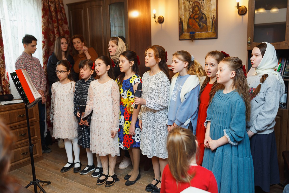 Зрителями были, конечно, родители и прихожане села, как всегда, на детских выступления не хватает места всем желающим посмотреть, некоторые наблюдали стоя из коридорчика. Трогательно наблюдать за детским исполнением духовных песен, это всегда заставляет взрослых задуматься, а иногда и всплакнуть. Ребята пели хором, дуэтами и сольно.