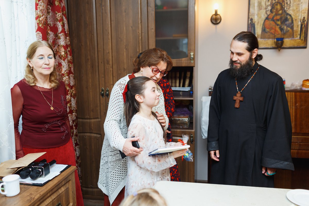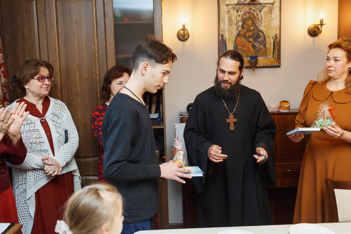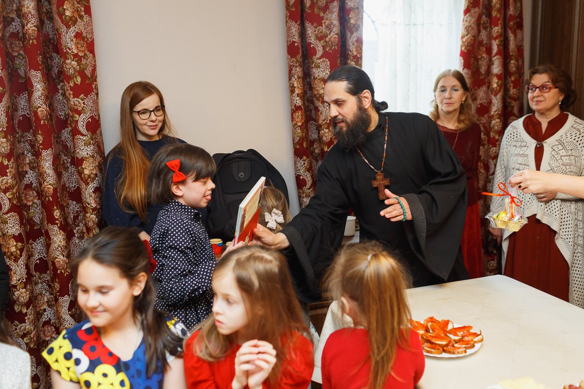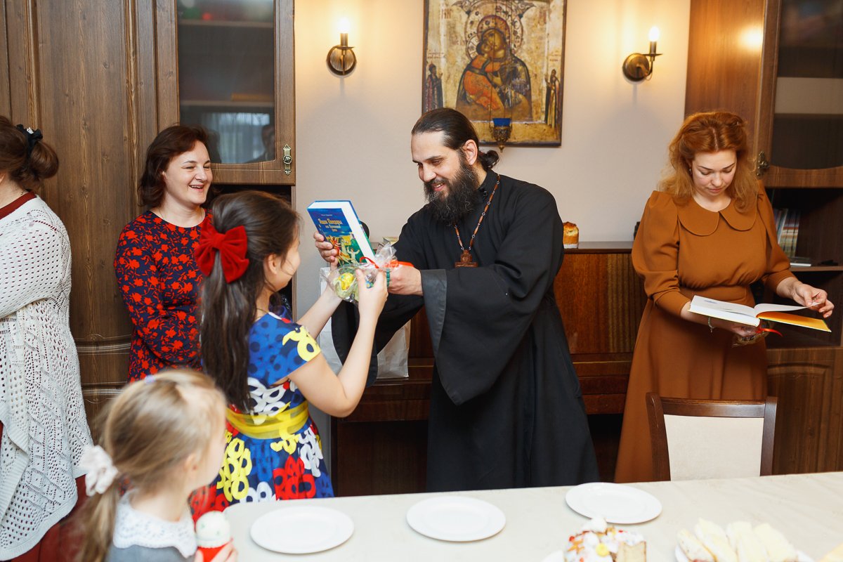 По окончании мероприятия настоятель иерей Максим Изопов вручал участникам концерта книги и сладкий приз, а остальным деткам присутствующем на празднике сладкие призы. А преподавателей, родителей и благотворителей поблагодарил за организацию.
