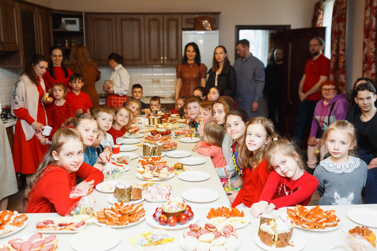Родители и прихожане готовили для детей и всех гостей мероприятия стол с разными угощениями. Все дружно разговлялись!