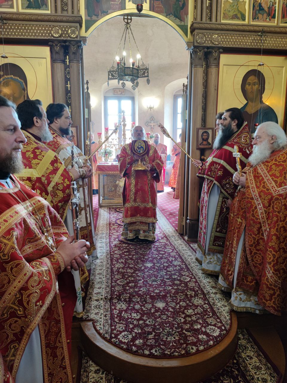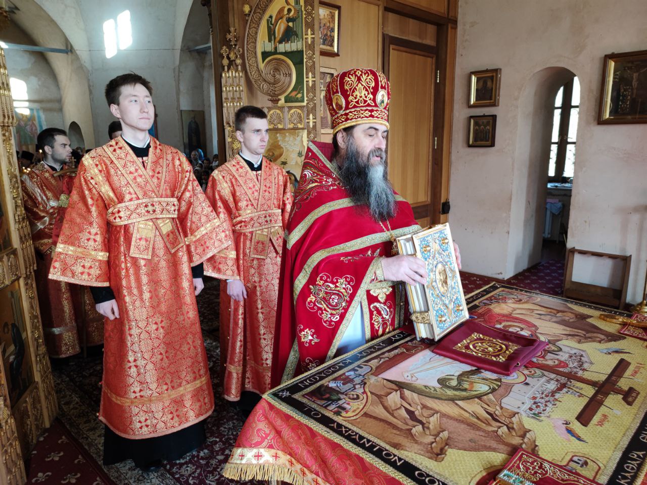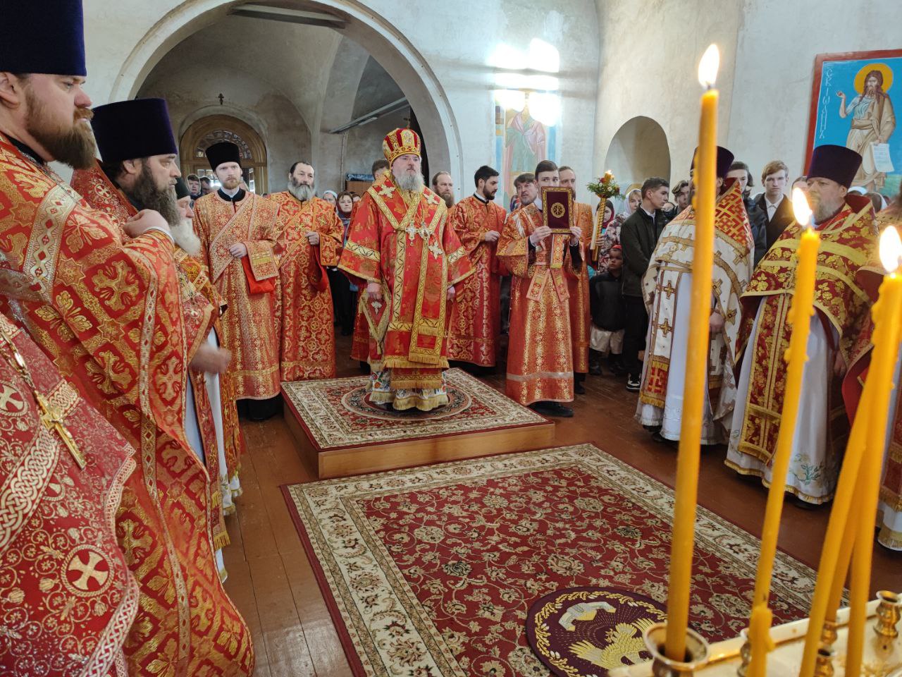 Богослужение возглавил Управляющий епархией епископ Козельский и Людиновский Никита.