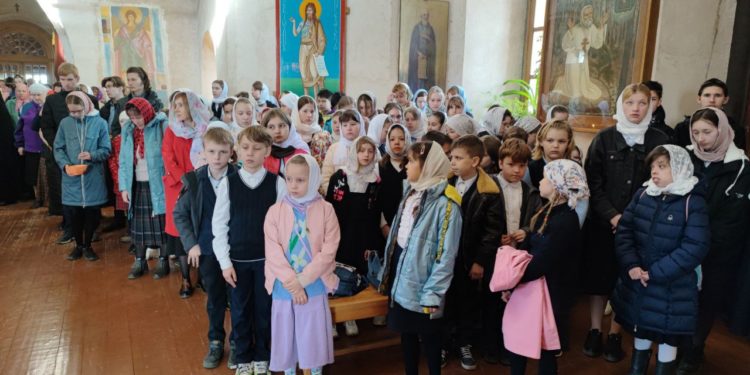 За богослужением, по благословению Главы Калужской митрополии  митрополита Калужского и Боровского Климента  молились настоятельницы нескольких женских монастырей Калужской епархии: настоятельница Казанского девичьего монастыря в городе Калуге игумения Ангелина (Петрова) с сестрами, настоятельница женского монастыря в честь Калужской иконы Божией Матери игуменья Параскева (Ляхова) с сестрами, настоятельница Свято-Успенского Лихвинского женского монастыря игуменья Михаила (Осипова) с сестрами, а также учащиеся Козельской православной гимназии  и многочисленные прихожане храмов епархии.