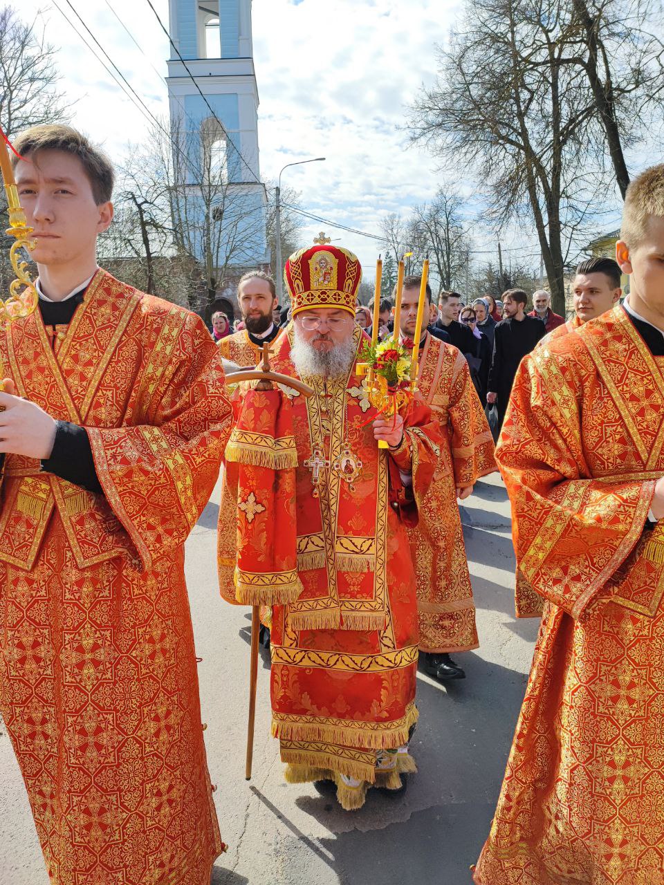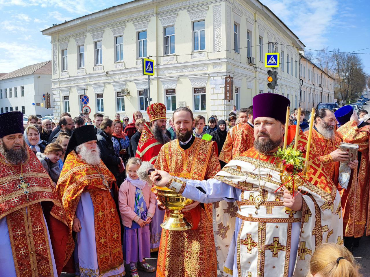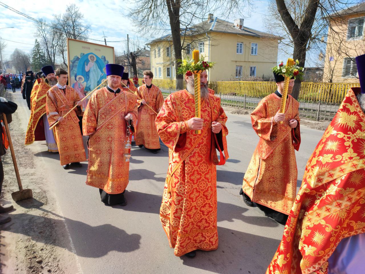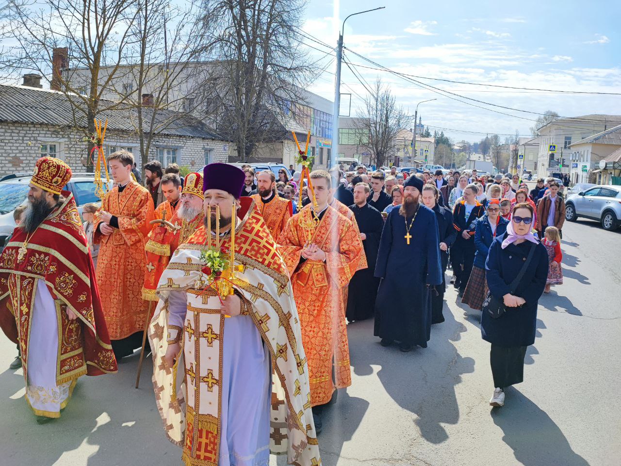 18 апреля 2023 года, вторник Светлой седмицы, по завершении Божественной литургии в Успенском кафедральном соборе города Козельска, которую совершил епископ Козельский и Людиновский Никита в сослужении клириков епархии, состоялся традиционный пасхальный крестный ход по улицам города Козельска от Успенского собора до храма Благовещения Пресвятой Богородицы.