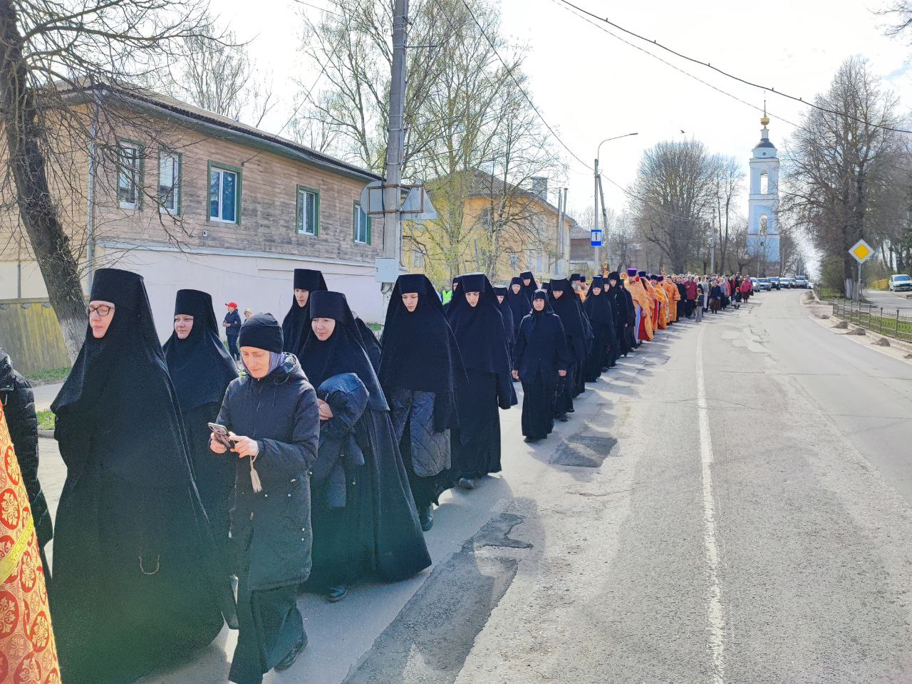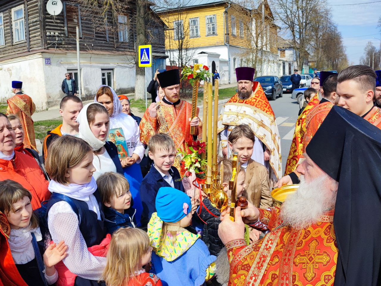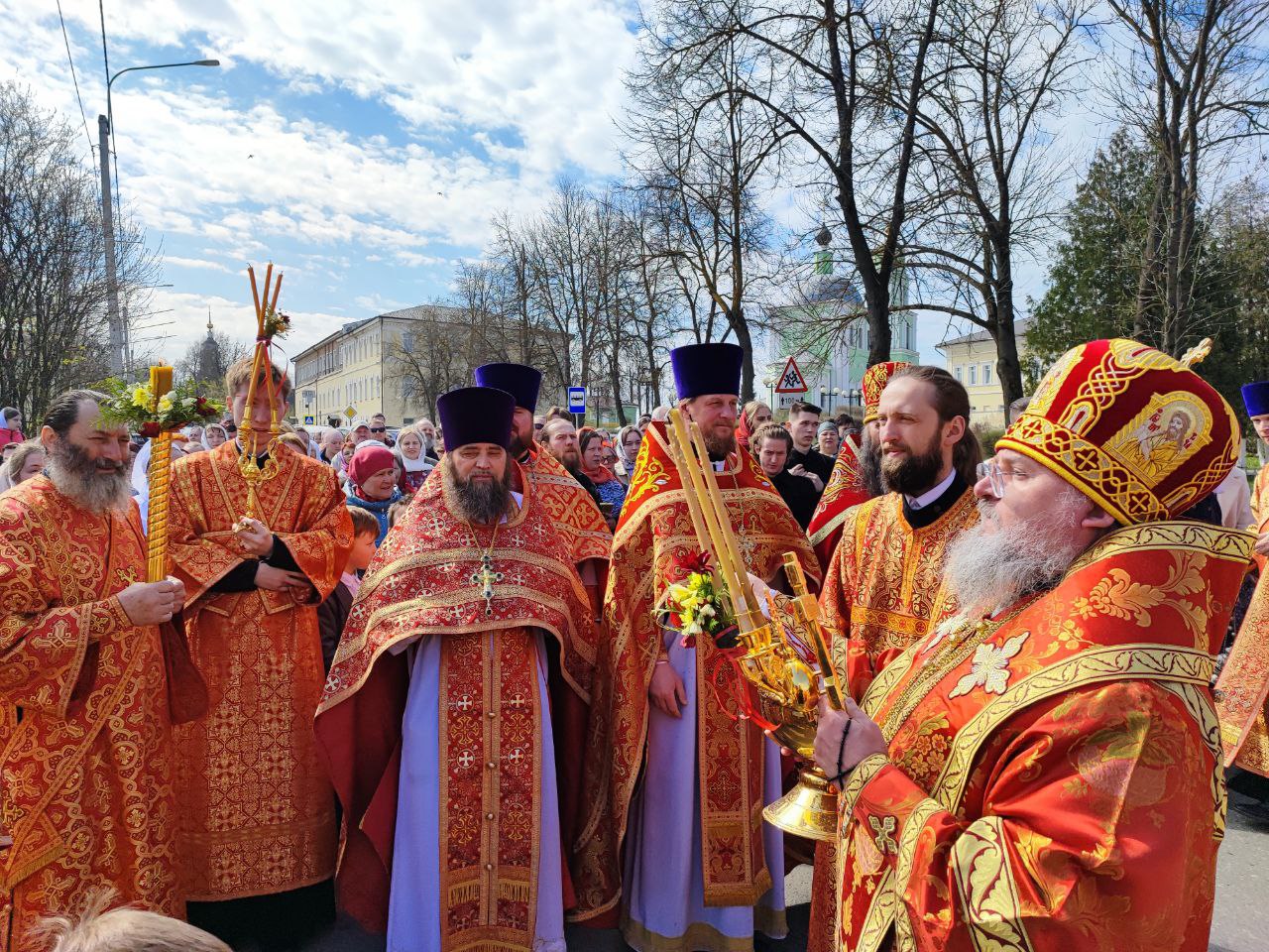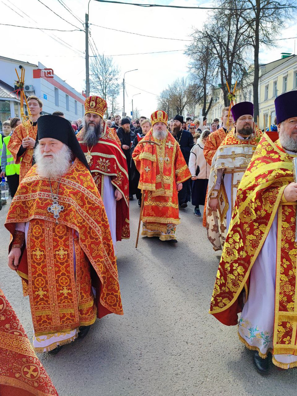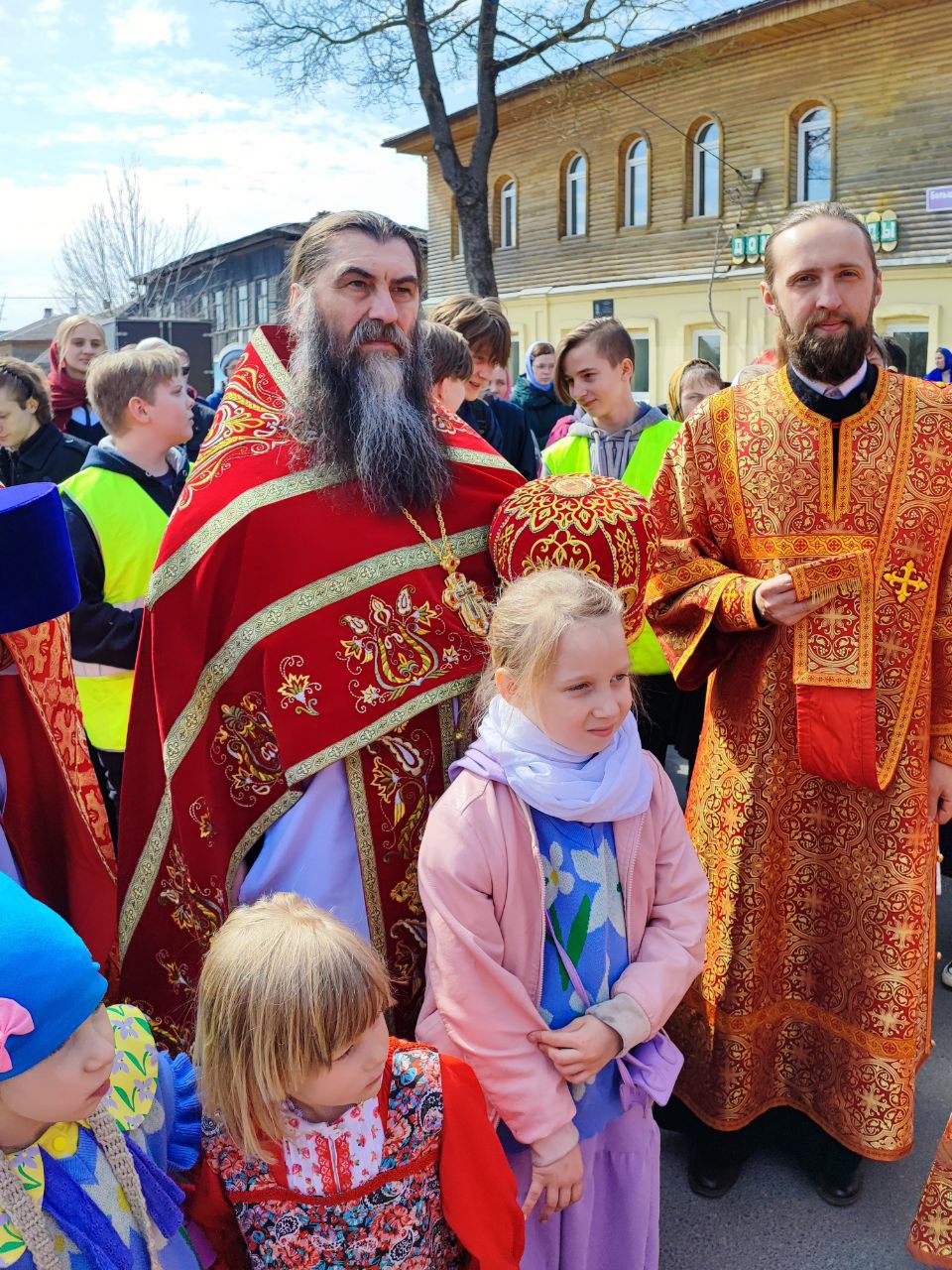 18 апреля 2023 года, вторник Светлой седмицы, по завершении Божественной литургии в Успенском кафедральном соборе города Козельска, которую совершил епископ Козельский и Людиновский Никита в сослужении клириков епархии, состоялся традиционный пасхальный крестный ход по улицам города Козельска от Успенского собора до храма Благовещения Пресвятой Богородицы.