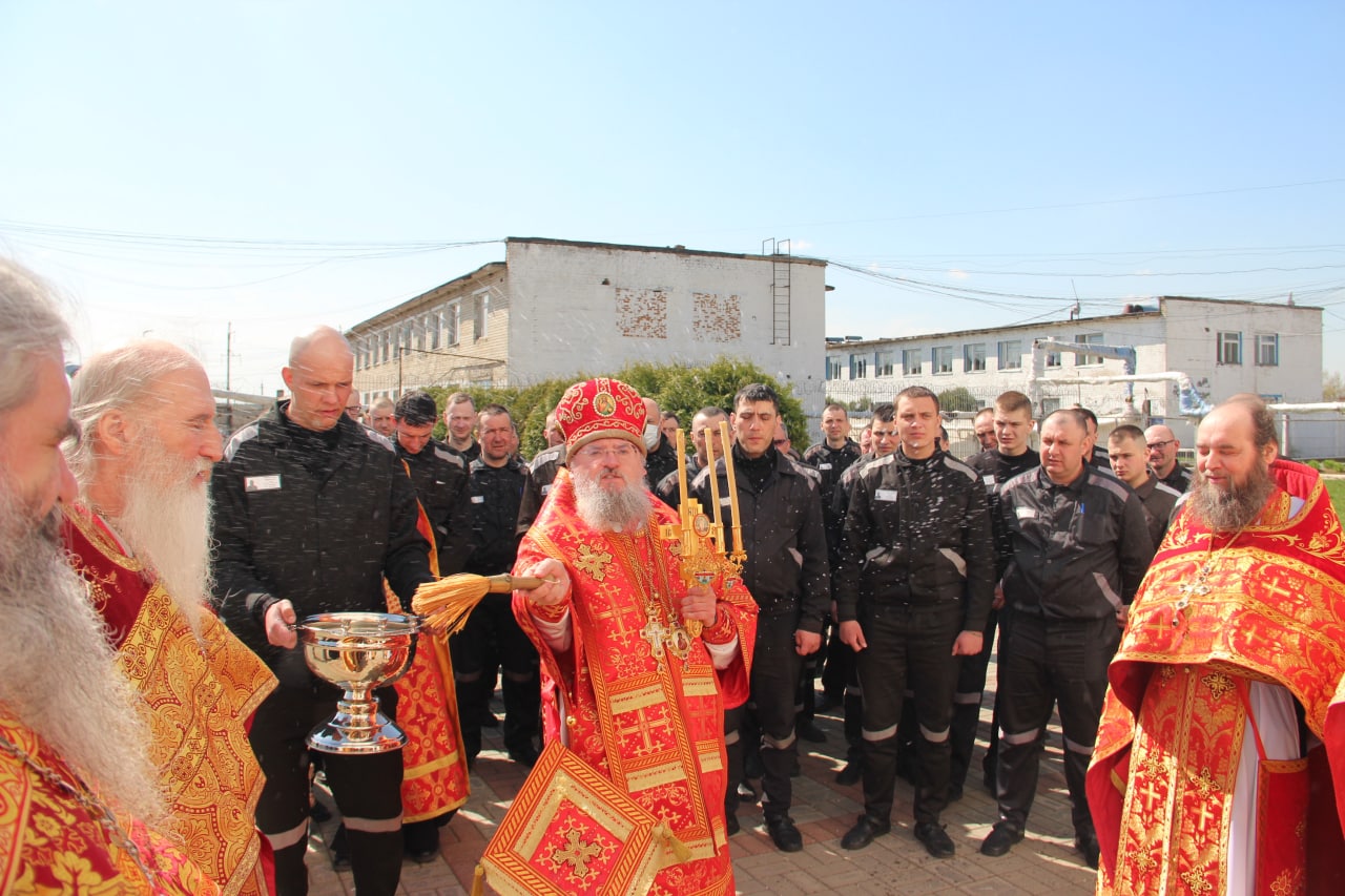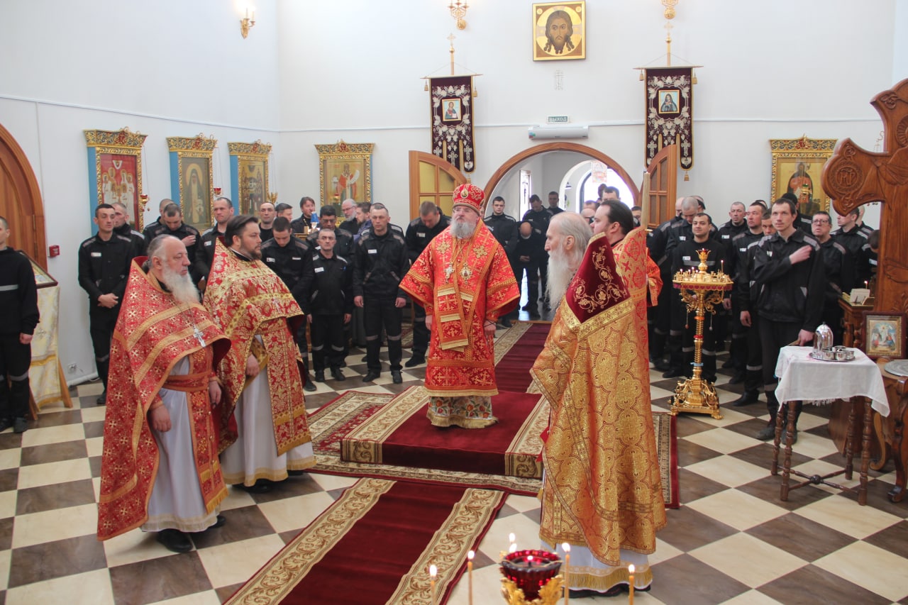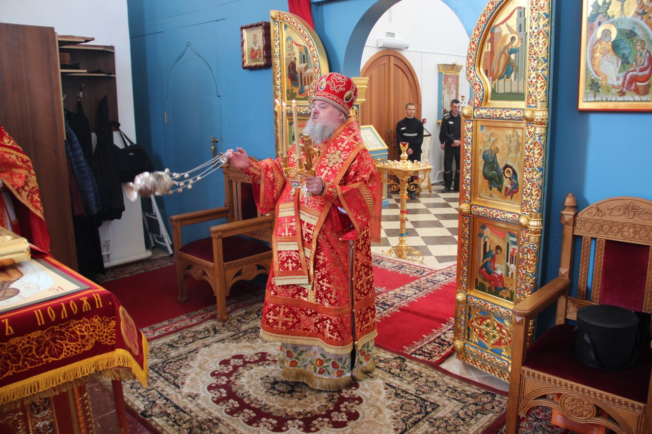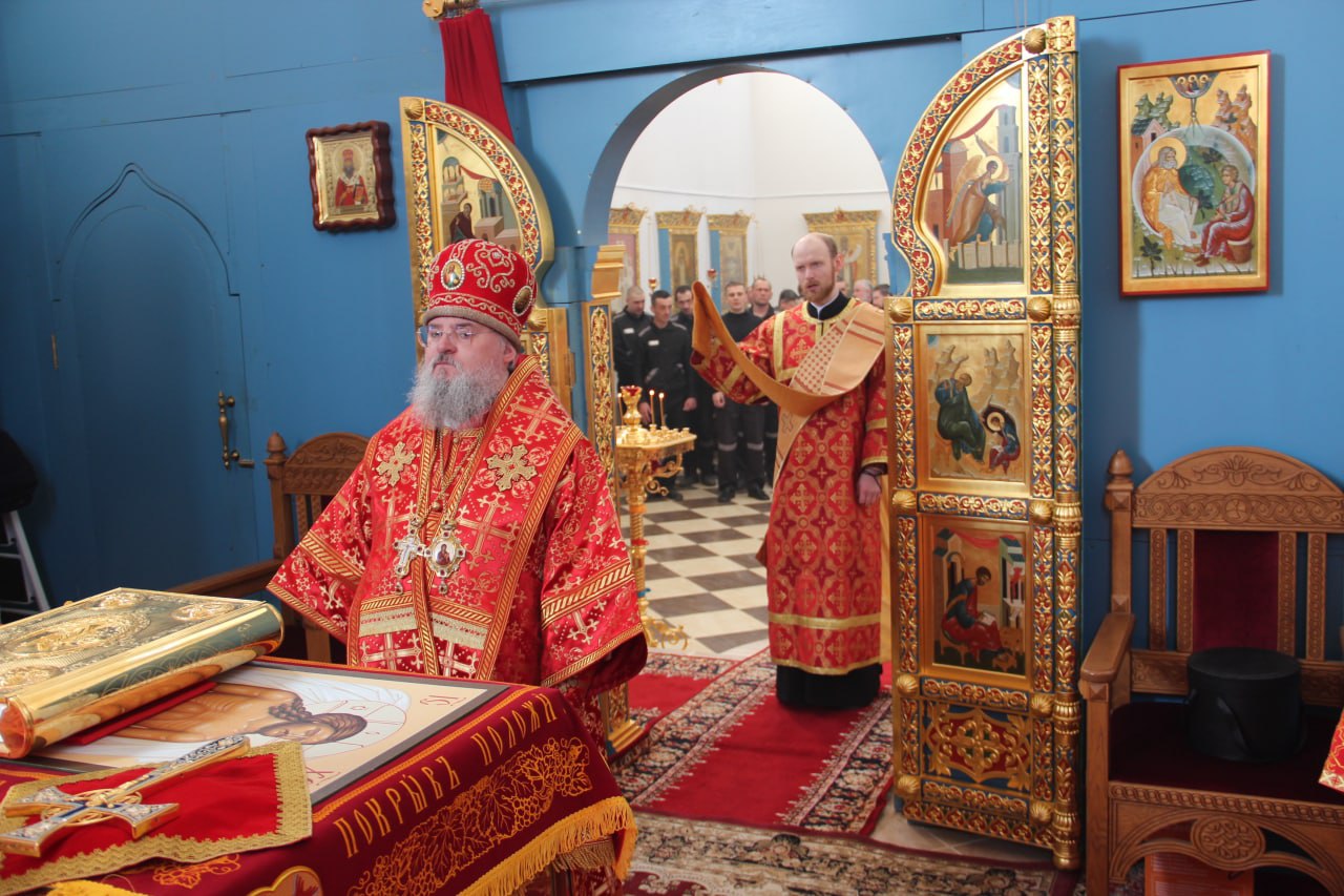 20 апреля, в четверг Светлой седмицы, епископ Козельский и Людиновский Никита, председатель Комиссии по благотворительности Калужской митрополии, совершил Божественную литургию в храме Всех святых в земле Российской просиявших исправительной колонии № 5 города Сухиничи.