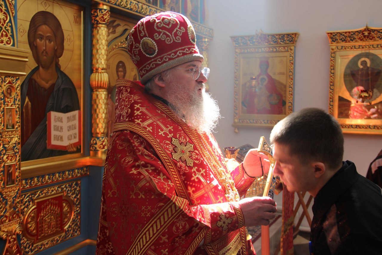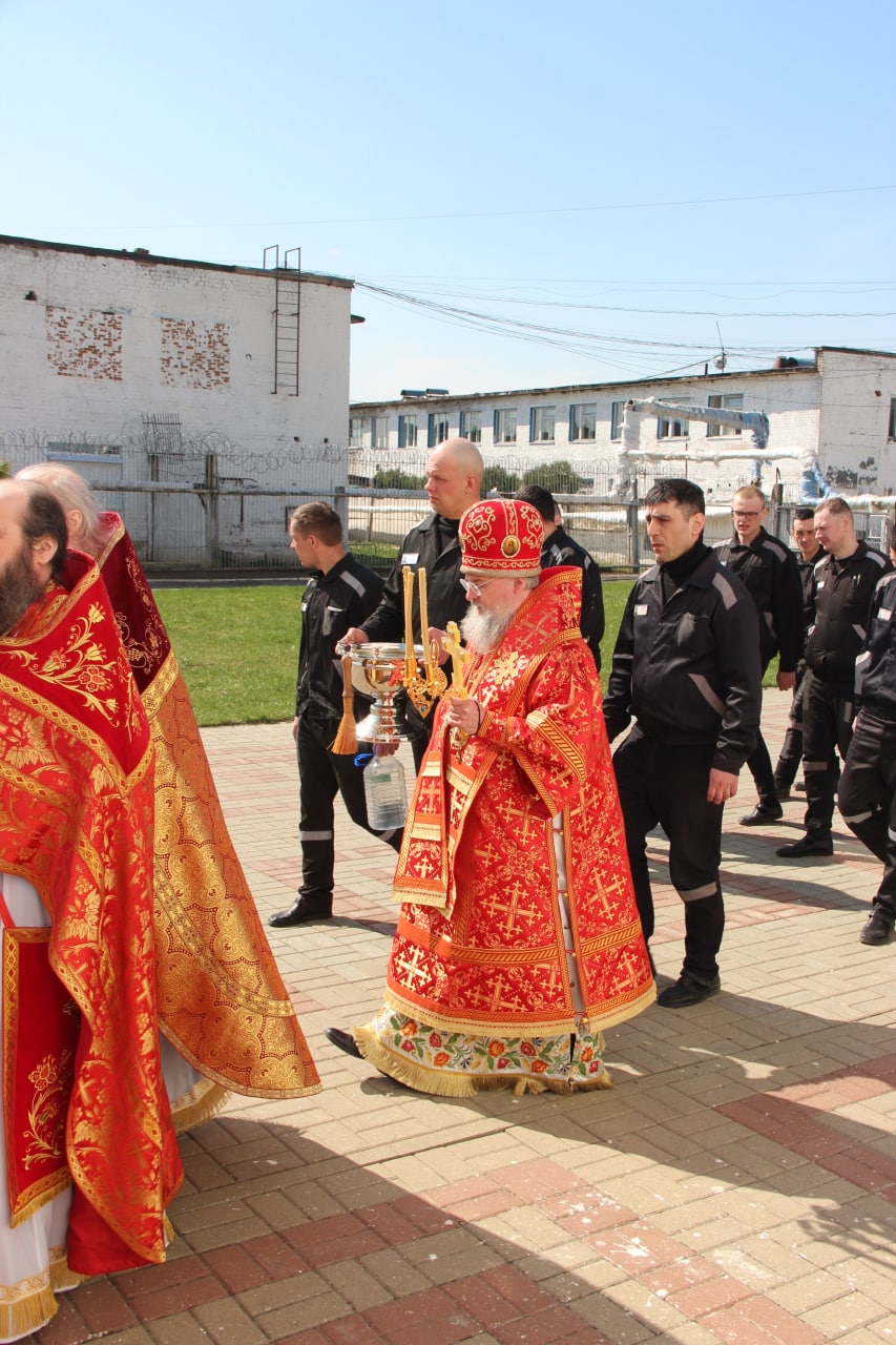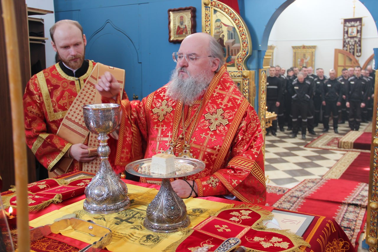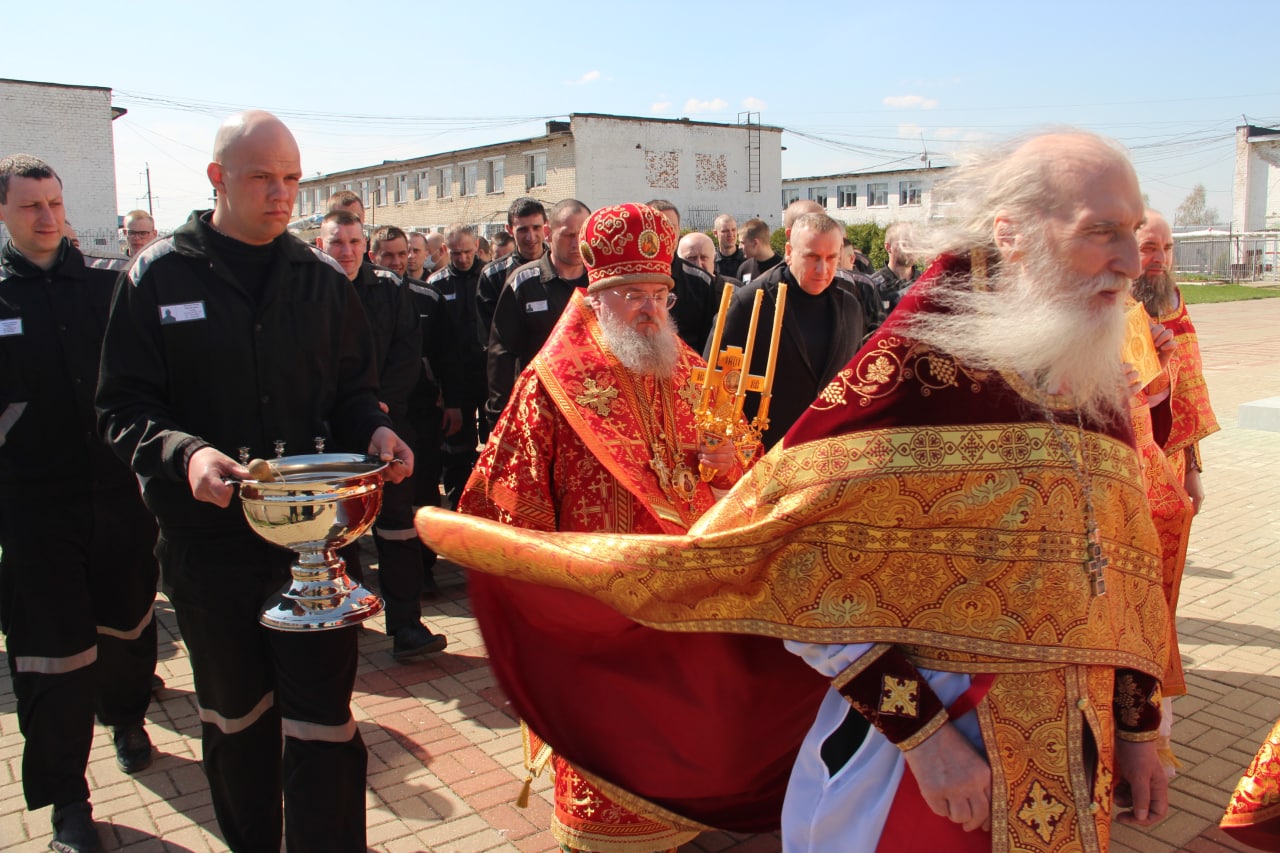 20 апреля, в четверг Светлой седмицы, епископ Козельский и Людиновский Никита, председатель Комиссии по благотворительности Калужской митрополии, совершил Божественную литургию в храме Всех святых в земле Российской просиявших исправительной колонии № 5 города Сухиничи.
