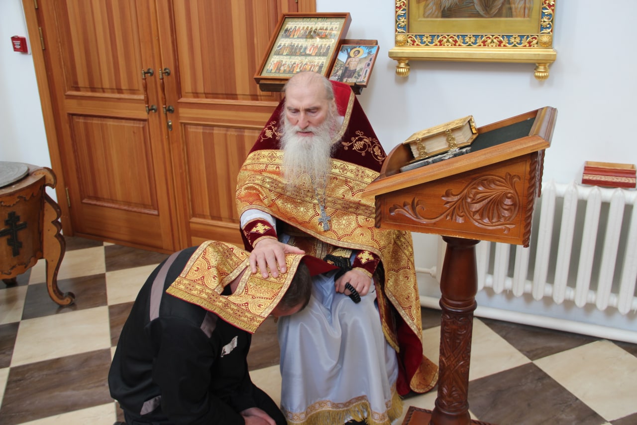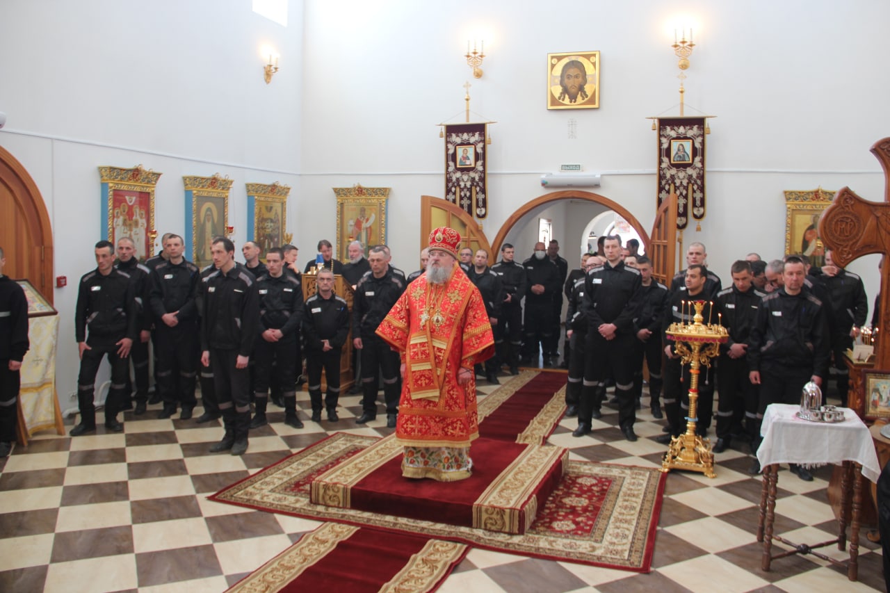 За богослужением молился начальник колонии Алексей Николаевич Зорин.