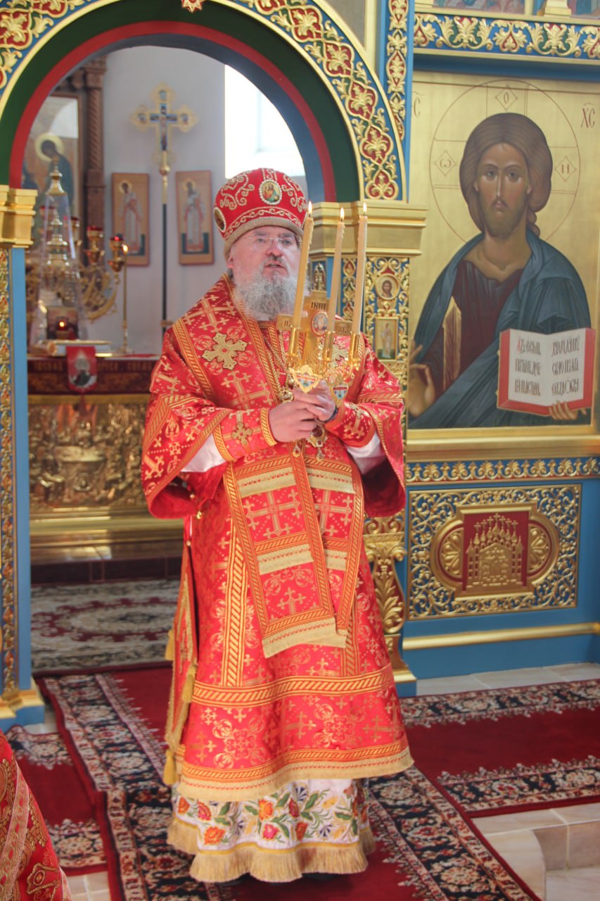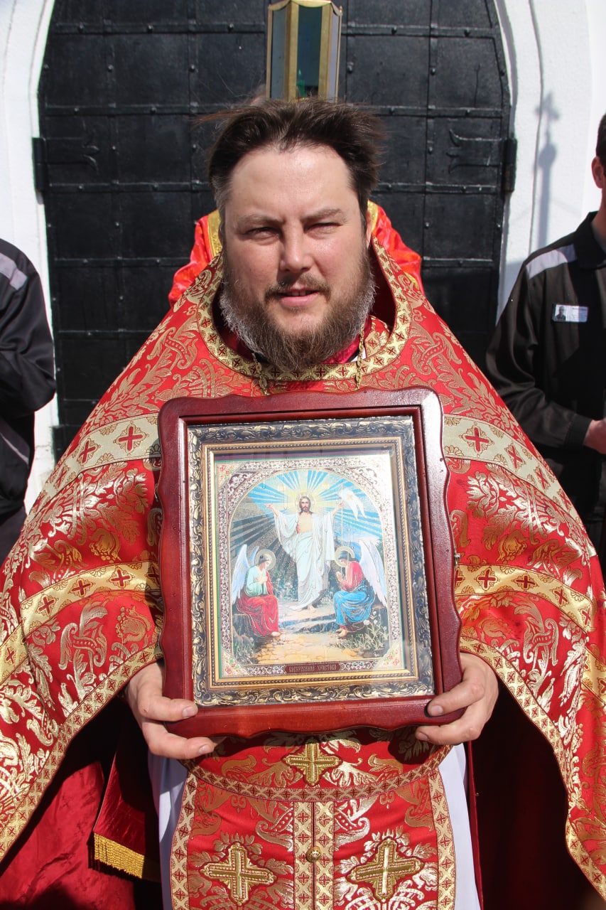 В завершении литургии состоялся пасхальный крестный ход, после которого владыка поздравил прихожан храма с праздником Светлого Христова Воскресения и раздал им пасхальные подарки.