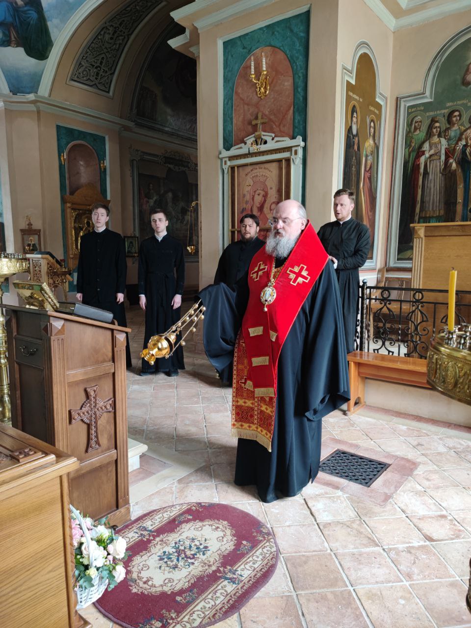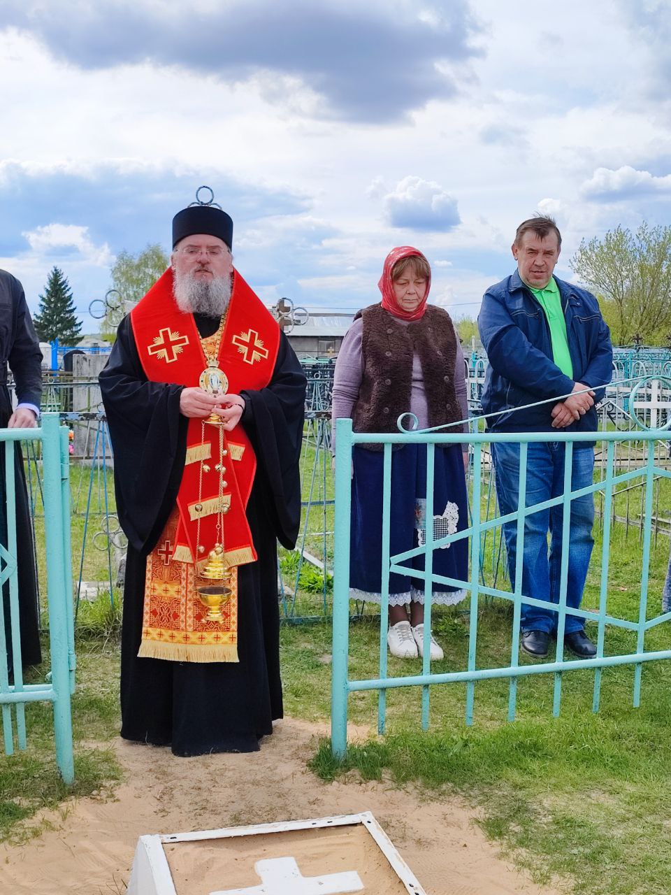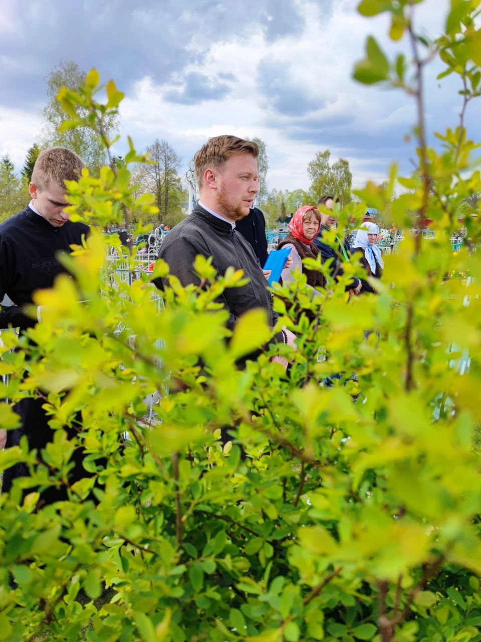 25 апреля. Радоница. Поминовение усопших. Епископ Козельский и Людиновский Никита совершил заупокойные литии в храме Преображения Господня села Нижние Прыски, где рядом с центральным алтарем погребен бывший многолетний настоятель протоиерей Леонтий Никифоров, а также на сельском кладбище на месте захоронения схиархимандрита Макария (Болотова).