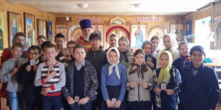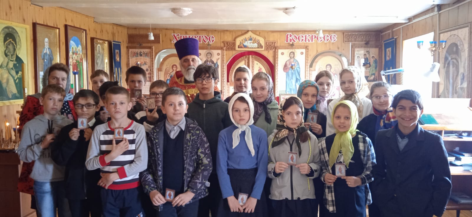26 апреля в рамках школьной программы ОПК в храме Казанской Божией Матери в селе Дудоровский Ульяновского района состоялась встреча настоятеля иерея Алексия Сорокина с учениками 5-6 классов. Ребята познакомились с устройством храма, с основными богослужениями Православной Церкви. Отец Алексий общаясь со школьниками ответил на многочисленные вопросы детей.
