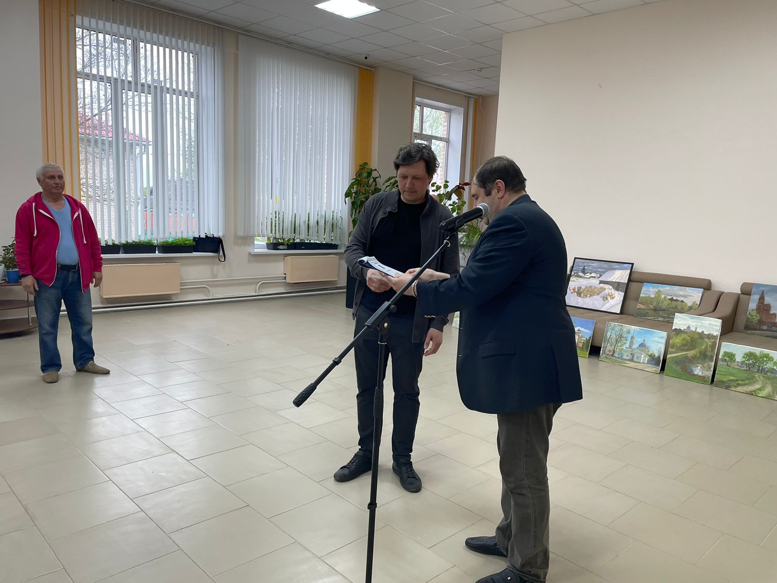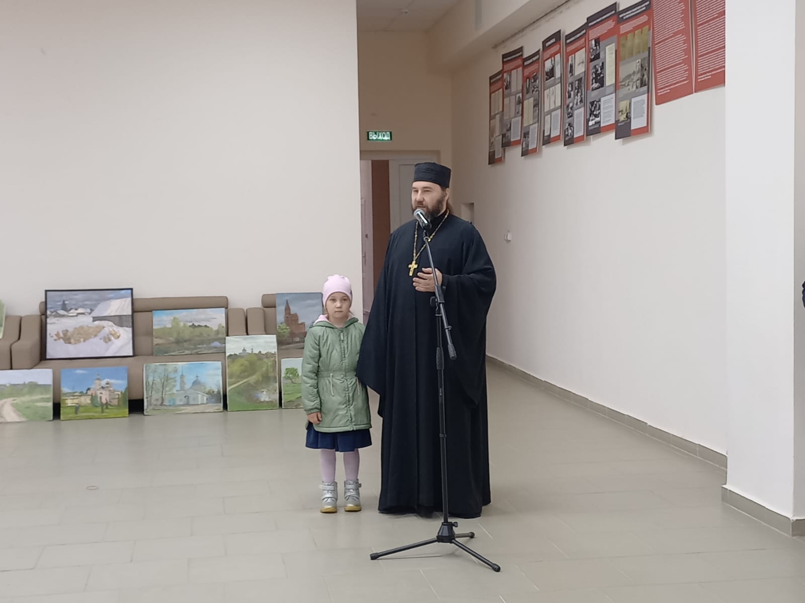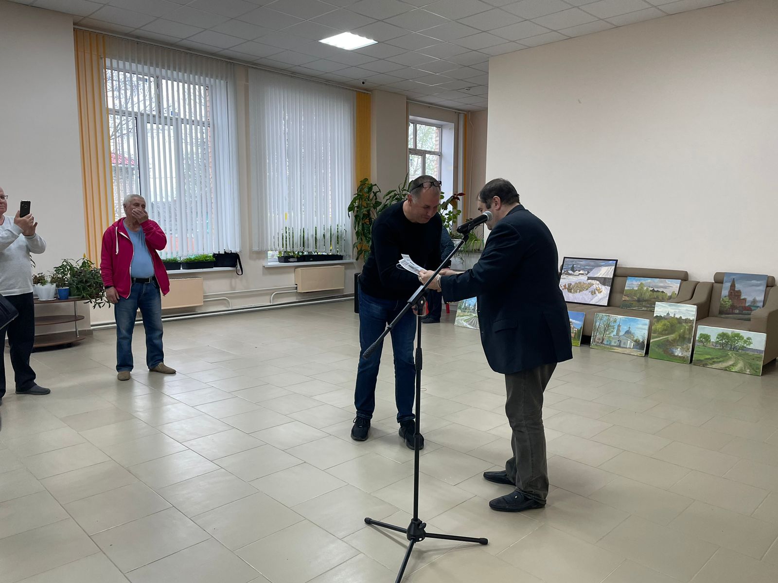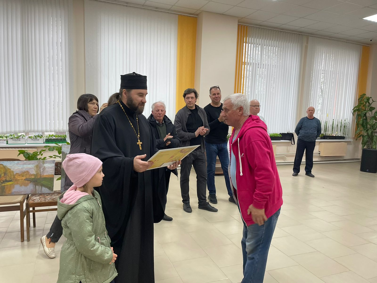 Благодарность и картину Виктор Кузин вручил отцу Максиму Садовникову.