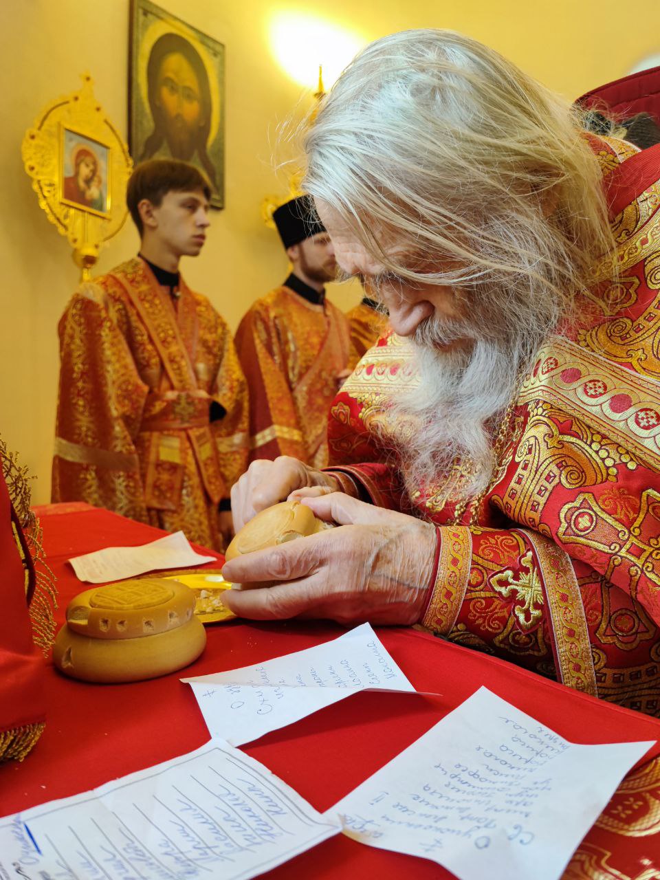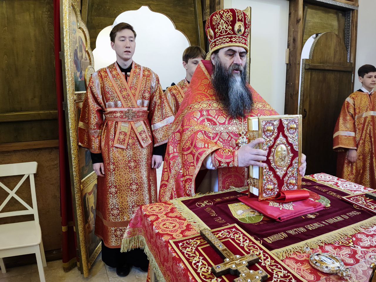 30 апреля. Неделя 3-я по Пасхе. Святых Жен Мироносиц. Епископ Козельский и Людиновский Никита совершил Божественную литургию в храме святых Жен Мироносиц в соименной женской монашеской общине в селе Клыково Козельского района. Архипастырю сослужили: схиархимандрит Илий (Ноздрин), архимандрит Михаил (Семенов) – наместник монастыря Спаса Нерукотворного пустынь, протоиерей Антоний Хатунцев, иеромонах Ефрем (Ястребов), диакон Евгений Ковригин и иеродиакон Лука (Старостин). За литургией молились: старшая сестра Мироносицкой женской монашеской общины монахиня Иоанна (Павлова), а также исполняющая обязанности игумении монастыря Успенская Феклина пустынь в селе Сенино монахиня Николая (Александрова), старшая сестра женской монашеской общины в честь мучеников Антипы и Назария в селе Антипово Козельского района монахиня Афанасия (Алексеева) с сестрами. На литургии были вознесены особые прошения и молитва о Святой Руси. По благословению Святейшего Патриарха Московского и всея Руси Кирилла эта сугубая молитва совершается во всех храмах Русской Православной Церкви за каждым богослужением. По заамвонной молитве состоялся пасхальный крестный ход. В завершении богослужения владыка поздравил всех участников богослужения с праздником святых Жен Мироносиц, а старшую сестру обители монахиню Иоанну (Павлову) с днем тезоименитства и вручил ей святую просфору и памятные подарки.